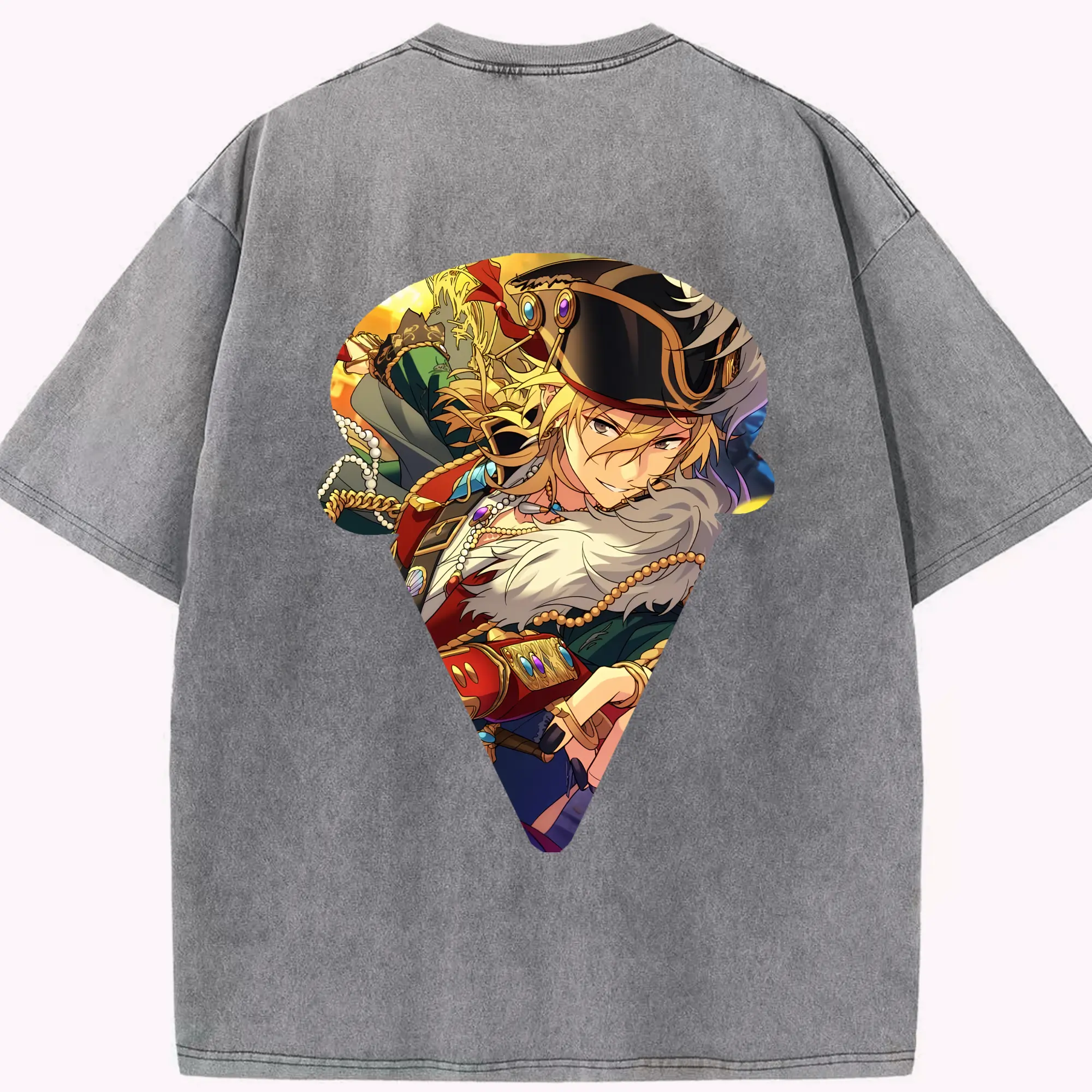 あんさん ぶる グッズ UNDEAD 羽風薫 - 綿100% ヴィンテージ風 半袖Tシャツ ・ フロントプリント ・ 柔らか肌触り ・ 通気性 快適 ・ スポーツ カジュアル 外出用