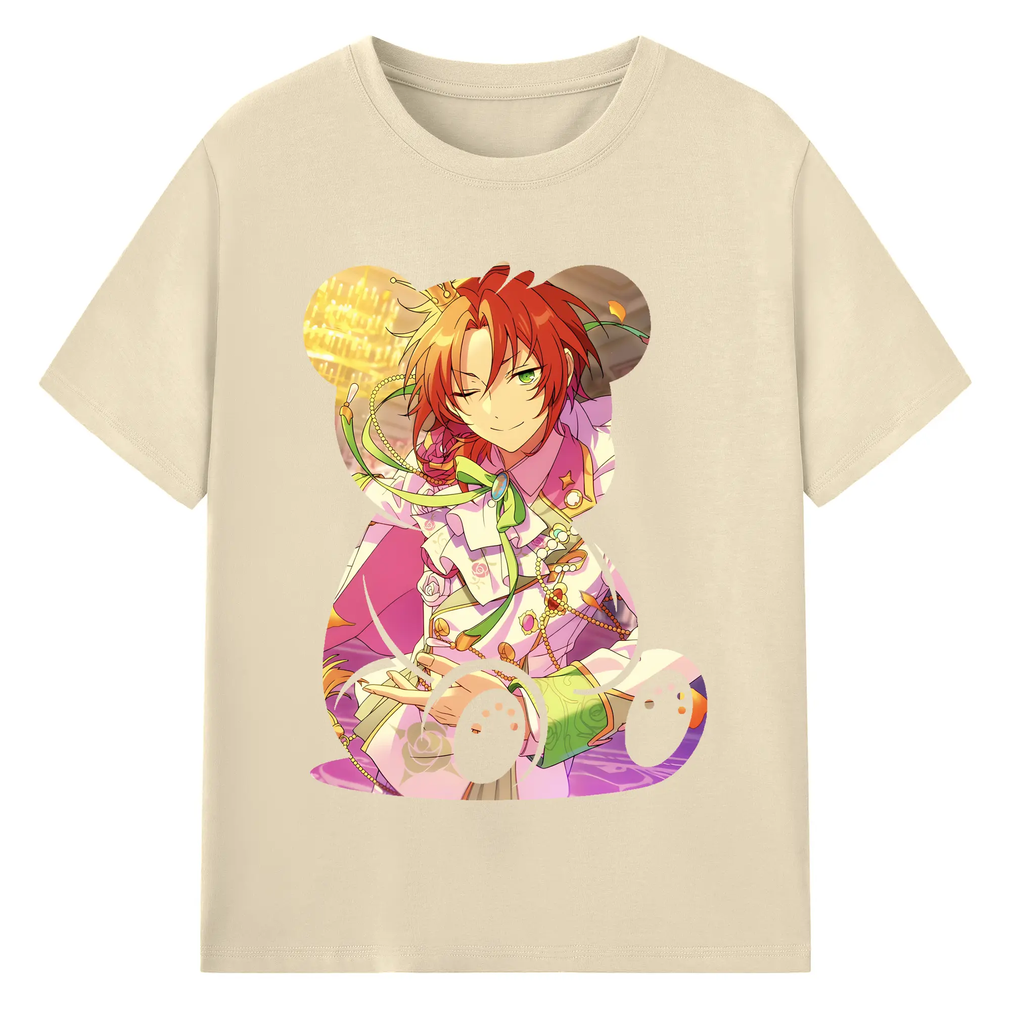 あんさん ぶる グッズ Knights 月永レオ - 綿100% ヴィンテージ風 半袖Tシャツ ・ フロントプリント ・ 柔らか肌触り ・ 通気性 快適 ・ スポーツ カジュアル 外出用
