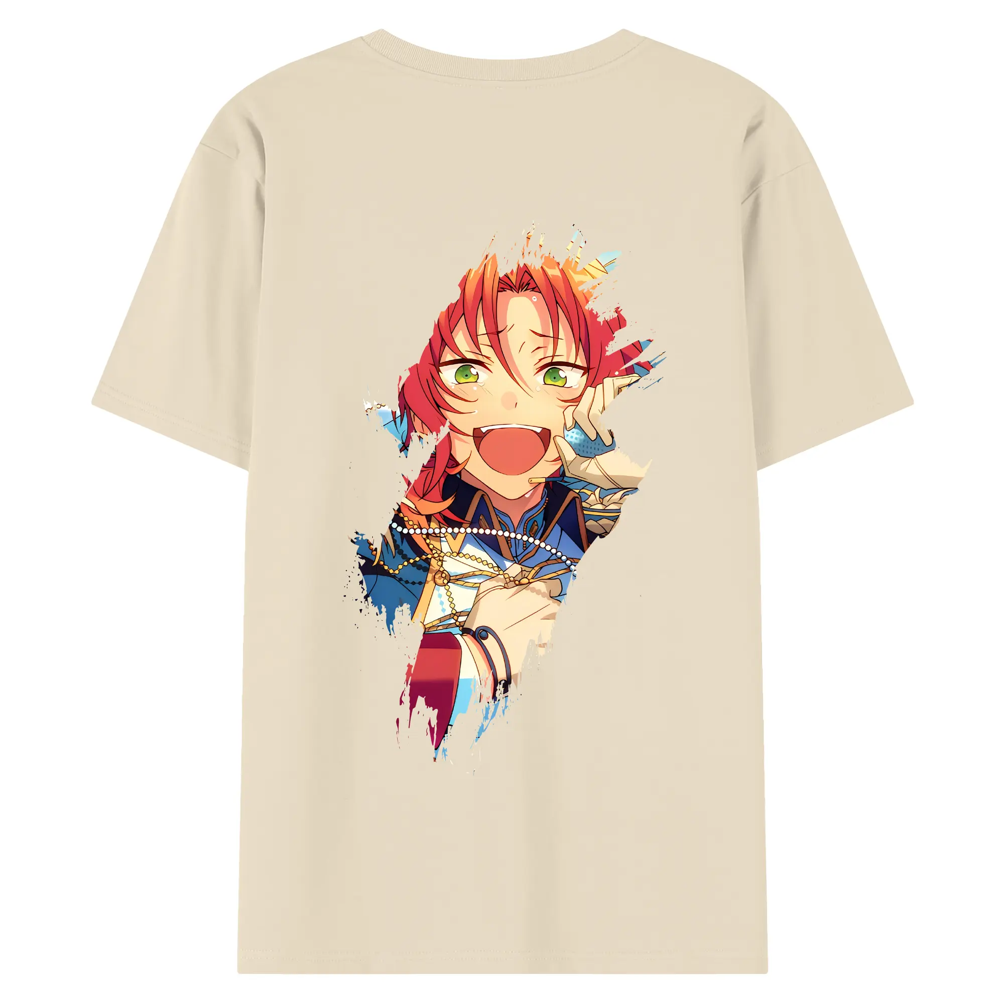 あんさん ぶる グッズ Knights 月永レオ - 綿100% ヴィンテージ風 半袖Tシャツ ・ フロントプリント ・ 柔らか肌触り ・ 通気性 快適 ・ スポーツ カジュアル 外出用
