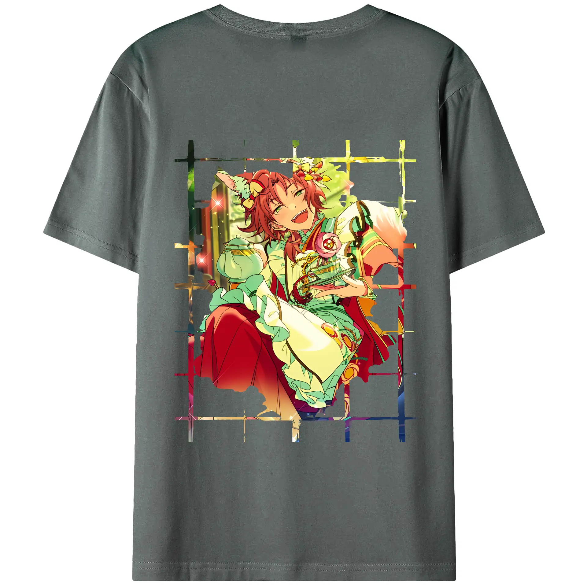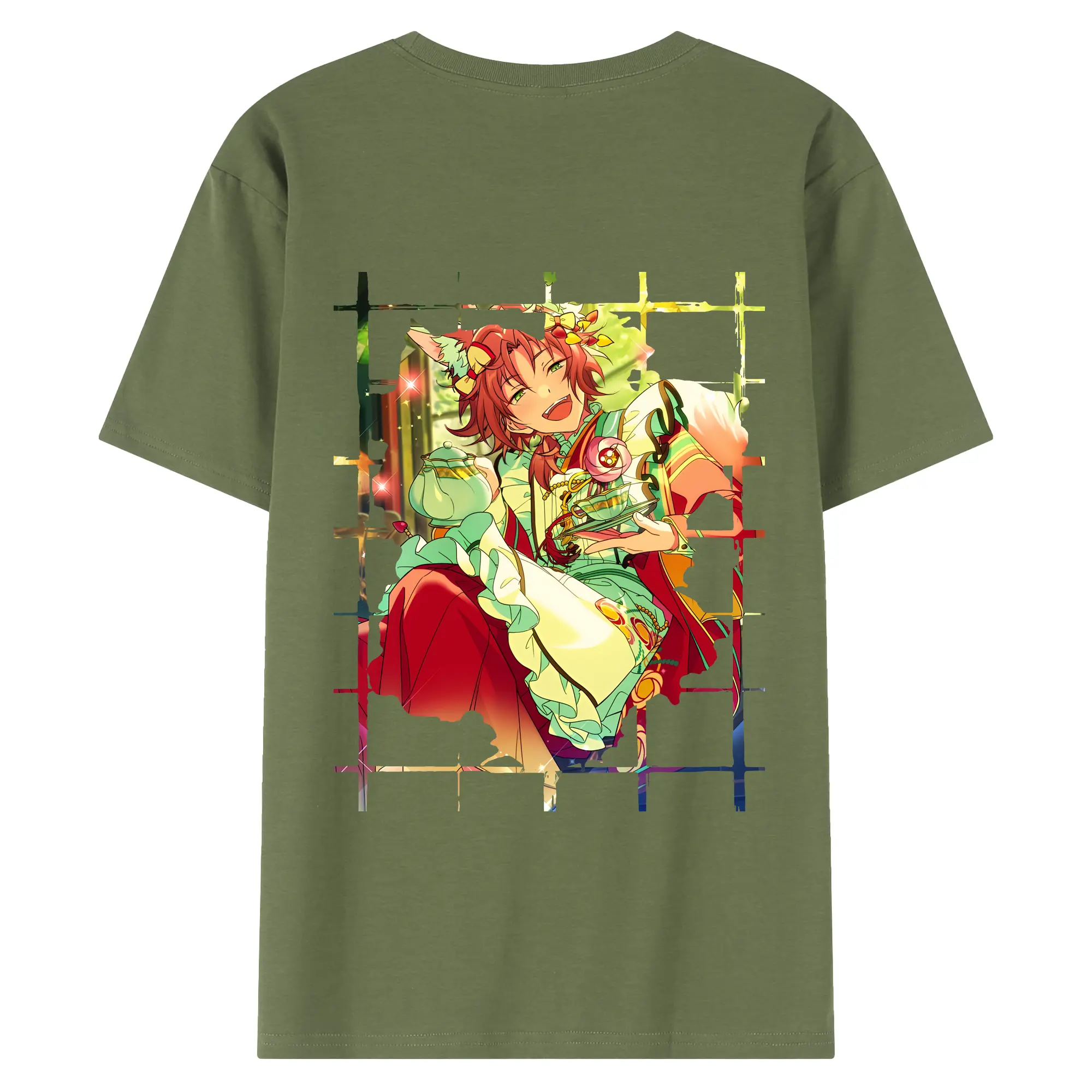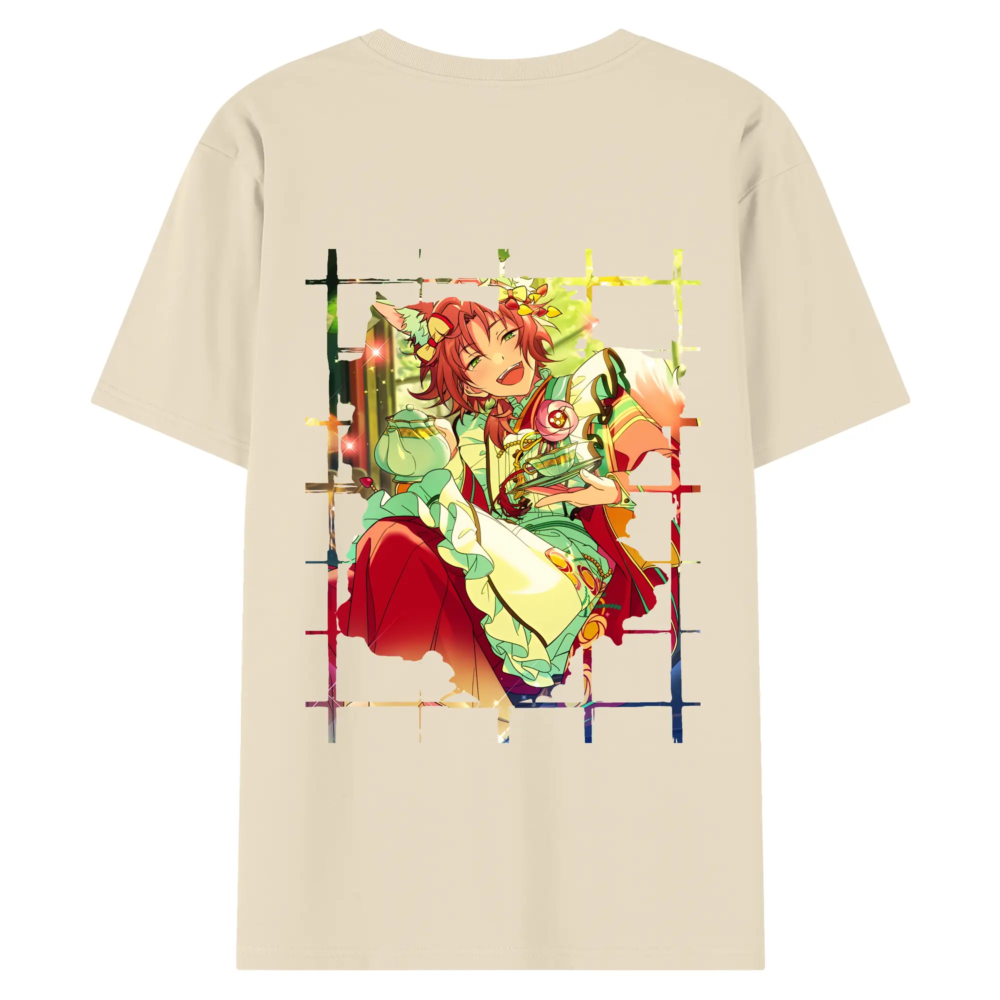 あんさん ぶる グッズ Knights 月永レオ - 綿100% ヴィンテージ風 半袖Tシャツ ・ 背面プリント ・ 柔らか肌触り ・ 通気性 快適 ・ スポーツ カジュアル 外出用