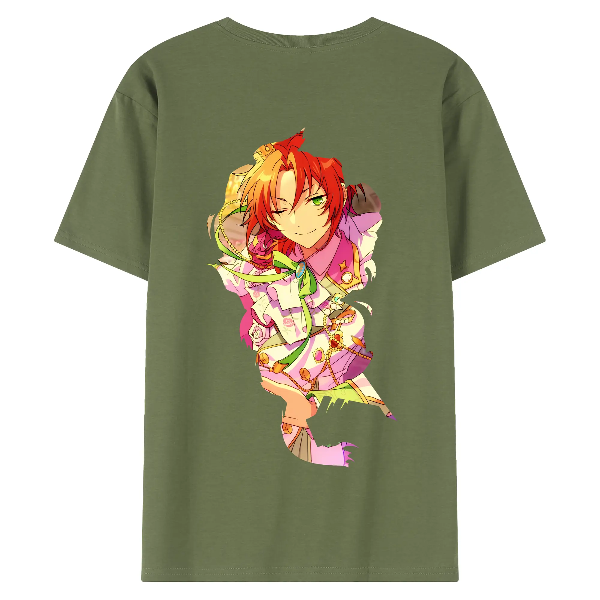 あんさん ぶる グッズ Knights 月永レオ - 綿100% ヴィンテージ風 半袖Tシャツ ・ 背面プリント ・ 柔らか肌触り ・ 通気性 快適 ・ スポーツ カジュアル 外出用