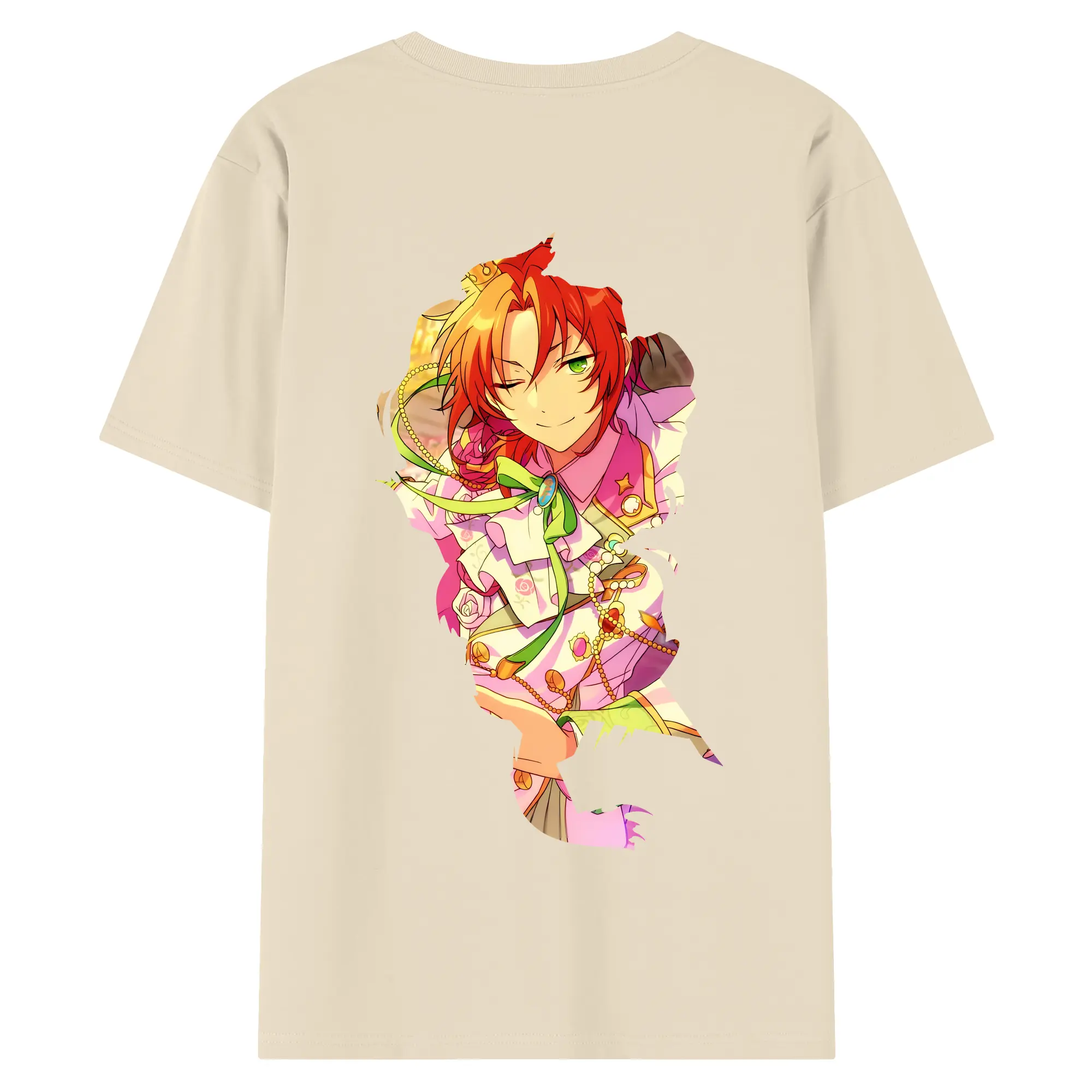 あんさん ぶる グッズ Knights 月永レオ - 綿100% ヴィンテージ風 半袖Tシャツ ・ フロントプリント ・ 柔らか肌触り ・ 通気性 快適 ・ スポーツ カジュアル 外出用