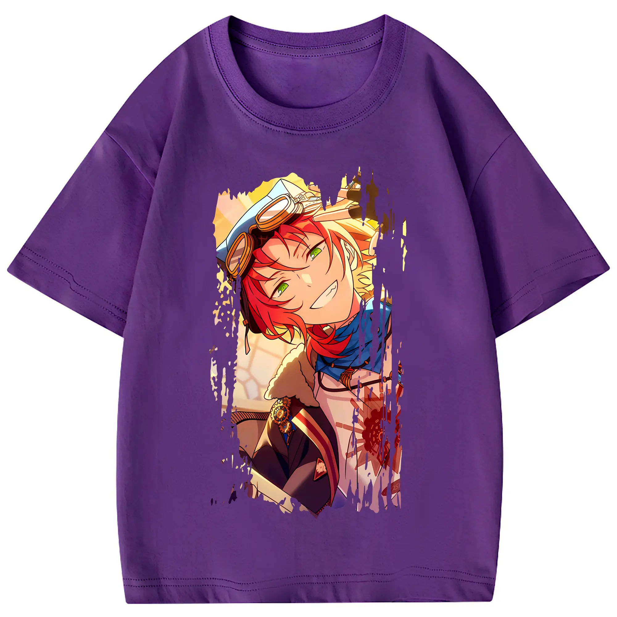 あんさん ぶる グッズ Knights 月永レオ - 綿100% ヴィンテージ風 半袖Tシャツ ・ フロントプリント ・ 柔らか肌触り ・ 通気性 快適 ・ スポーツ カジュアル 外出用