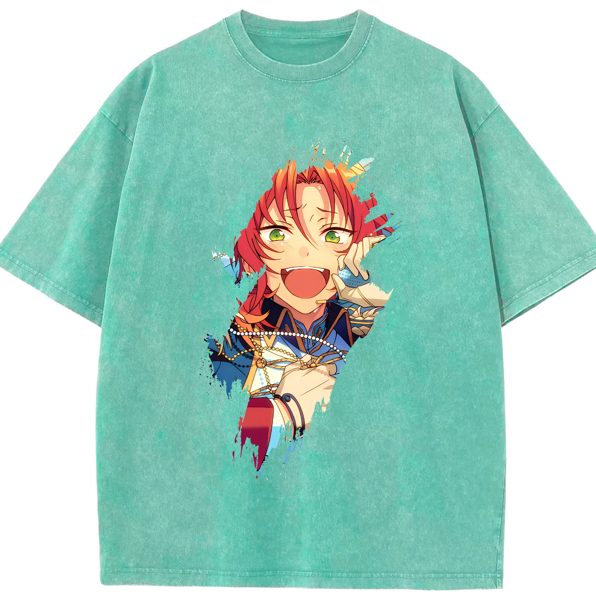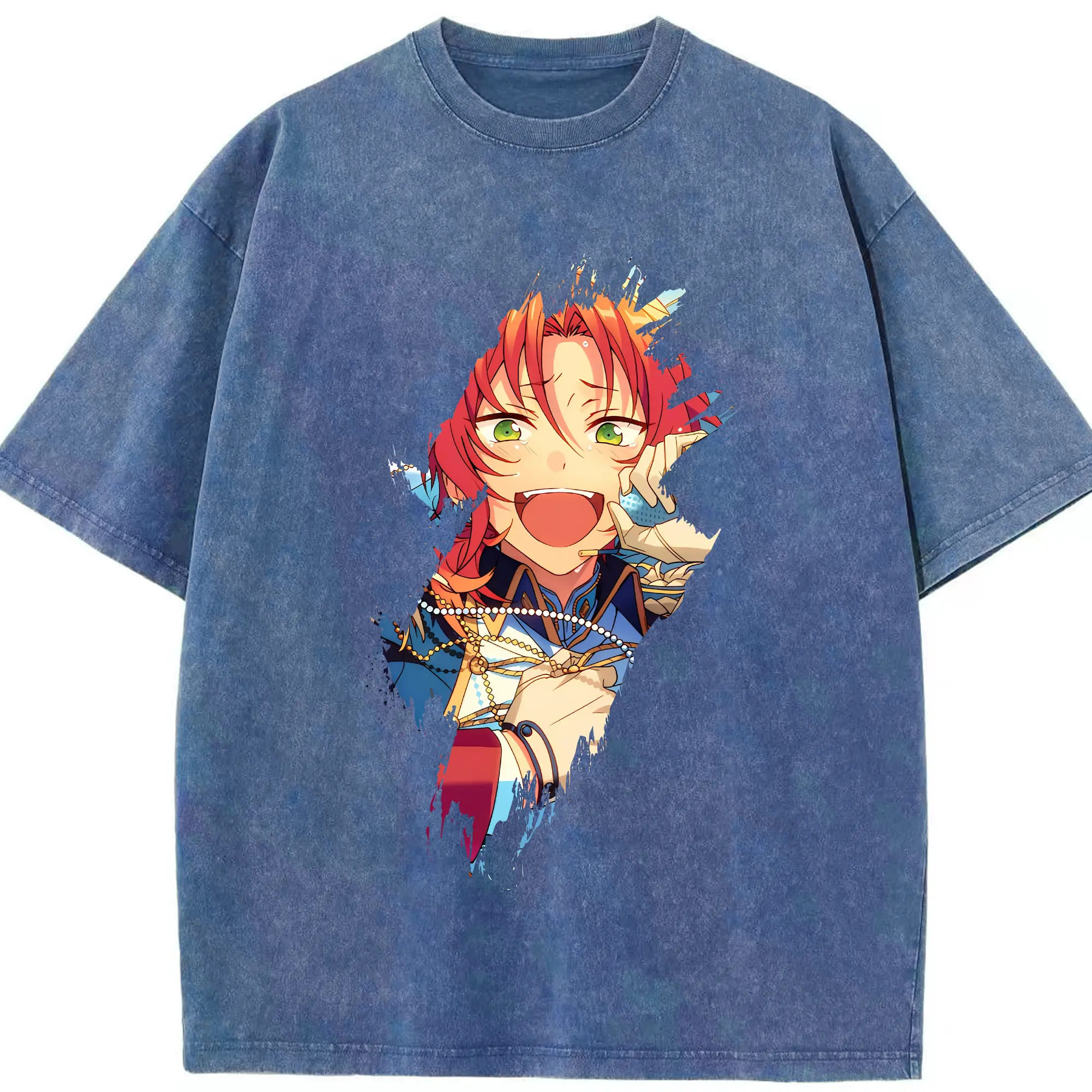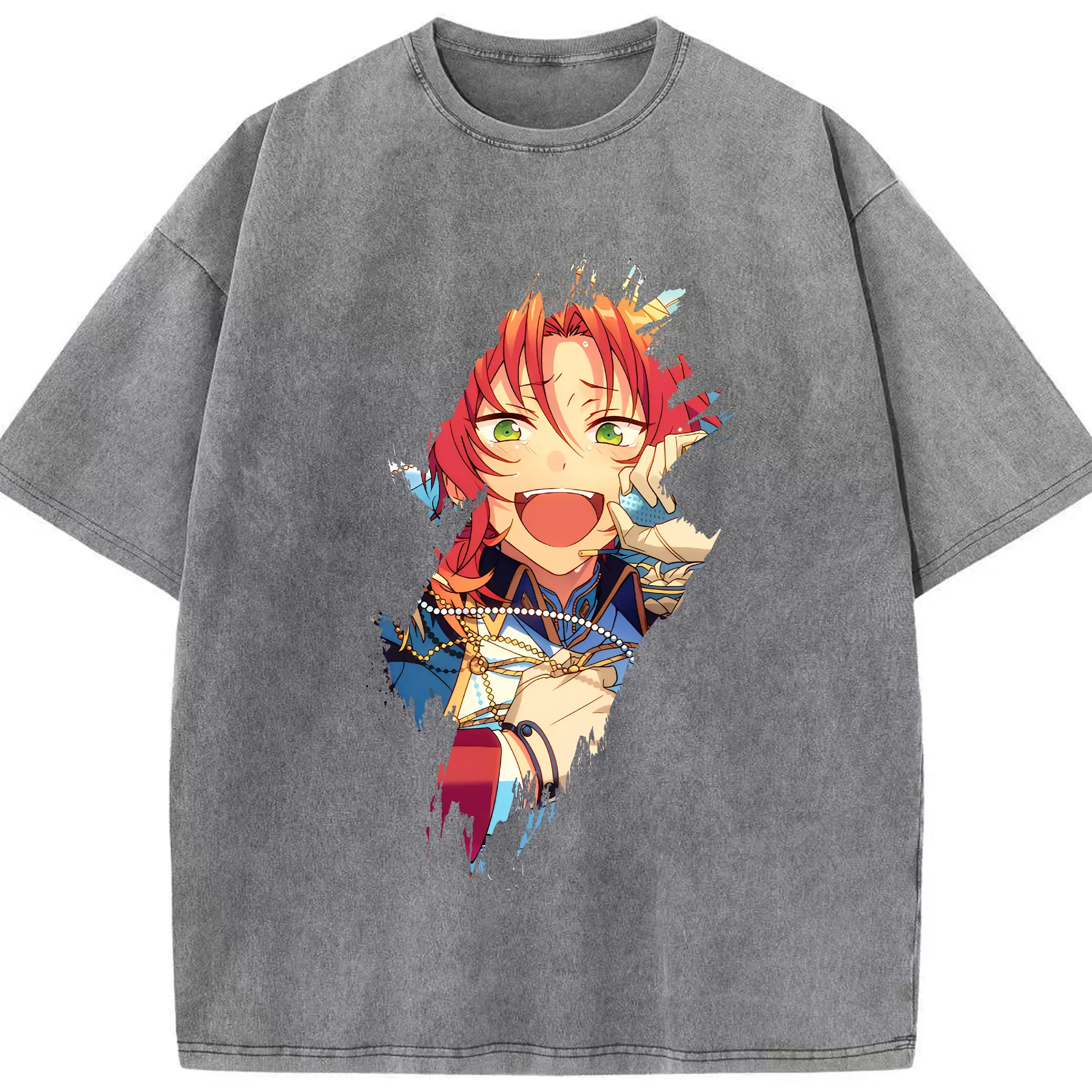 あんさん ぶる グッズ Trickstar 明星スバル - 綿100% ヴィンテージ風 半袖Tシャツ ・ フロントプリント ・ 柔らか肌触り ・ 通気性 快適 ・ スポーツ カジュアル 外出用