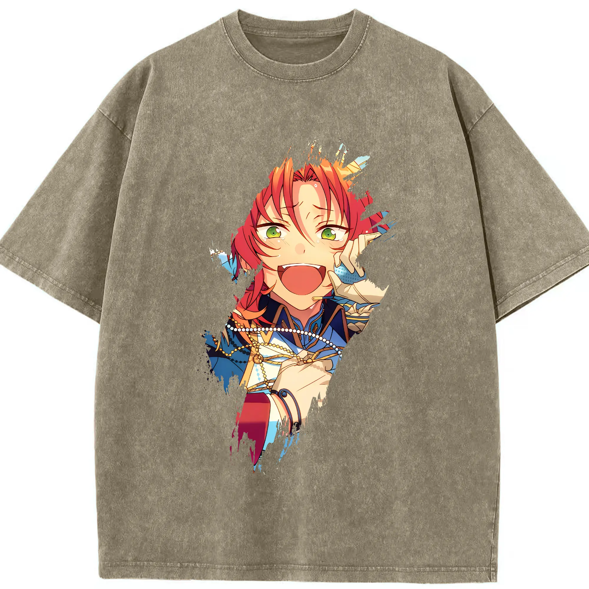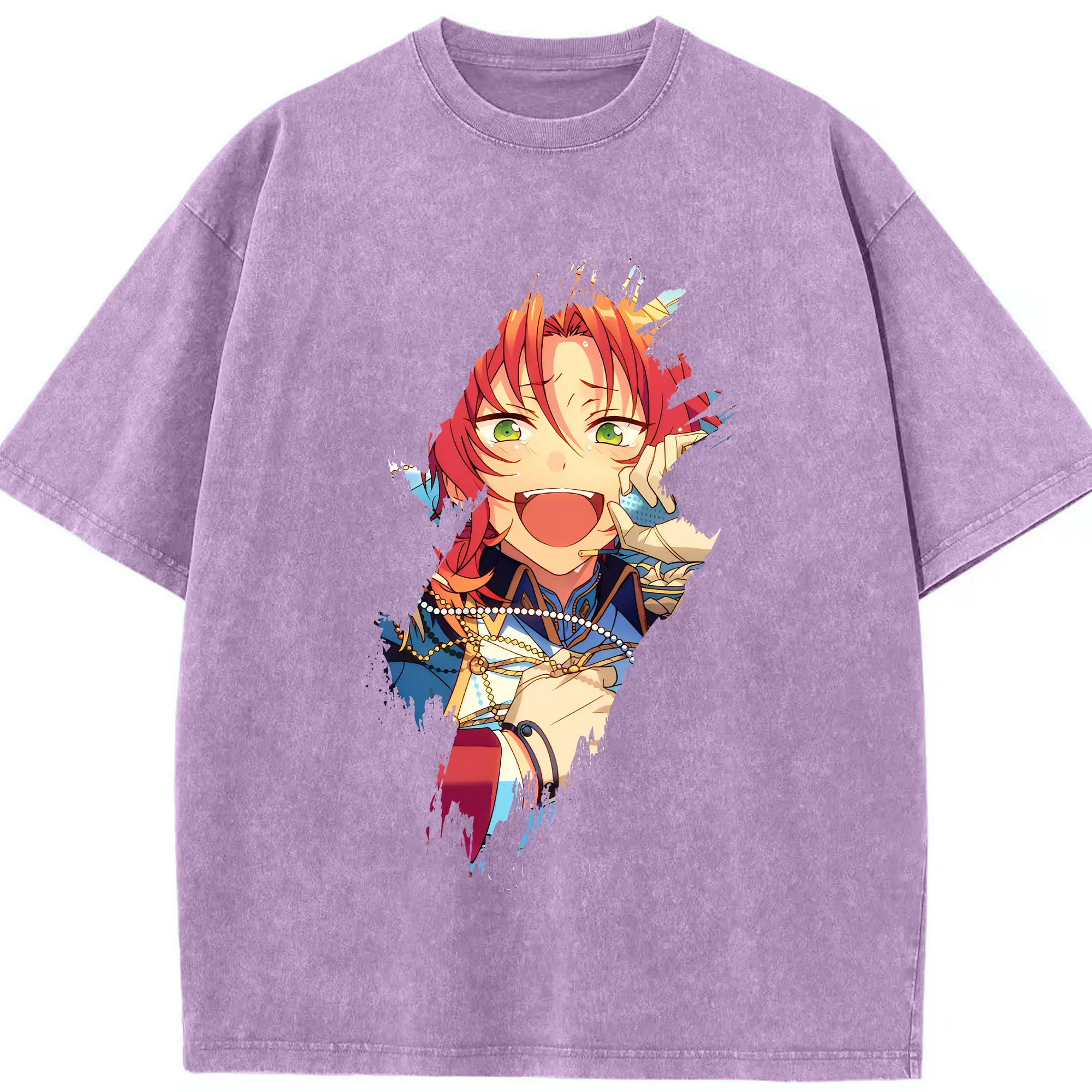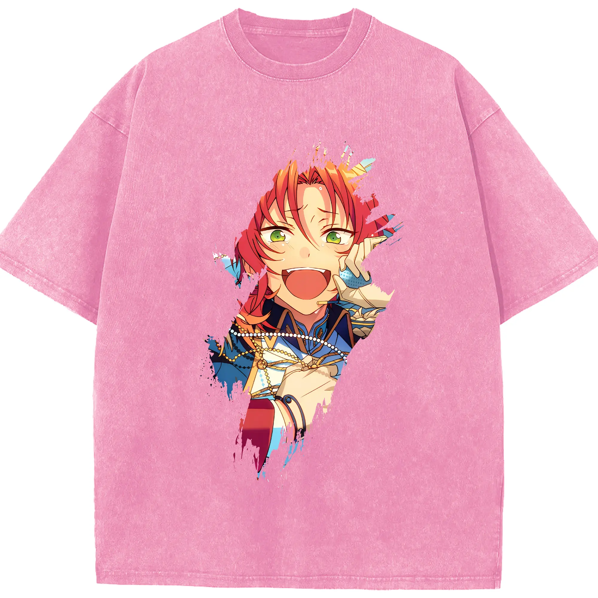 あんさん ぶる グッズ Trickstar 明星スバル - 綿100% ヴィンテージ風 半袖Tシャツ ・ フロントプリント ・ 柔らか肌触り ・ 通気性 快適 ・ スポーツ カジュアル 外出用