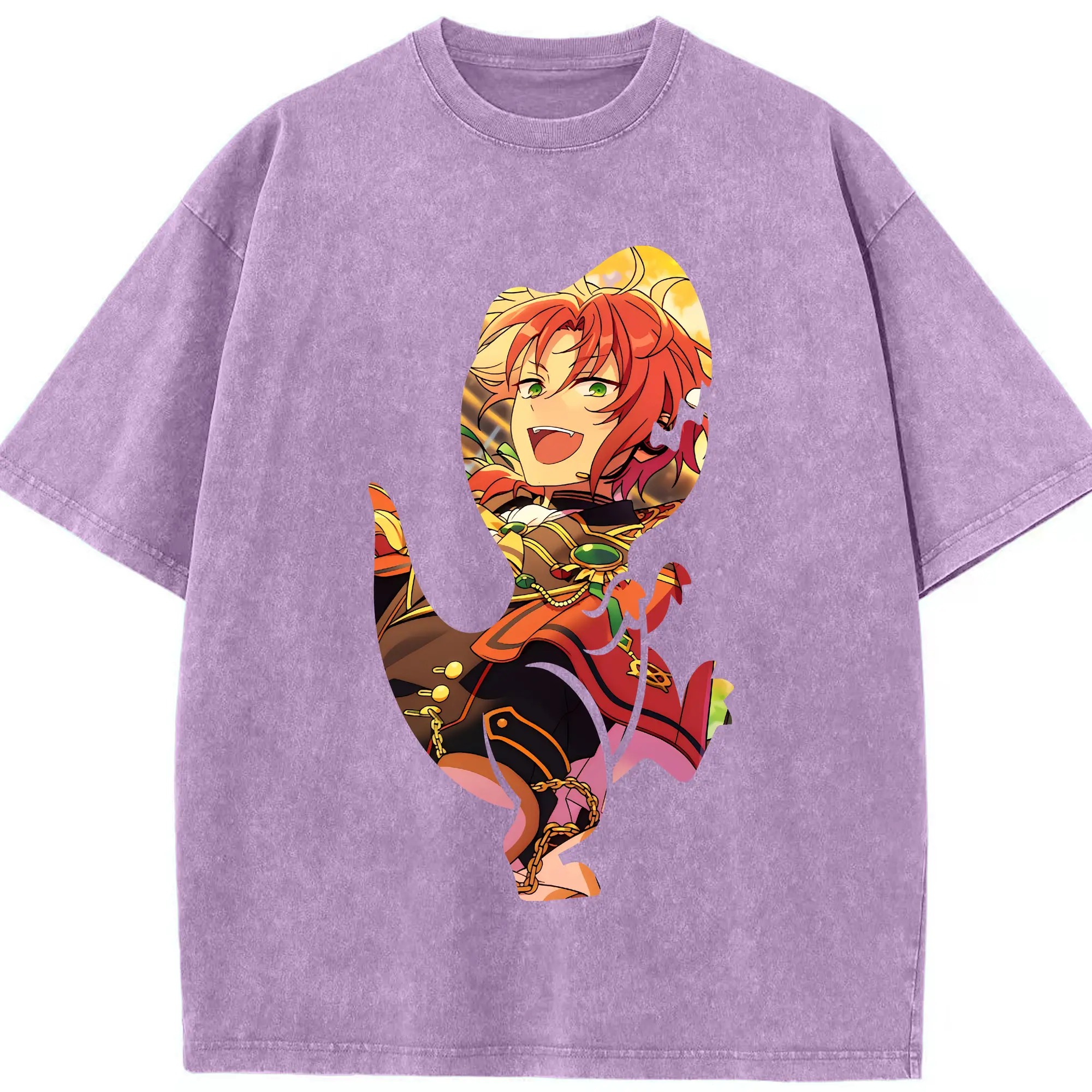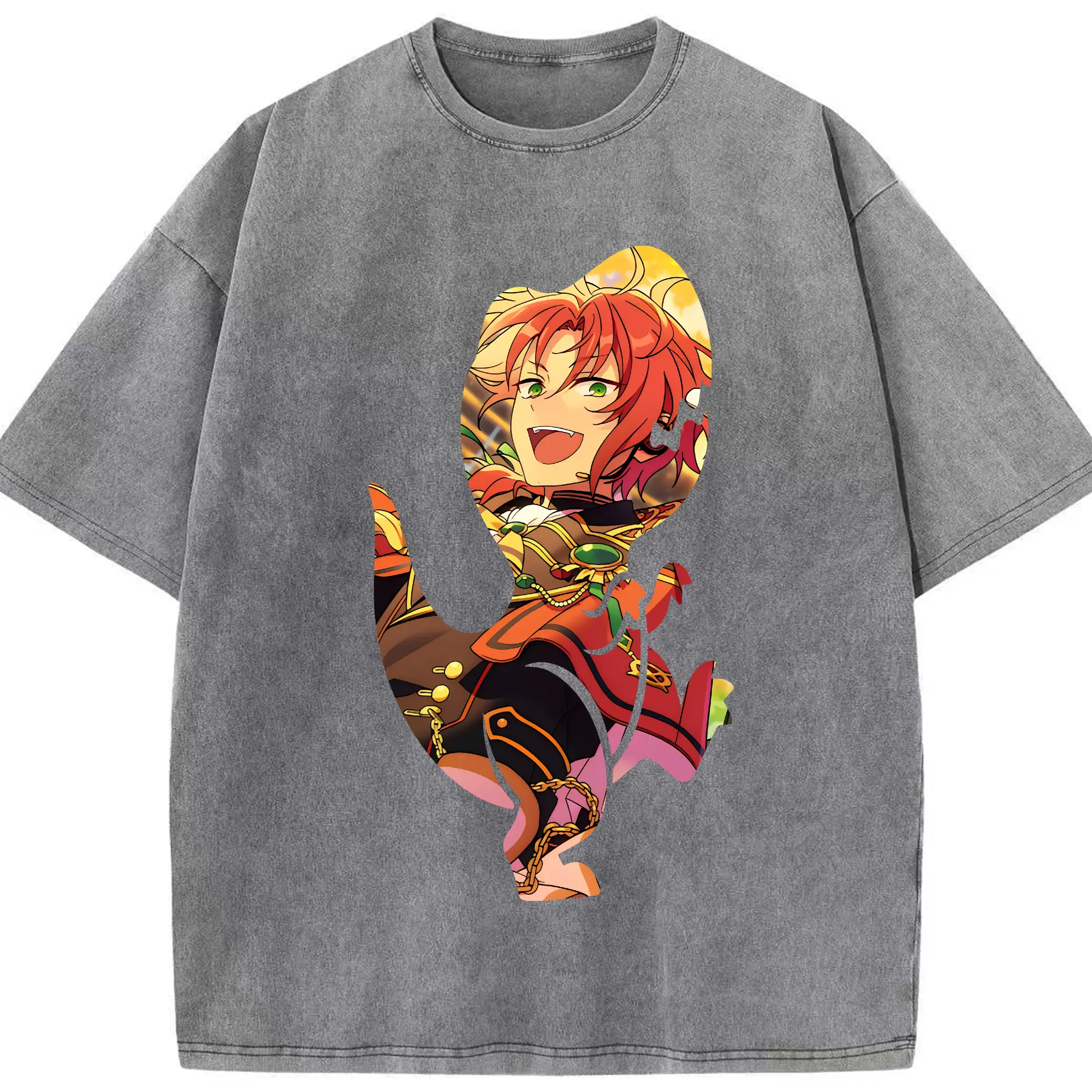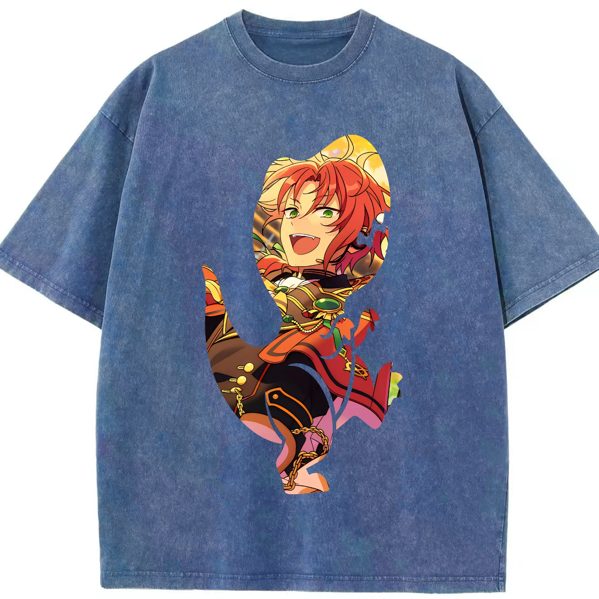 あんさん ぶる グッズ Knights 月永レオ - 綿100% ヴィンテージ風 半袖Tシャツ ・ 背面プリント ・ 柔らか肌触り ・ 通気性 快適 ・ スポーツ カジュアル 外出用