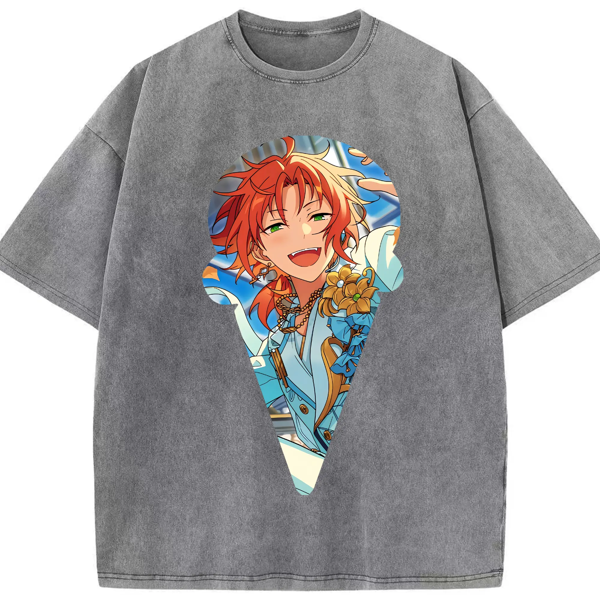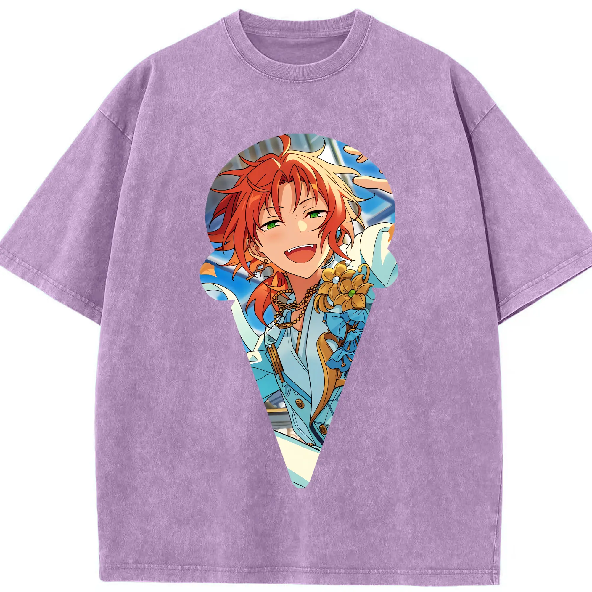 あんさん ぶる グッズ Knights 月永レオ - 綿100% ヴィンテージ風 半袖Tシャツ ・ 背面プリント ・ 柔らか肌触り ・ 通気性 快適 ・ スポーツ カジュアル 外出用
