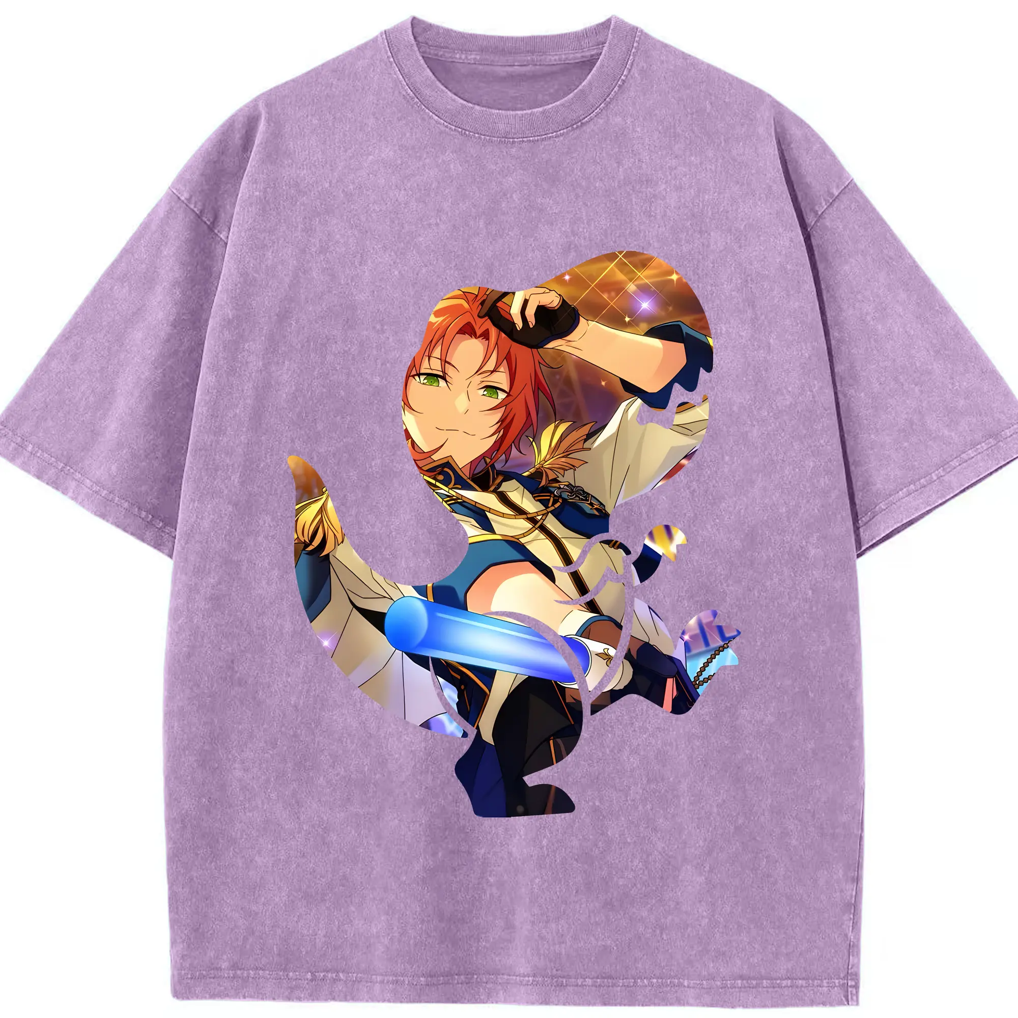 あんさん ぶる グッズ Knights 月永レオ - 綿100% ヴィンテージ風 半袖Tシャツ ・ 背面プリント ・ 柔らか肌触り ・ 通気性 快適 ・ スポーツ カジュアル 外出用