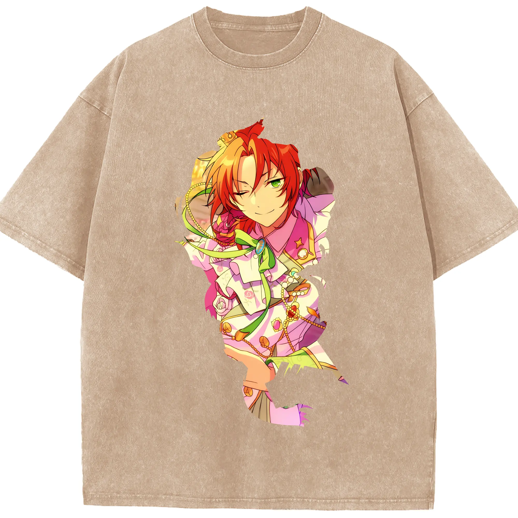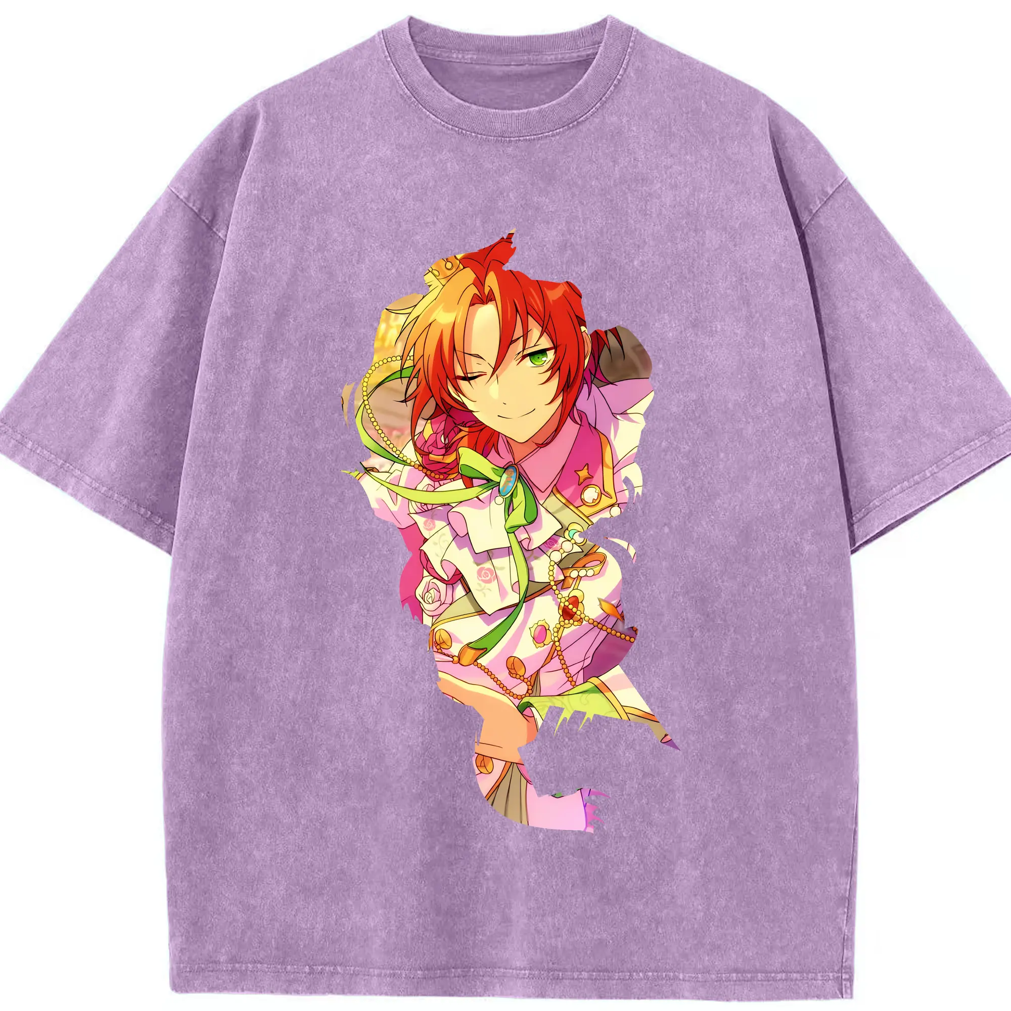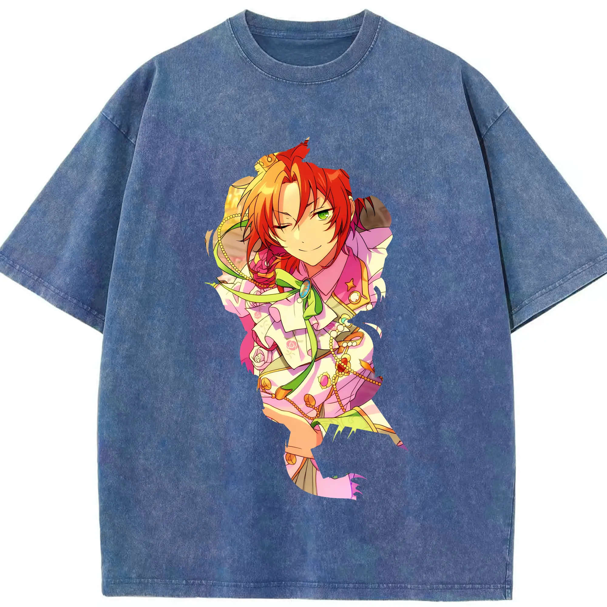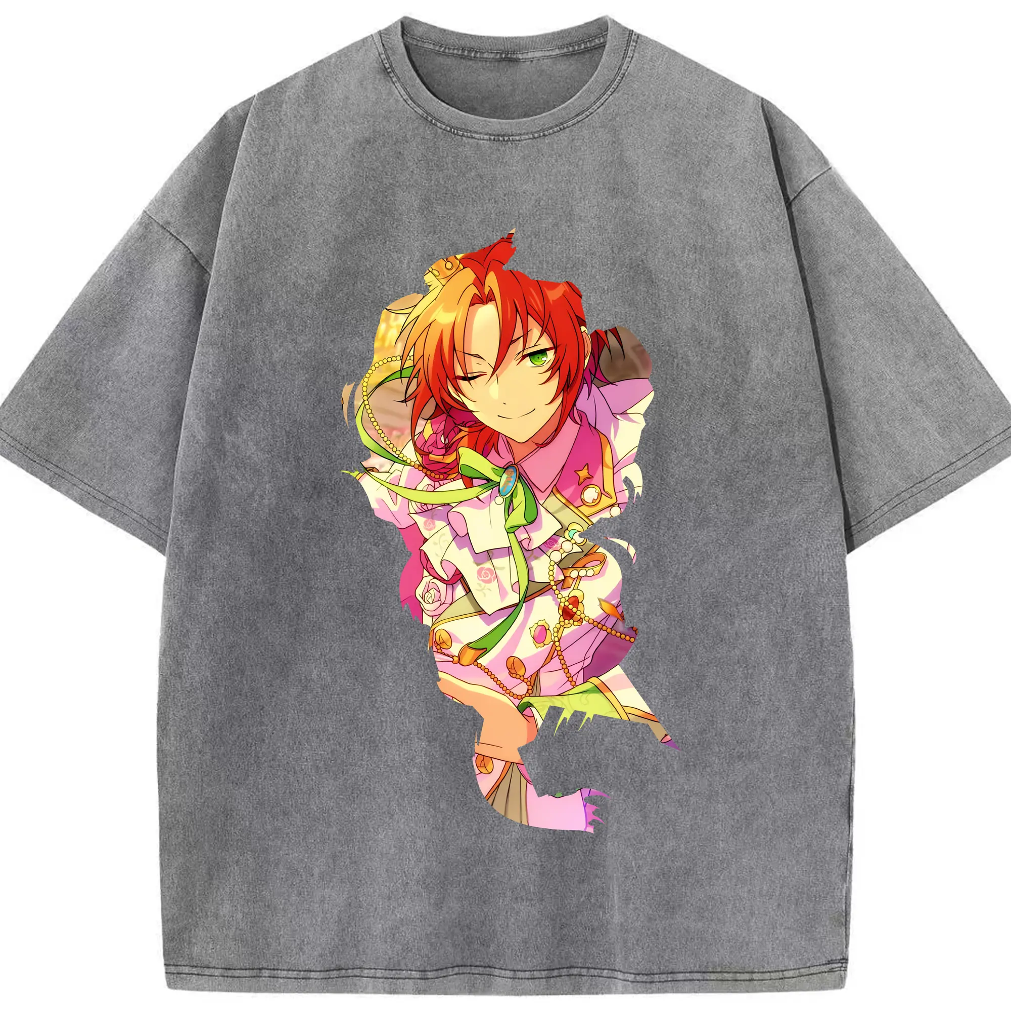 あんさん ぶる グッズ Knights 月永レオ - 綿100% ヴィンテージ風 半袖Tシャツ ・ 背面プリント ・ 柔らか肌触り ・ 通気性 快適 ・ スポーツ カジュアル 外出用