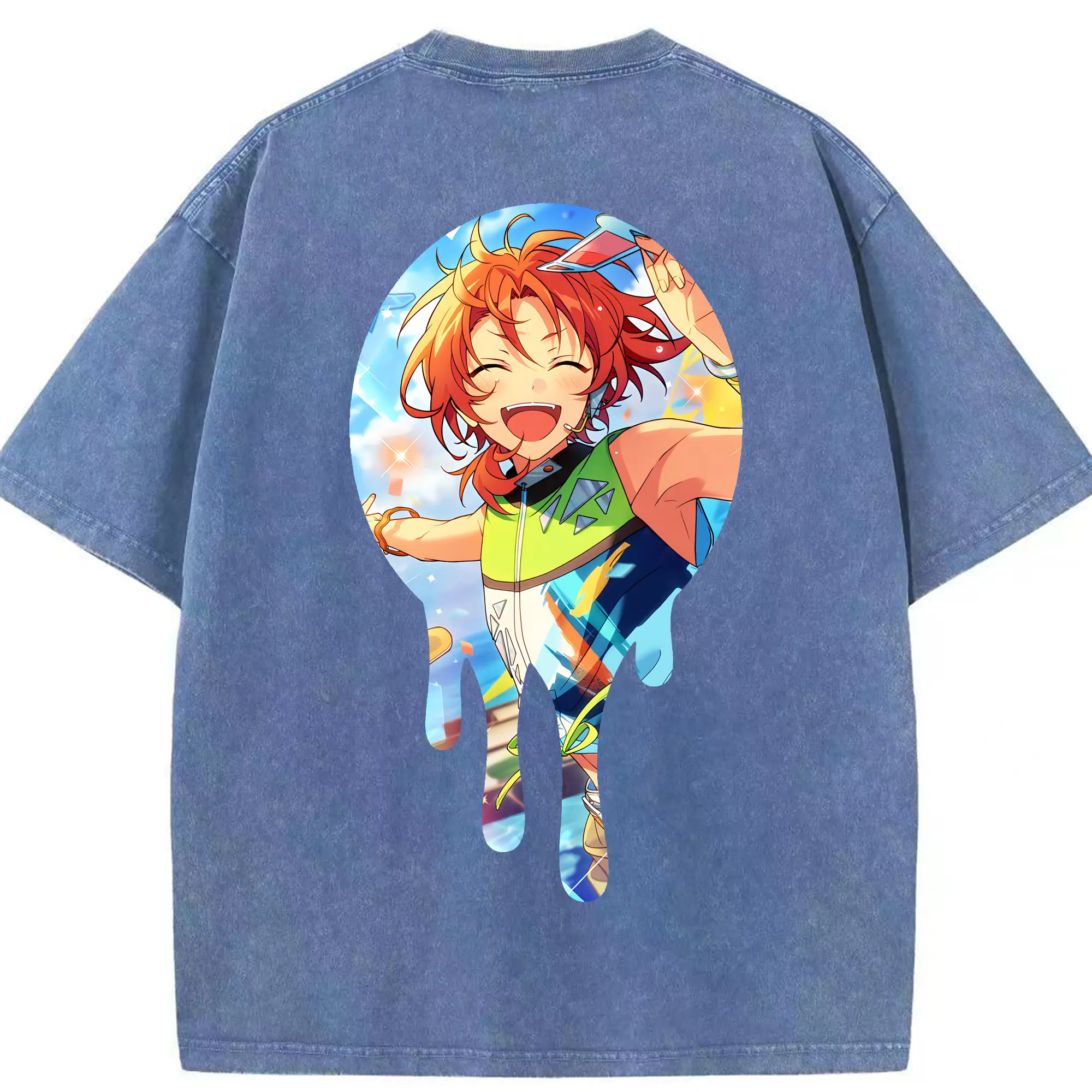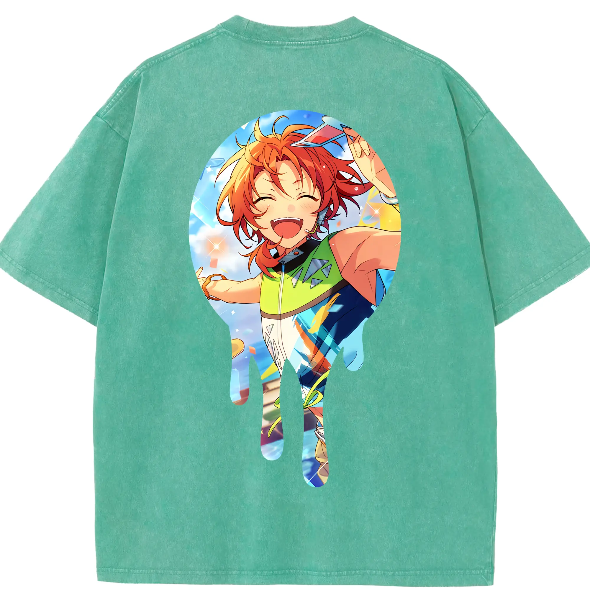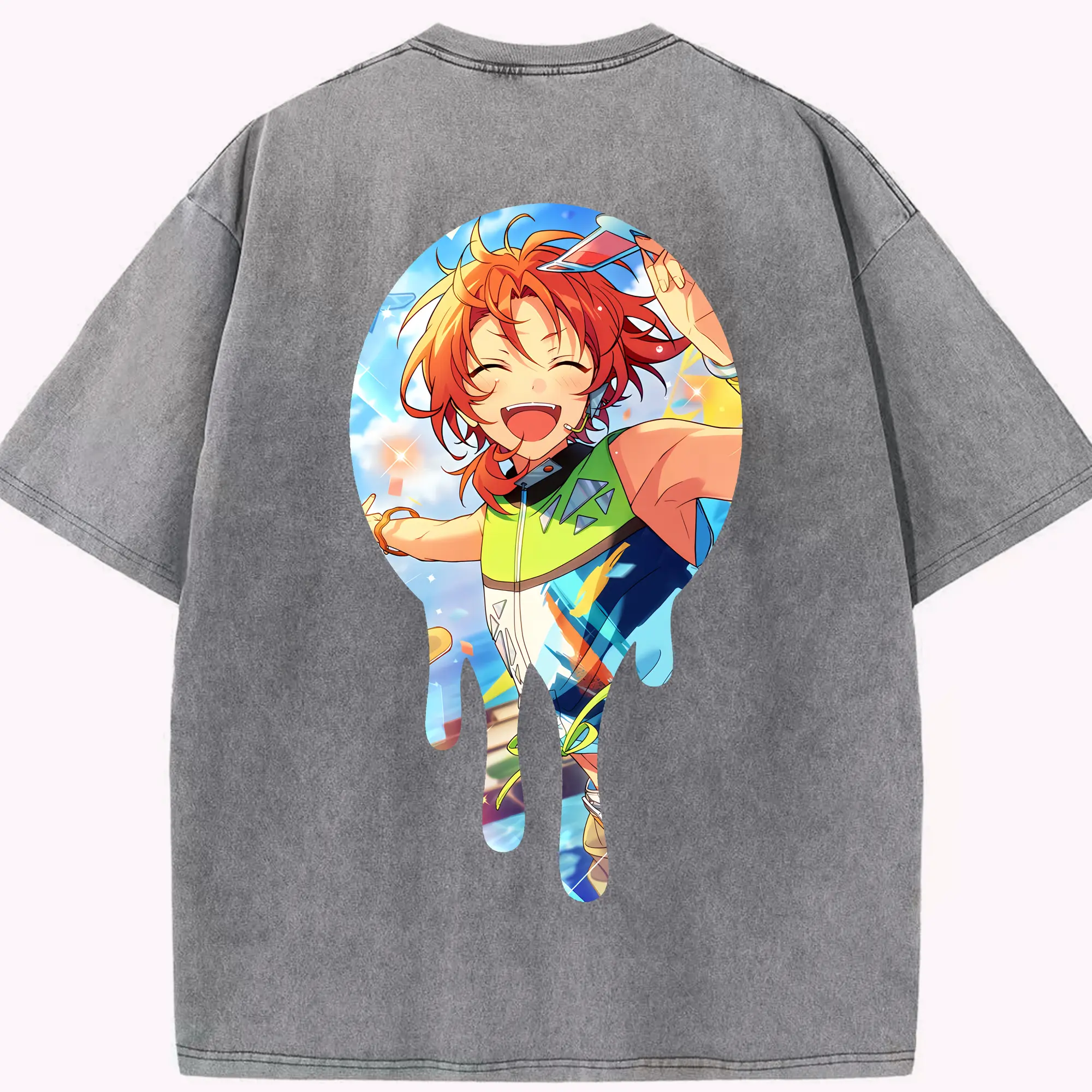 あんさん ぶる グッズ Knights 月永レオ - 綿100% ヴィンテージ風 半袖Tシャツ ・ フロントプリント ・ 柔らか肌触り ・ 通気性 快適 ・ スポーツ カジュアル 外出用