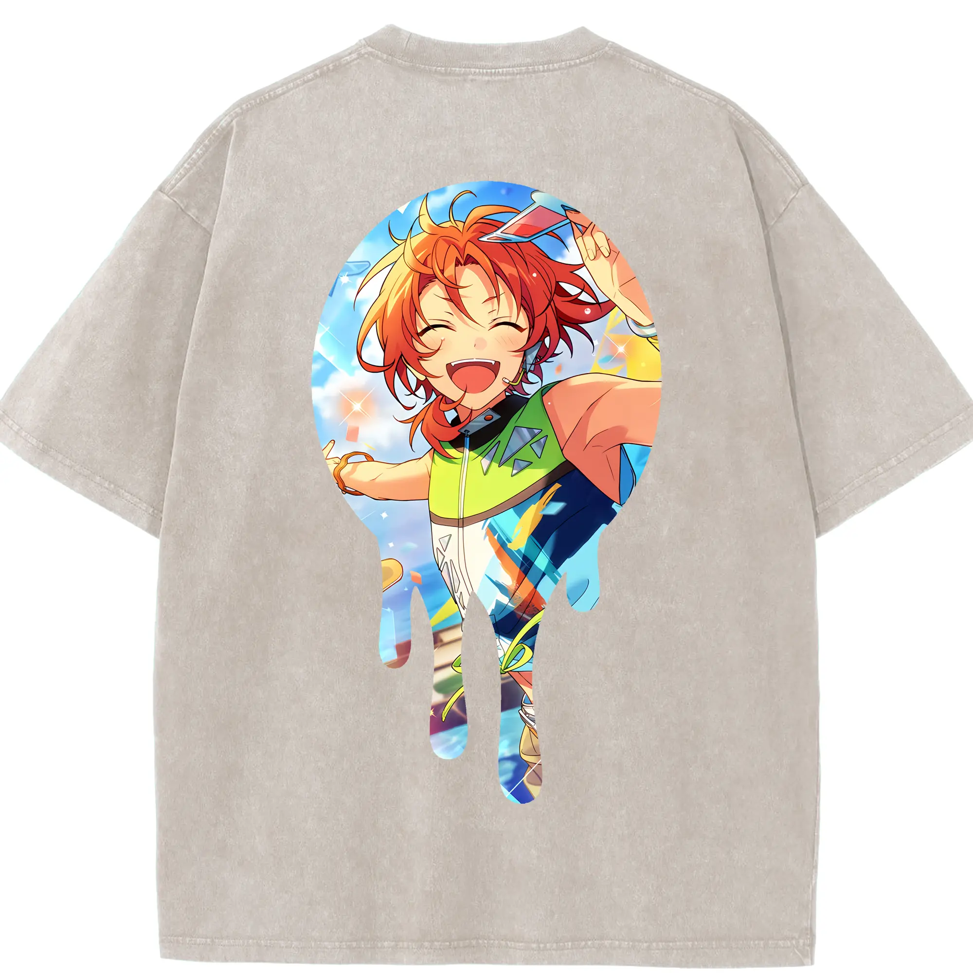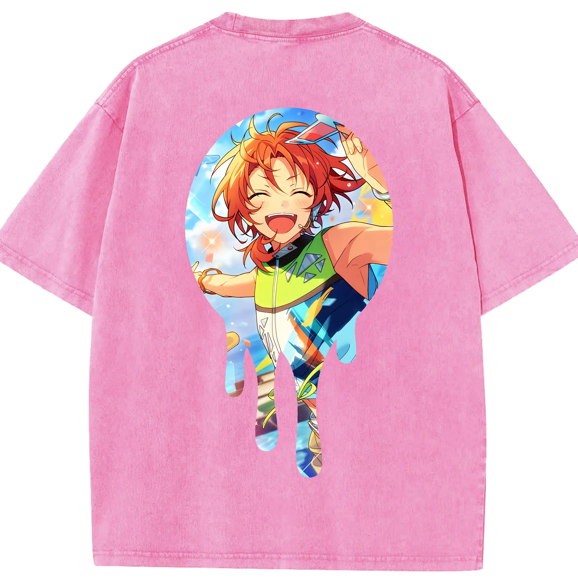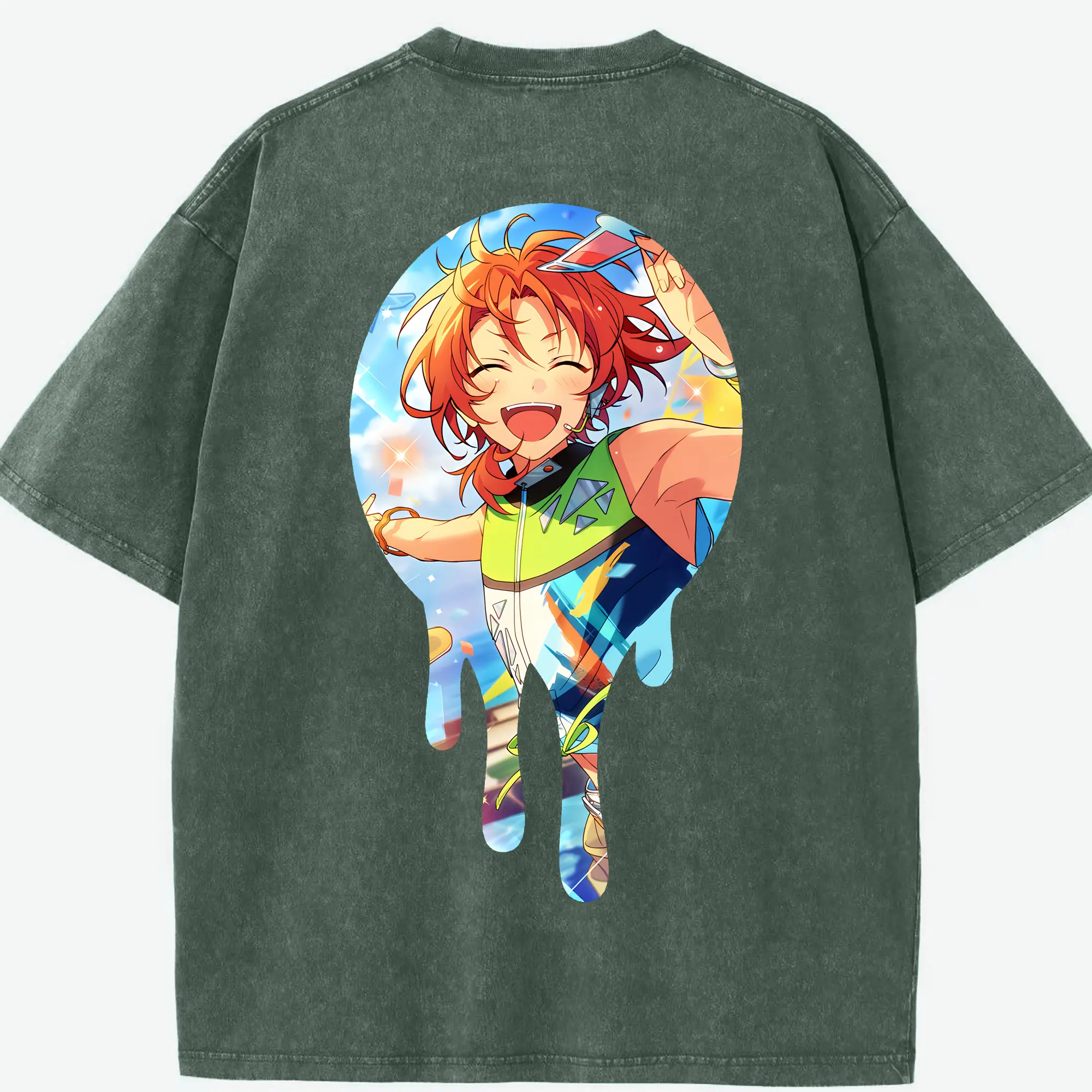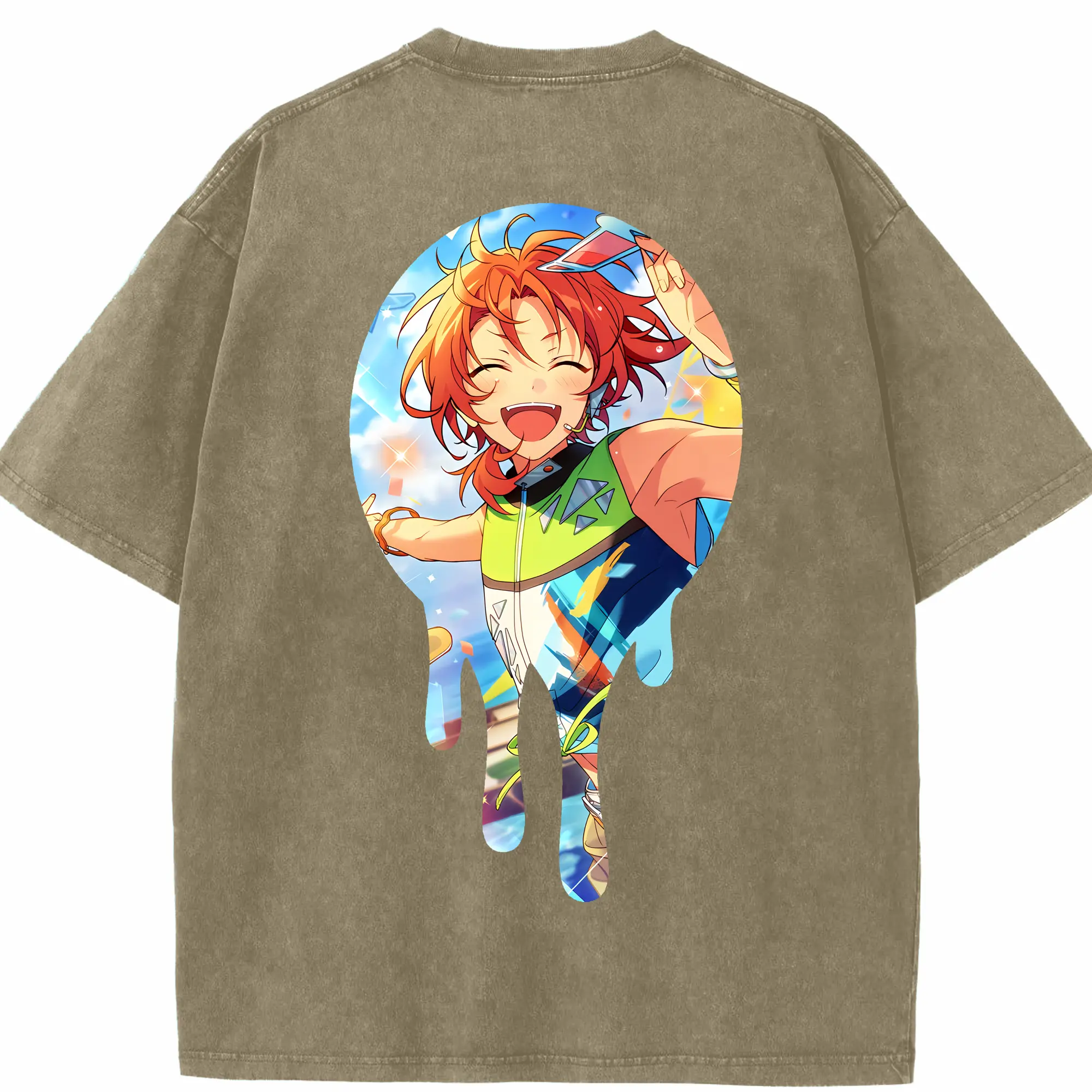 あんさん ぶる グッズ Knights 月永レオ - 綿100% ヴィンテージ風 半袖Tシャツ ・ フロントプリント ・ 柔らか肌触り ・ 通気性 快適 ・ スポーツ カジュアル 外出用