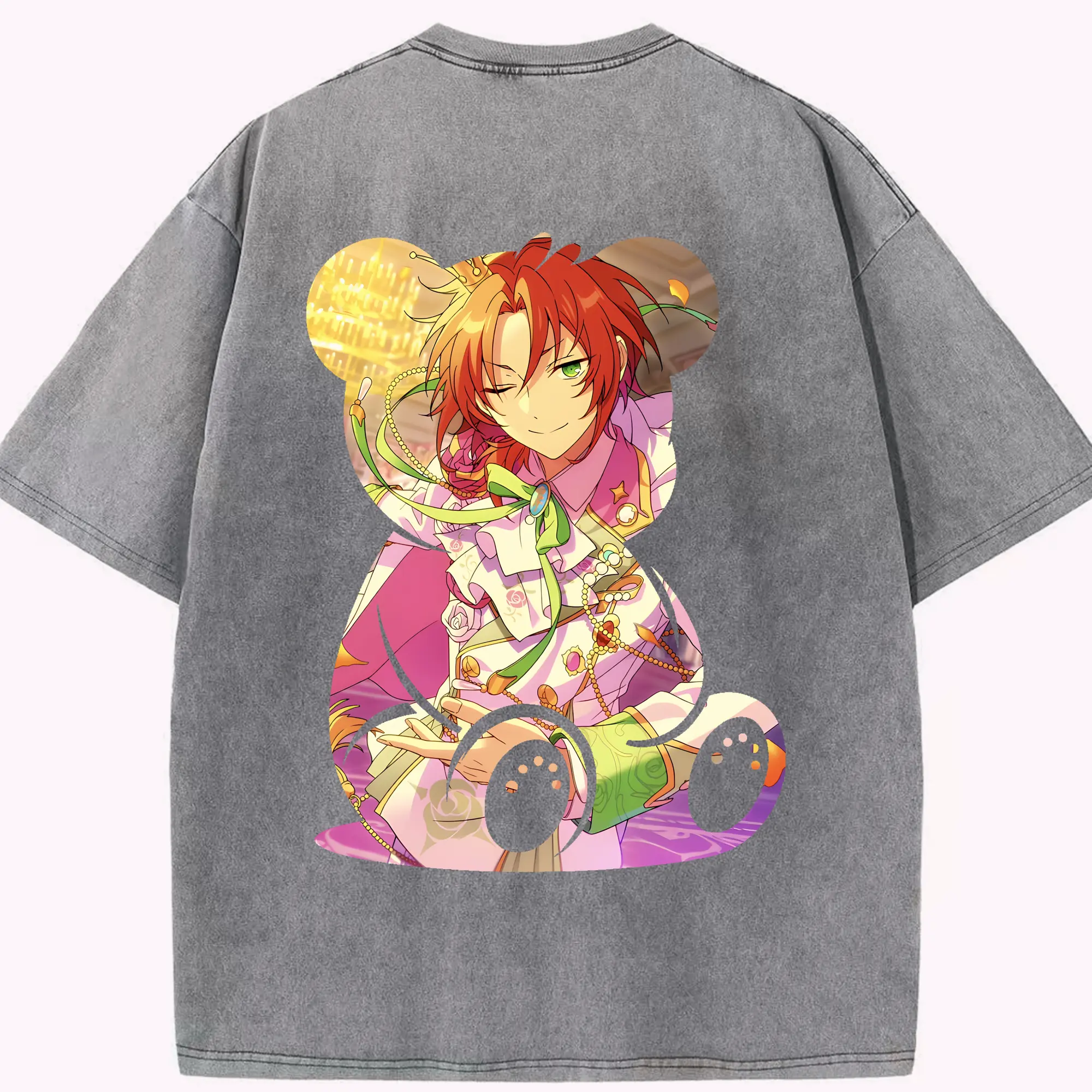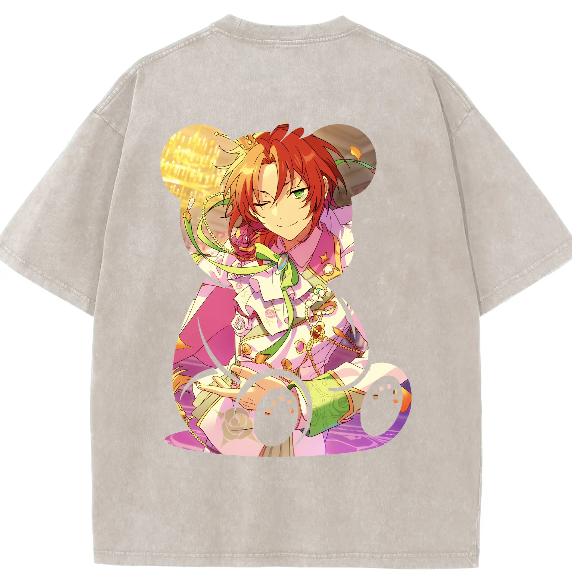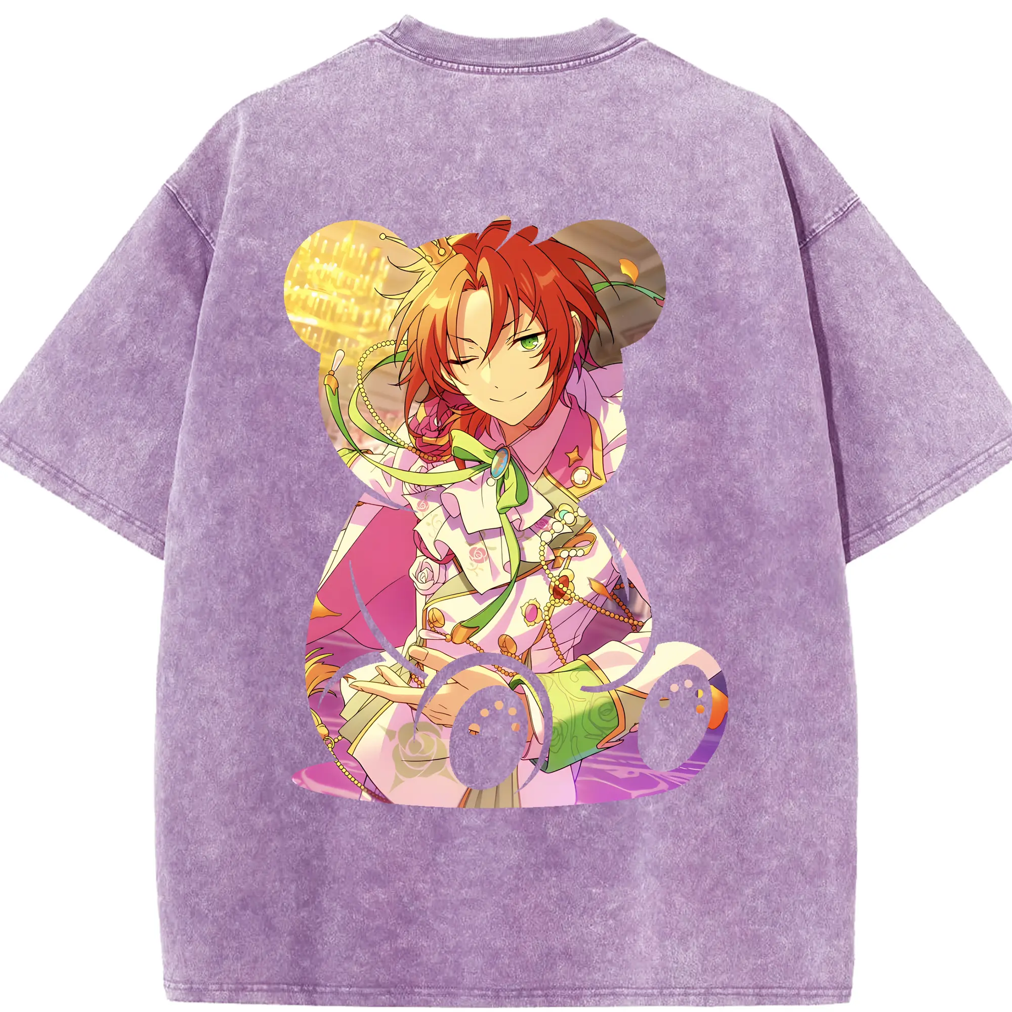 あんさん ぶる グッズ Knights 月永レオ - 綿100% ヴィンテージ風 半袖Tシャツ ・ 背面プリント ・ 柔らか肌触り ・ 通気性 快適 ・ スポーツ カジュアル 外出用