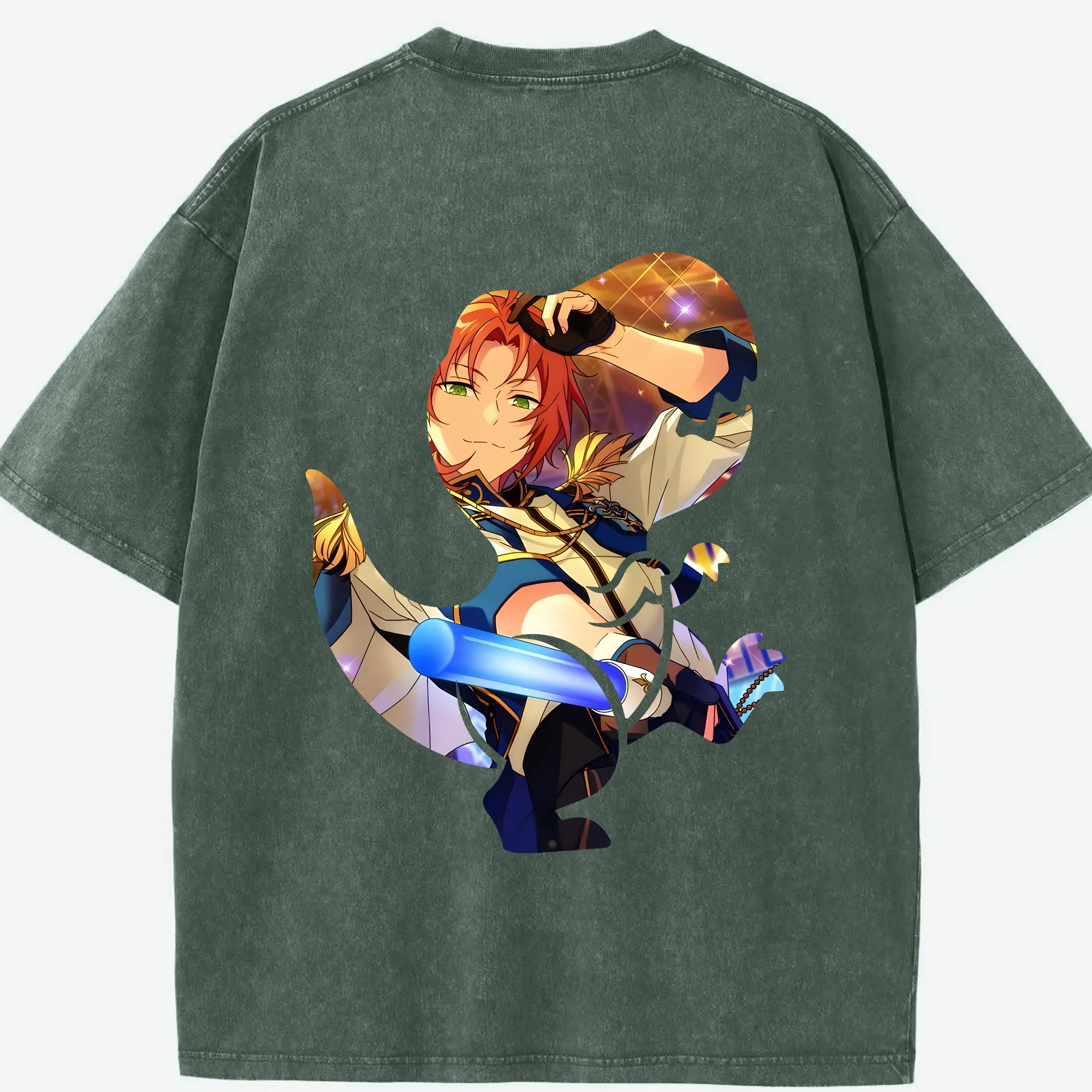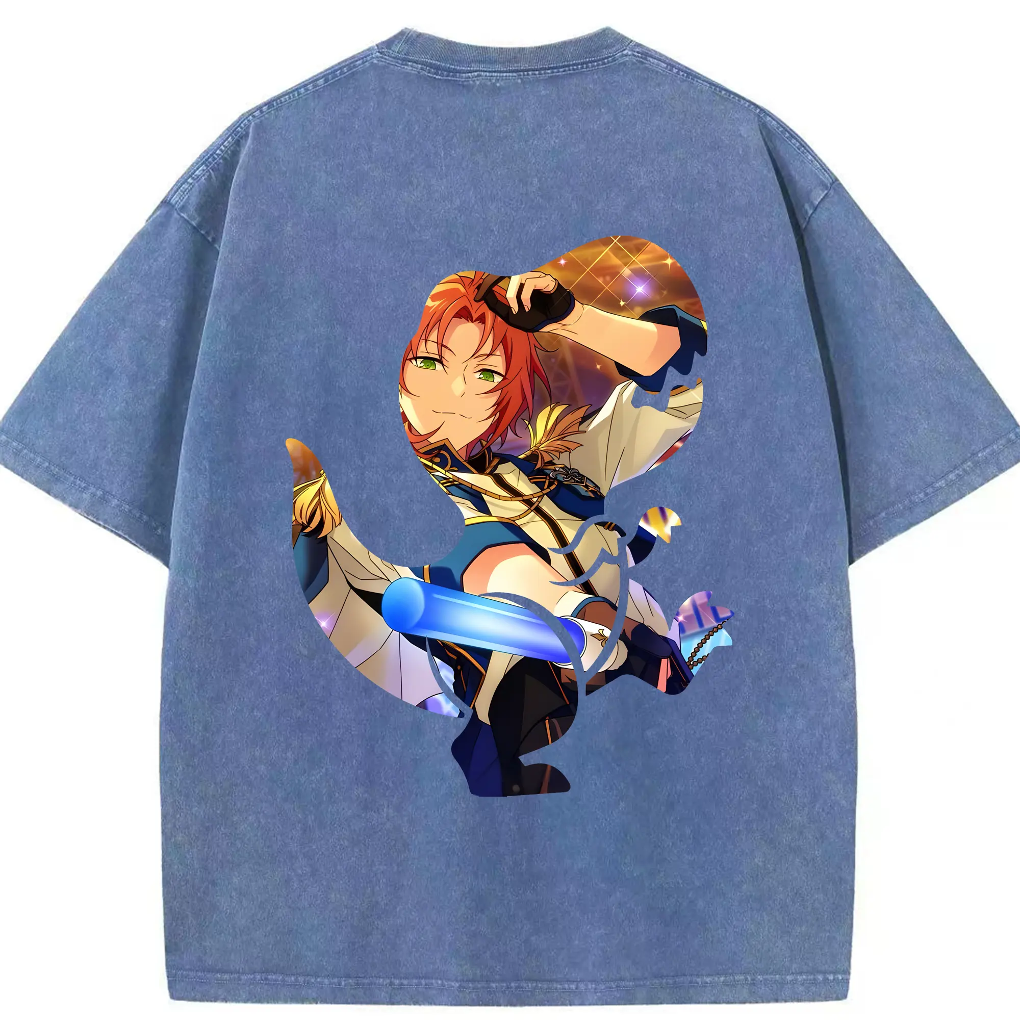 あんさん ぶる グッズ Knights 月永レオ - 綿100% ヴィンテージ風 半袖Tシャツ ・ フロントプリント ・ 柔らか肌触り ・ 通気性 快適 ・ スポーツ カジュアル 外出用