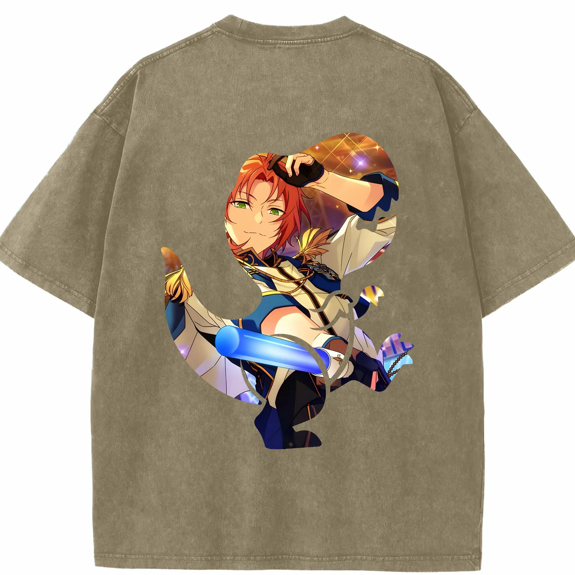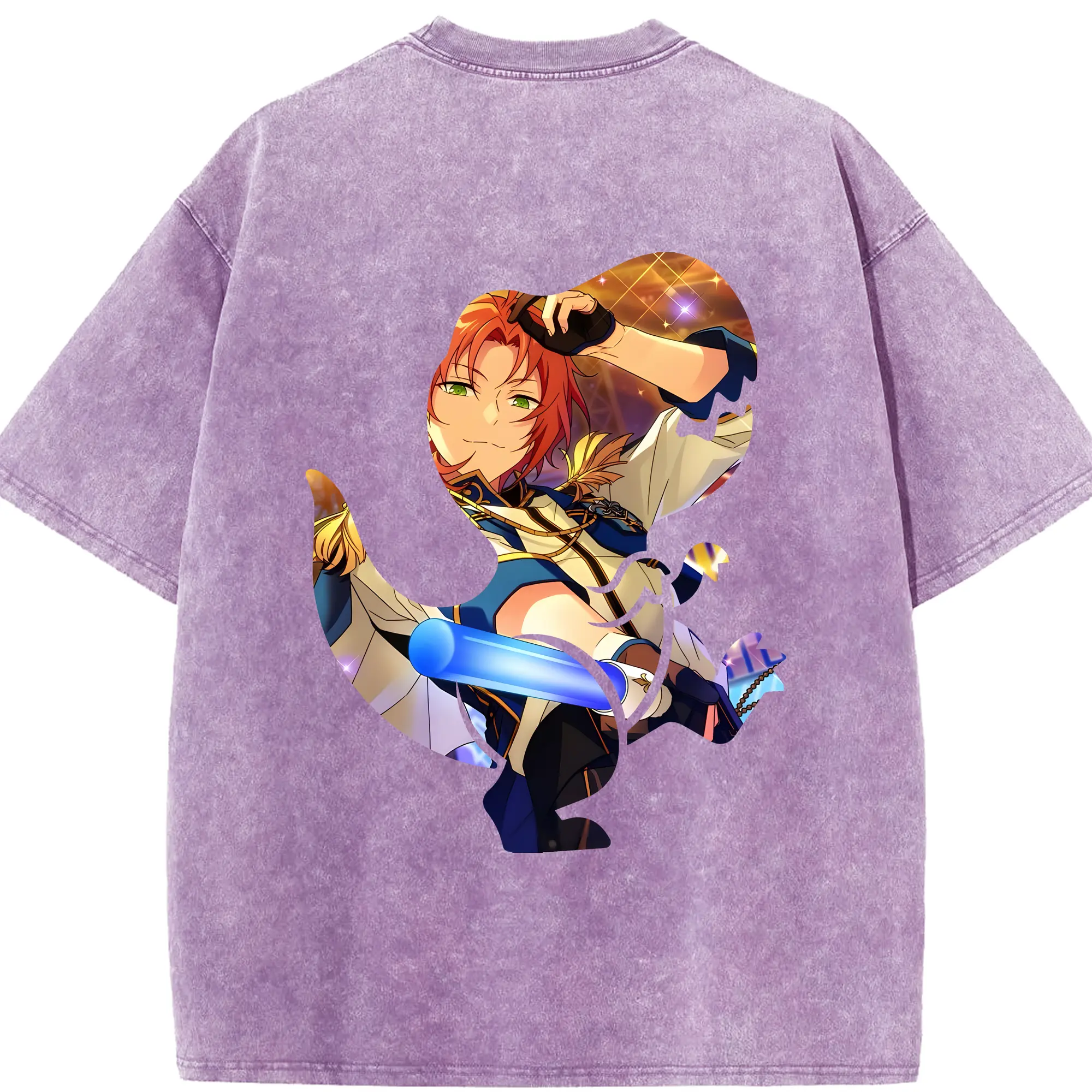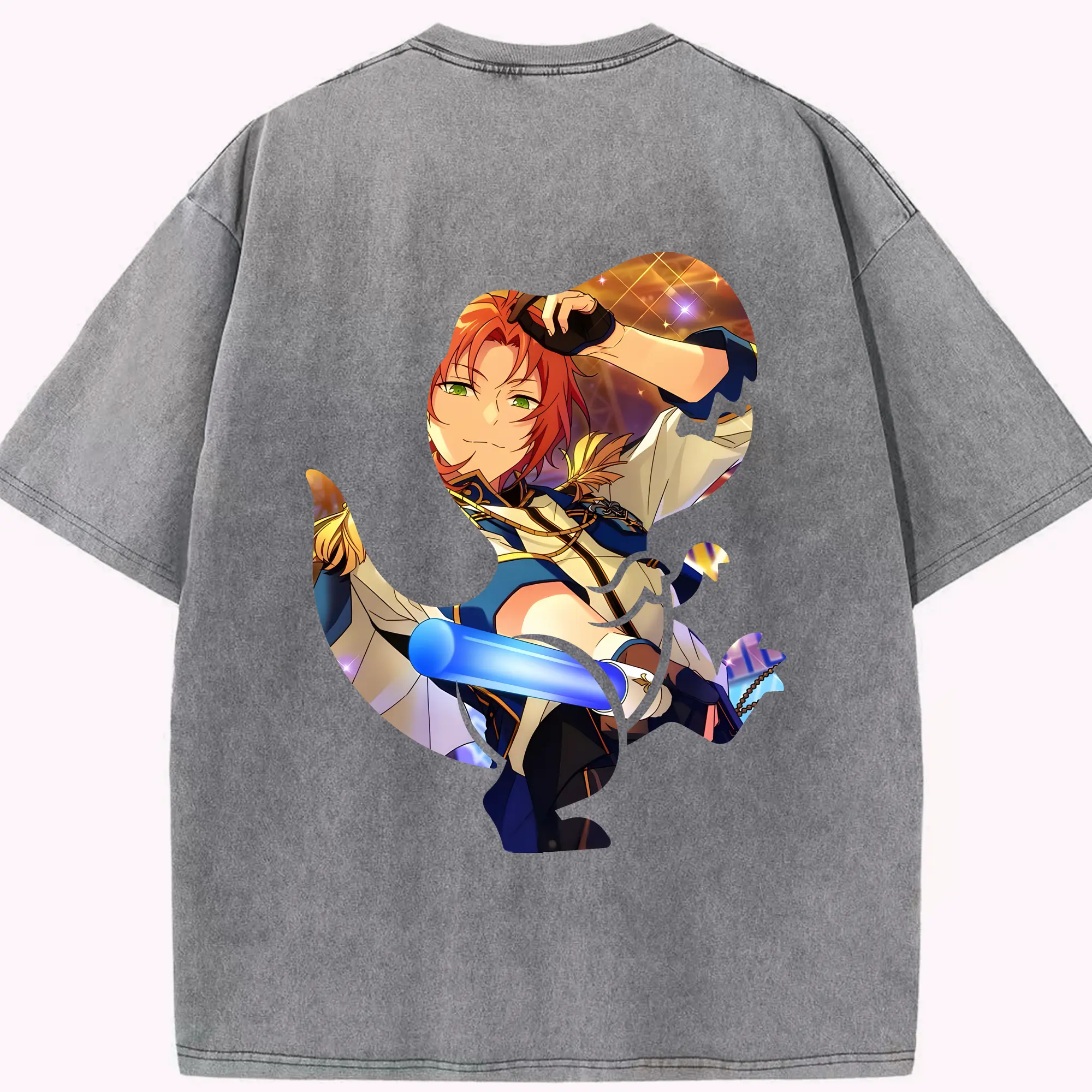 あんさん ぶる グッズ Knights 月永レオ - 綿100% ヴィンテージ風 半袖Tシャツ ・ 背面プリント ・ 柔らか肌触り ・ 通気性 快適 ・ スポーツ カジュアル 外出用