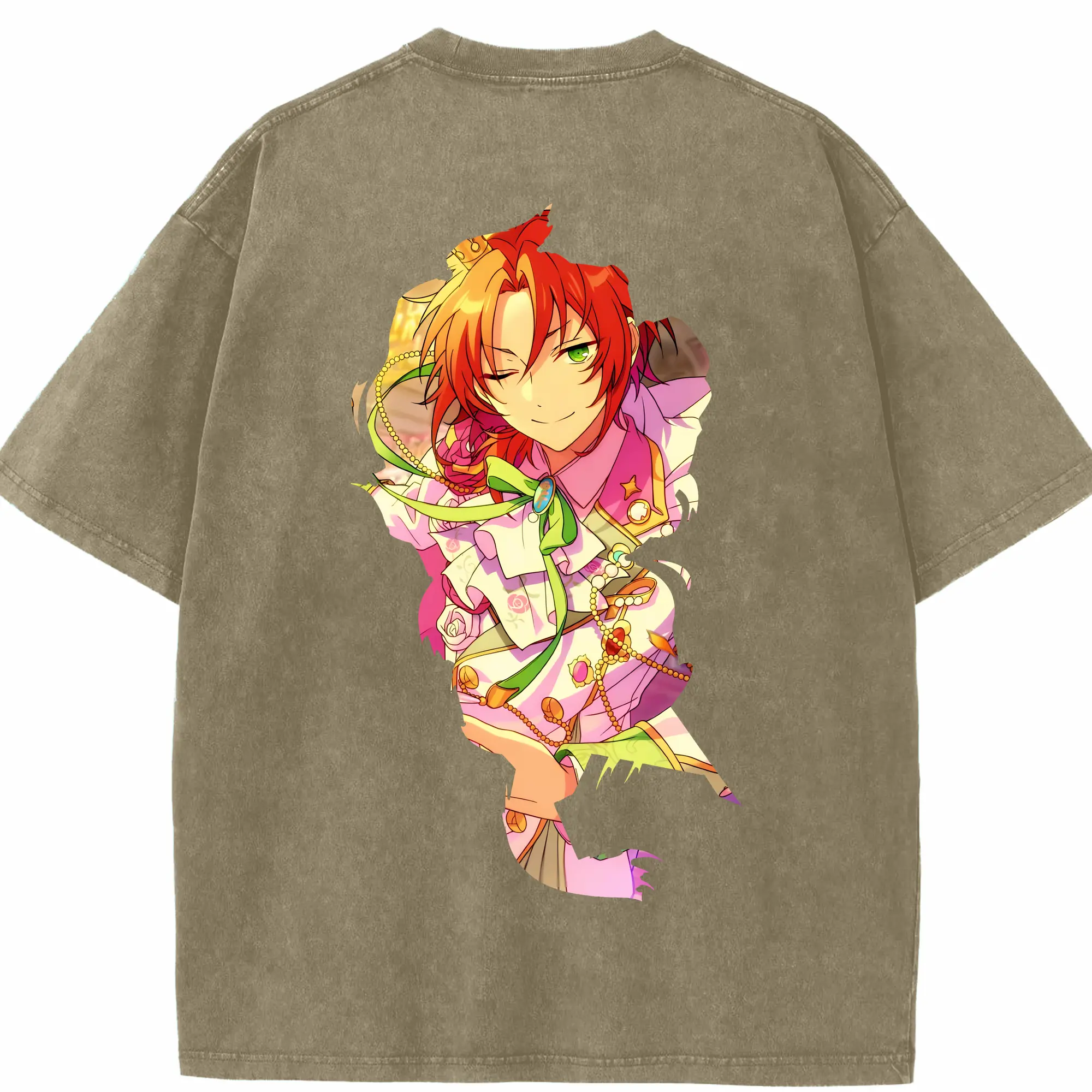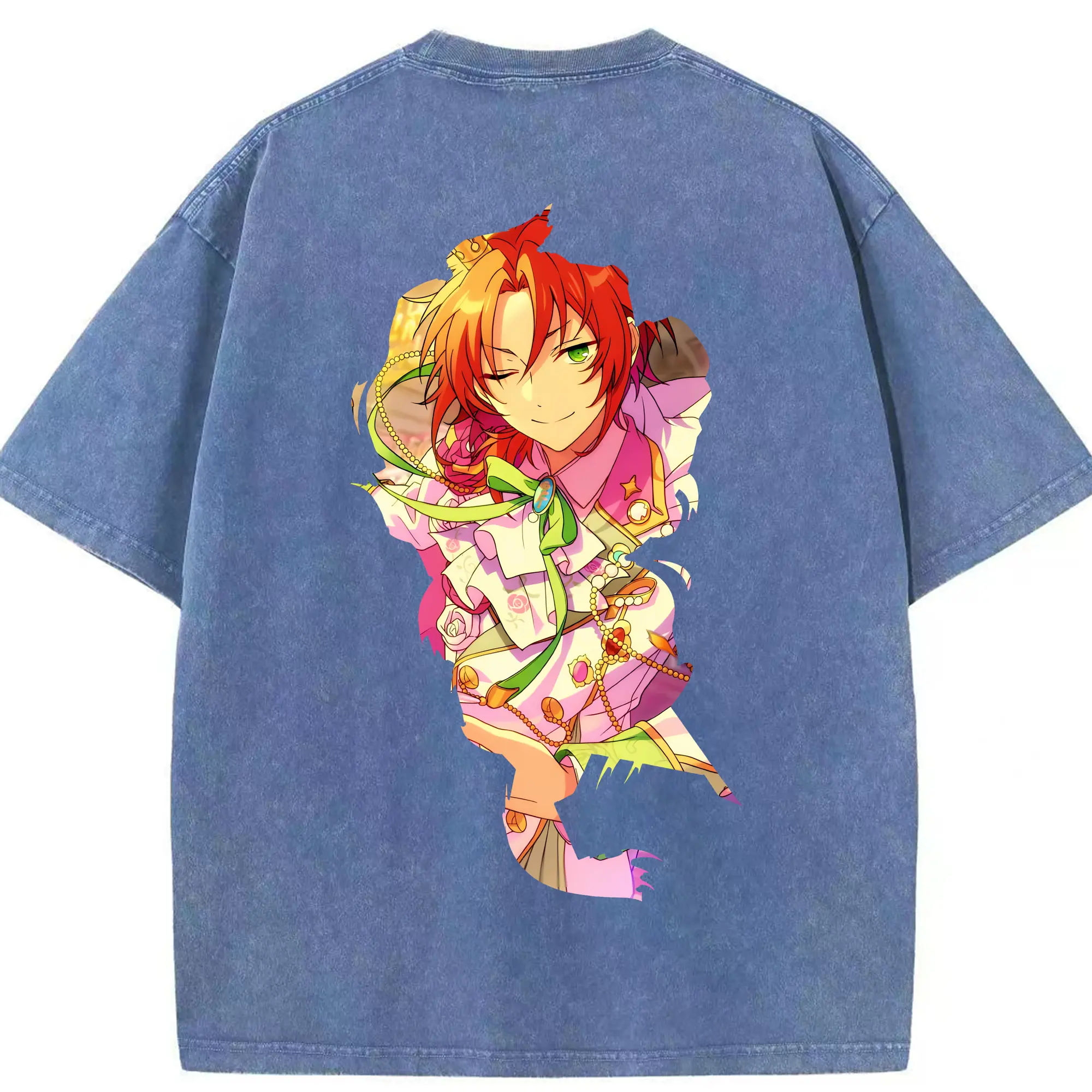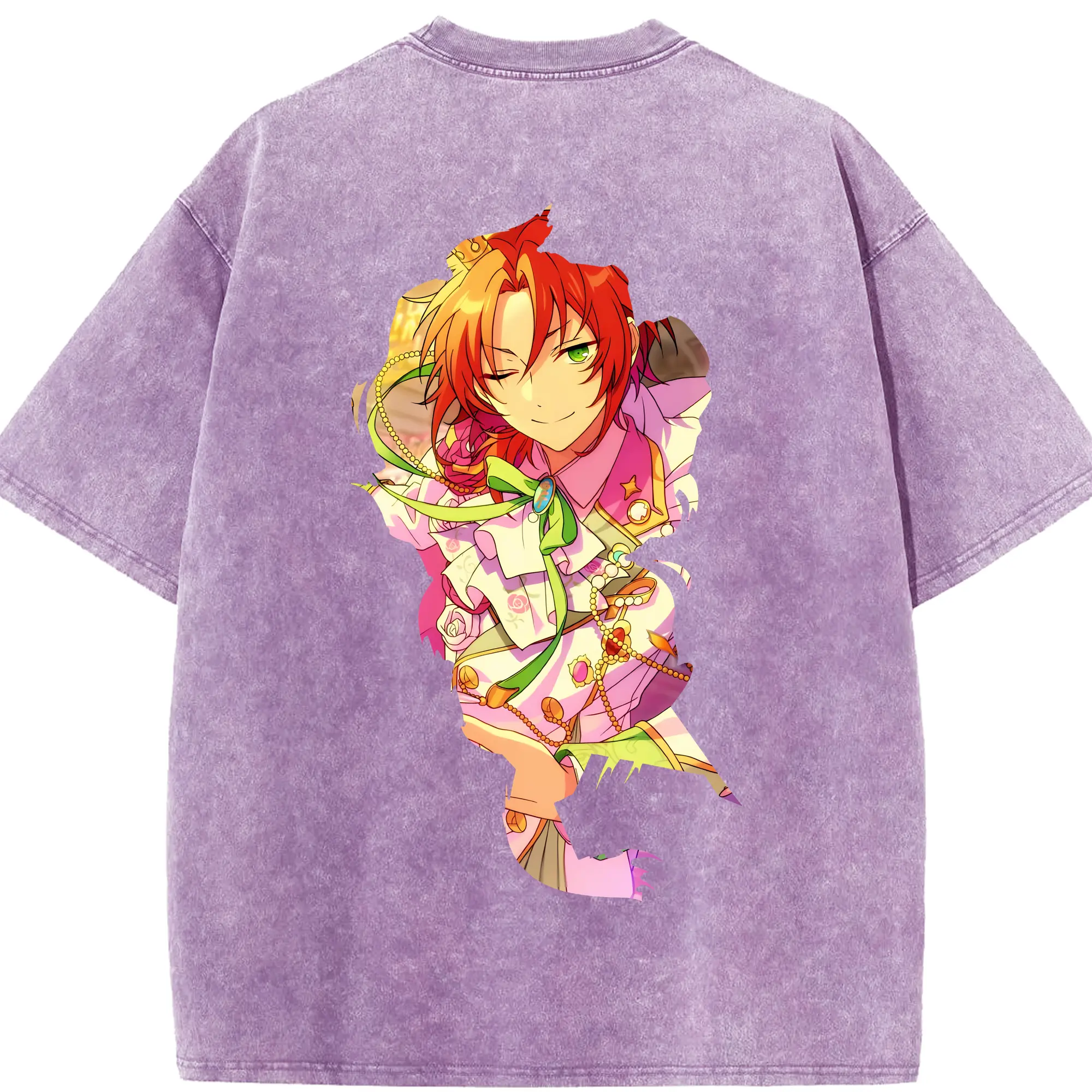 あんさん ぶる グッズ Knights 月永レオ - 綿100% ヴィンテージ風 半袖Tシャツ ・ フロントプリント ・ 柔らか肌触り ・ 通気性 快適 ・ スポーツ カジュアル 外出用