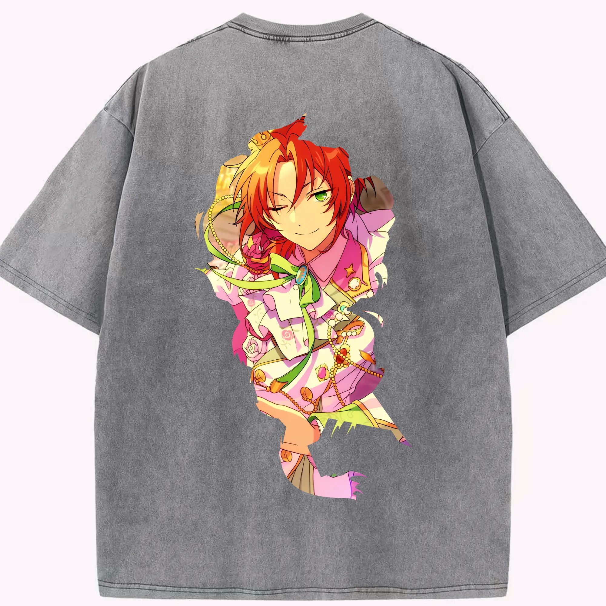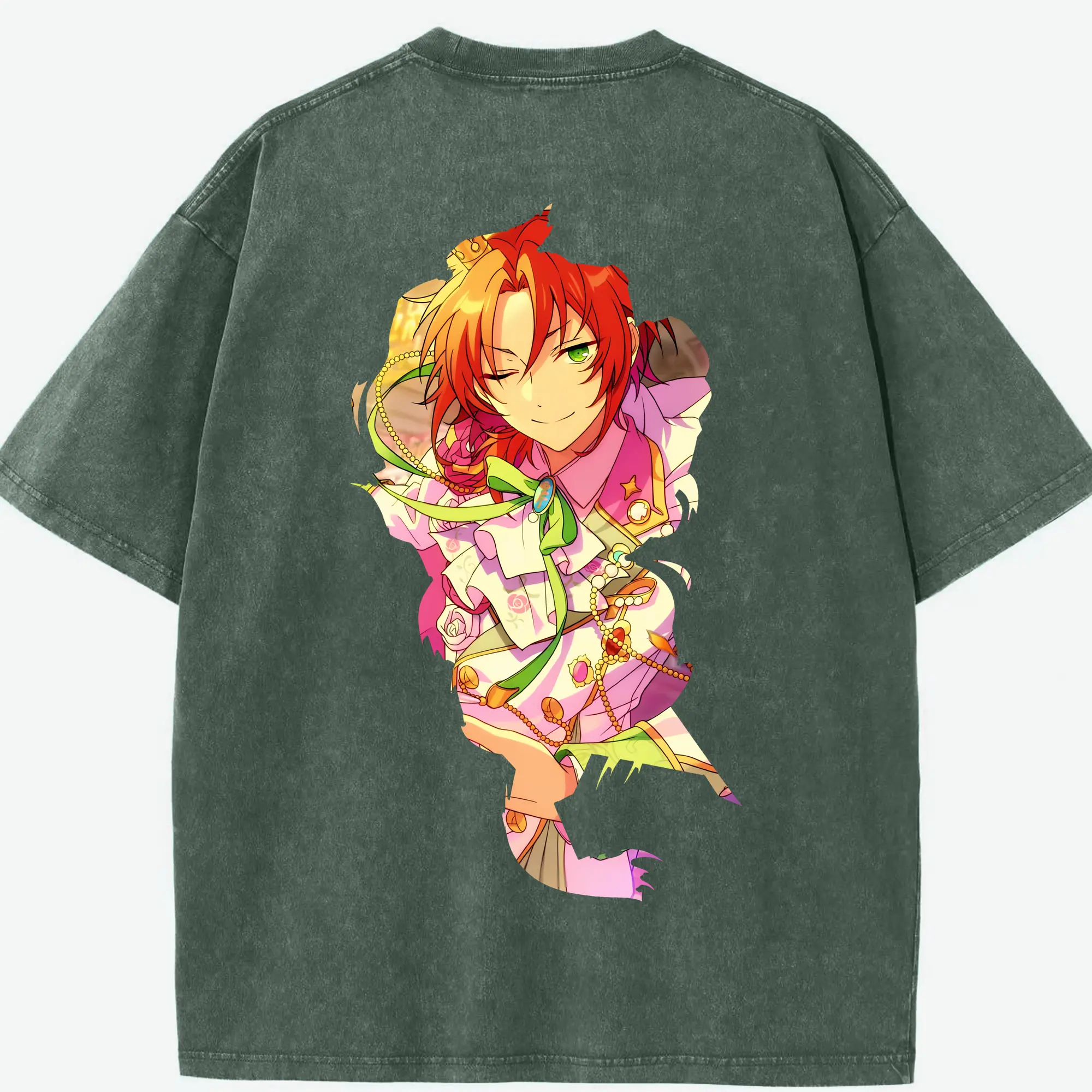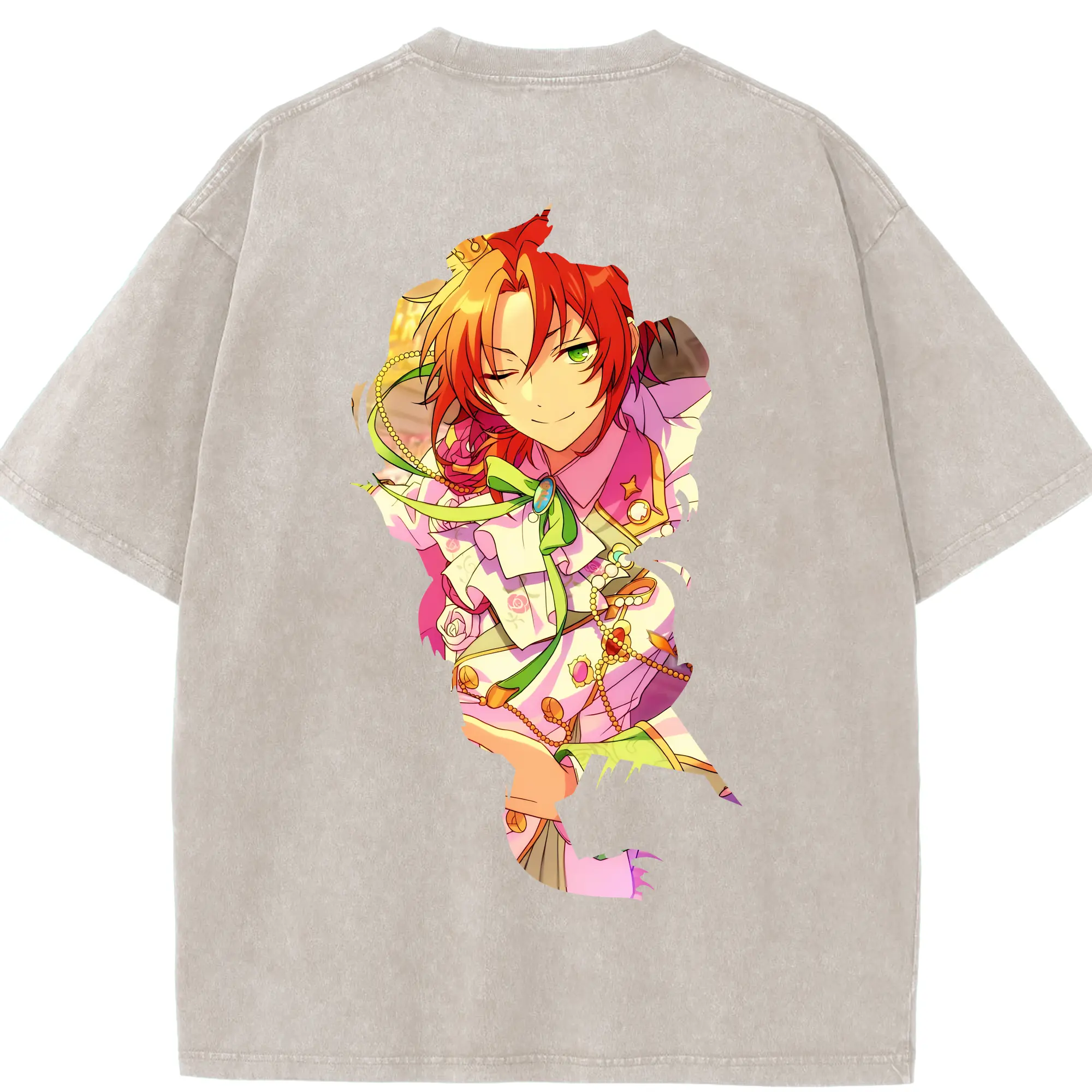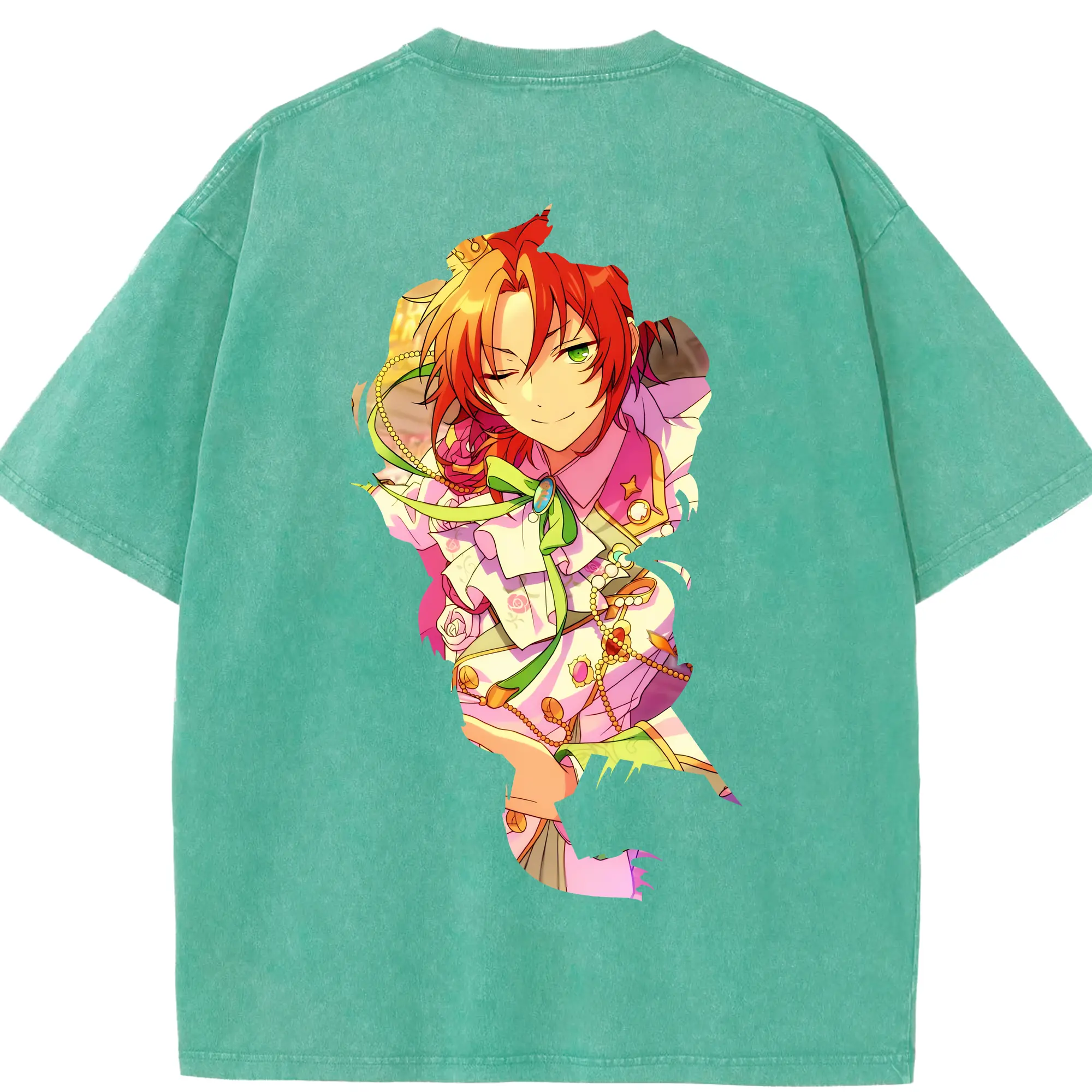 あんさん ぶる グッズ Knights 月永レオ - 綿100% ヴィンテージ風 半袖Tシャツ ・ フロントプリント ・ 柔らか肌触り ・ 通気性 快適 ・ スポーツ カジュアル 外出用