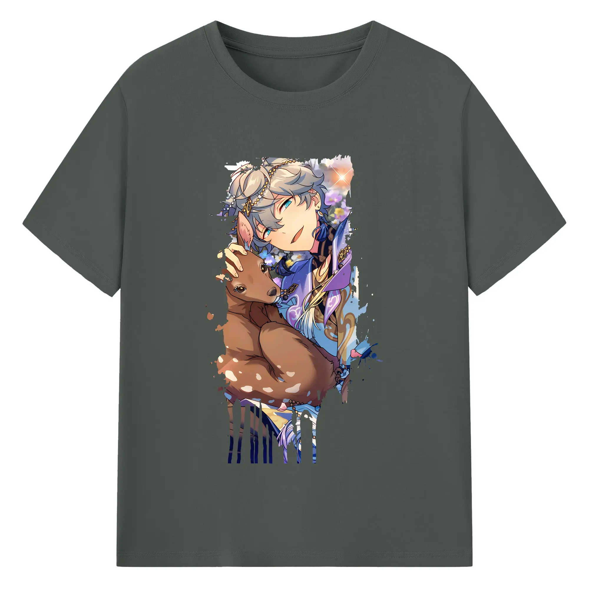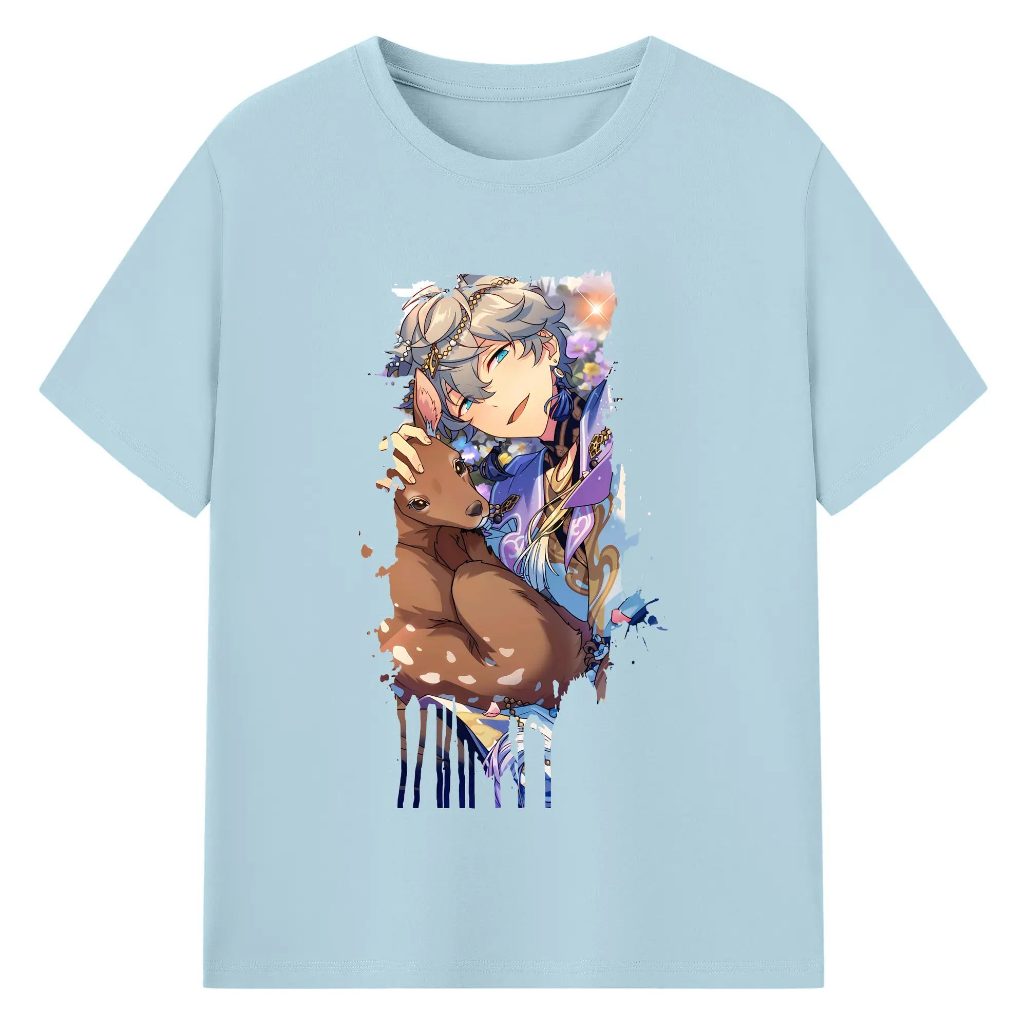 あんさん ぶる グッズ fine 伏見弓弦 - 綿100% 半袖Tシャツ ・ フロントプリント ・ 快適 通気性 ・ 日常使い 散歩 スポーツ用