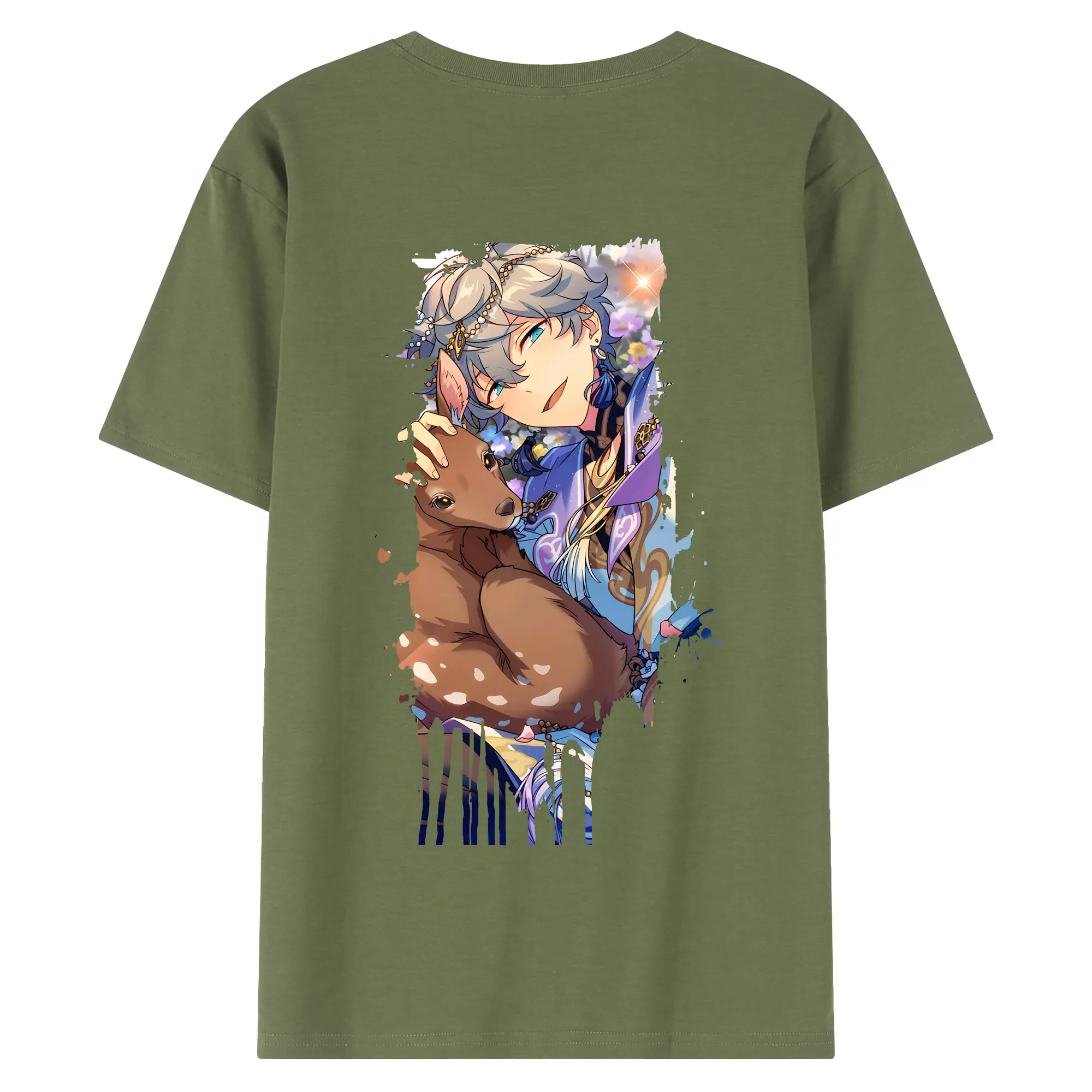 あんさん ぶる グッズ Knights 瀬名泉 - 綿100% ヴィンテージ風 半袖Tシャツ ・ 背面プリント ・ 柔らか肌触り ・ 通気性 快適 ・ スポーツ カジュアル 外出用
