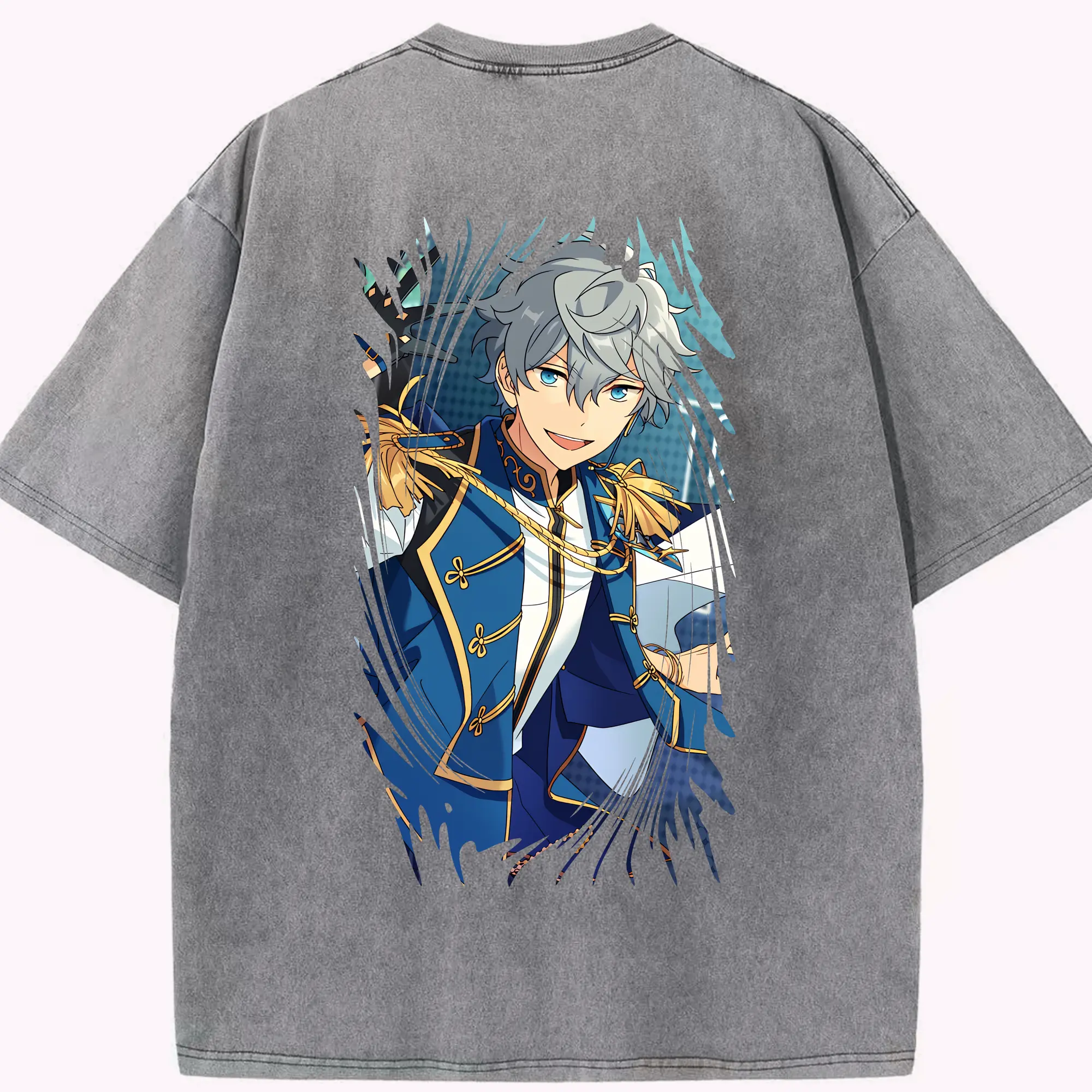 あんさん ぶる グッズ Trickstar 明星スバル - 綿100% ヴィンテージ風 半袖Tシャツ ・ 背面プリント ・ 柔らか肌触り ・ 通気性 快適 ・ スポーツ カジュアル 外出用