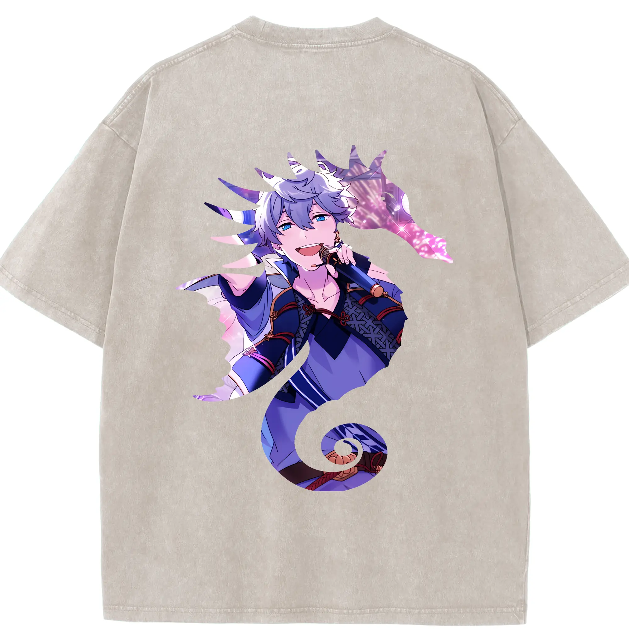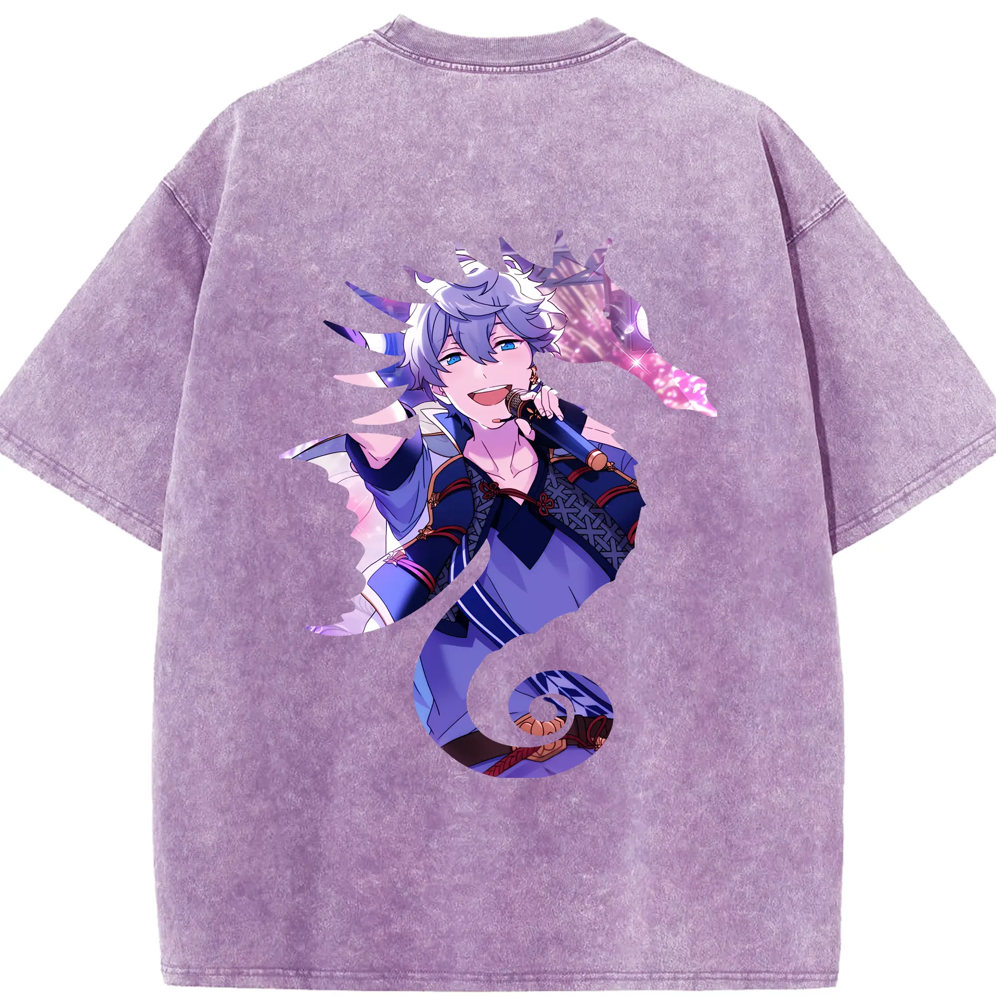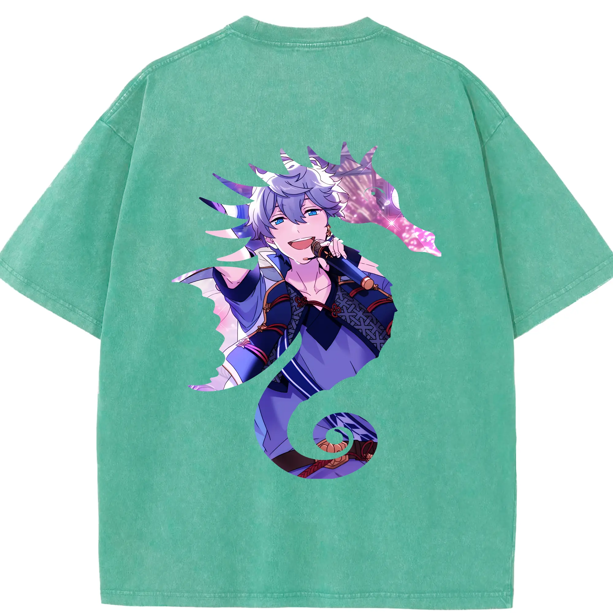 あんさん ぶる グッズ UNDEAD 羽風薫 - 綿100% ヴィンテージ風 半袖Tシャツ ・ 背面プリント ・ 柔らか肌触り ・ 通気性 快適 ・ スポーツ カジュアル 外出用