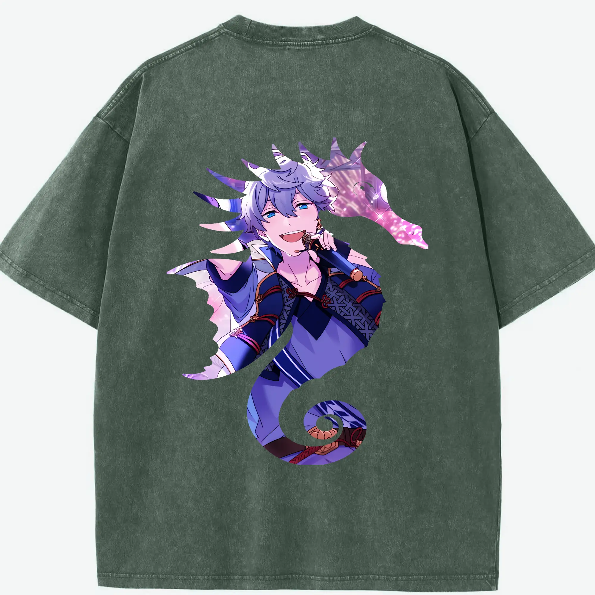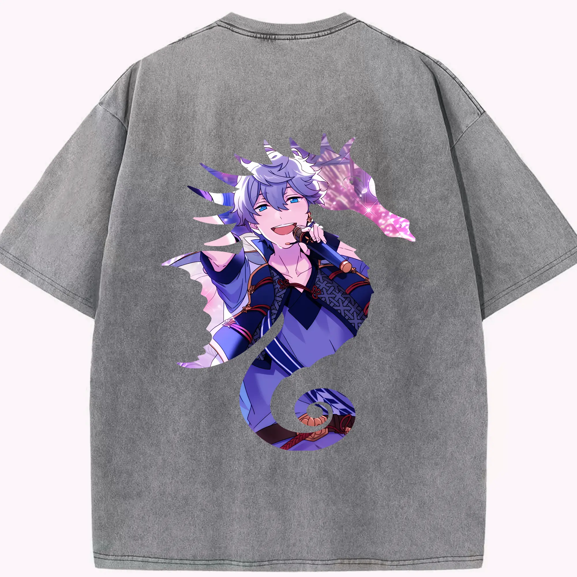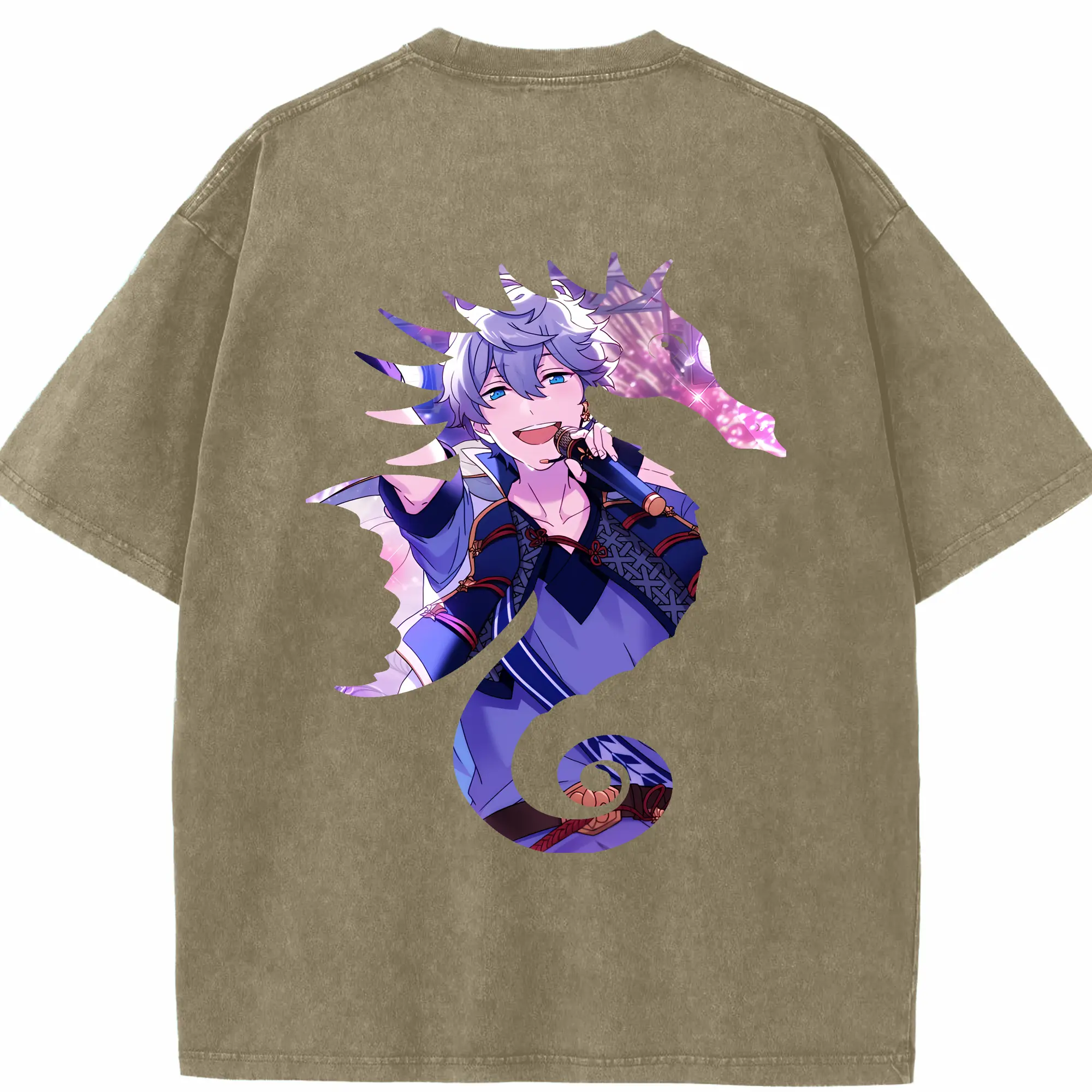 あんさん ぶる グッズ UNDEAD 羽風薫 - 綿100% ヴィンテージ風 半袖Tシャツ ・ 背面プリント ・ 柔らか肌触り ・ 通気性 快適 ・ スポーツ カジュアル 外出用