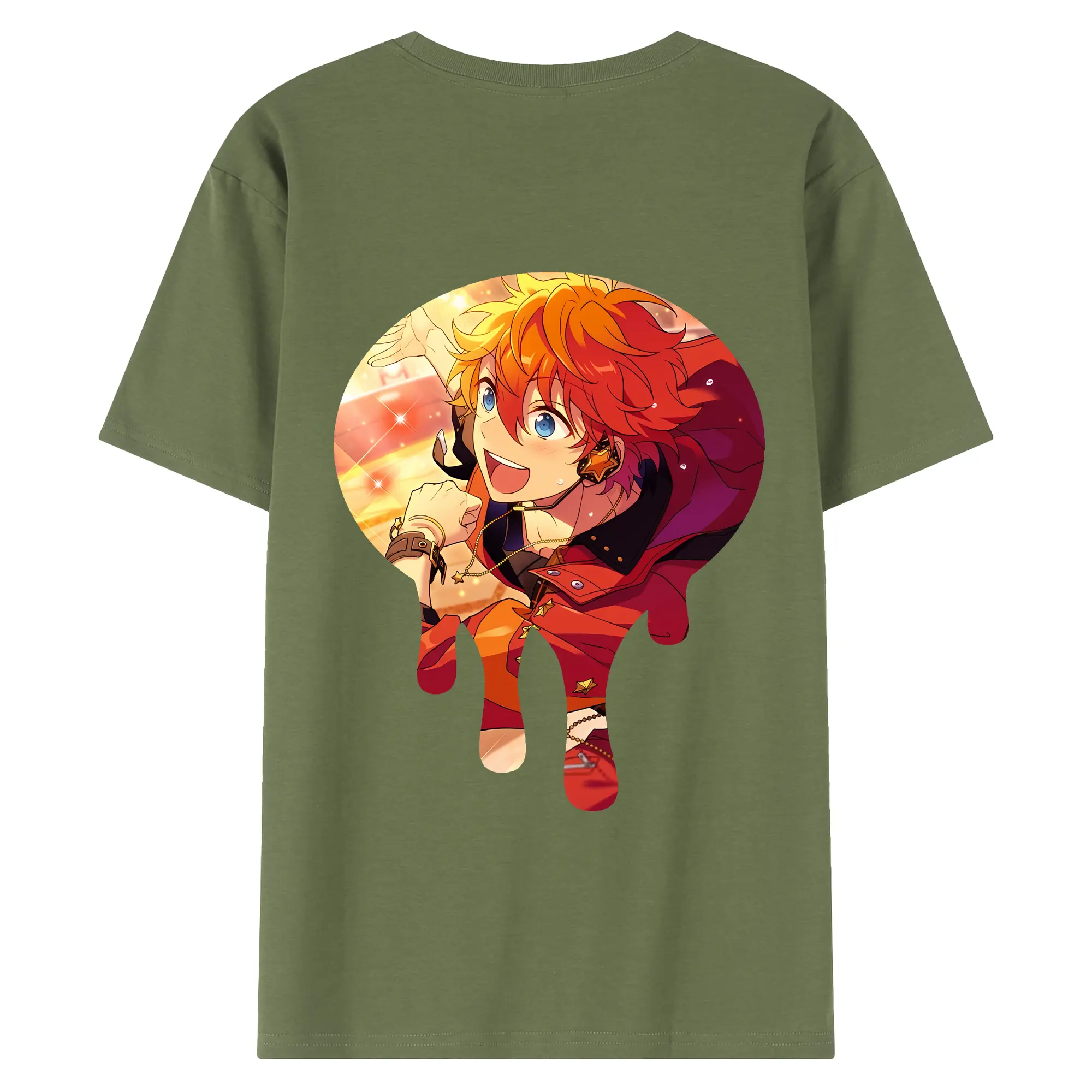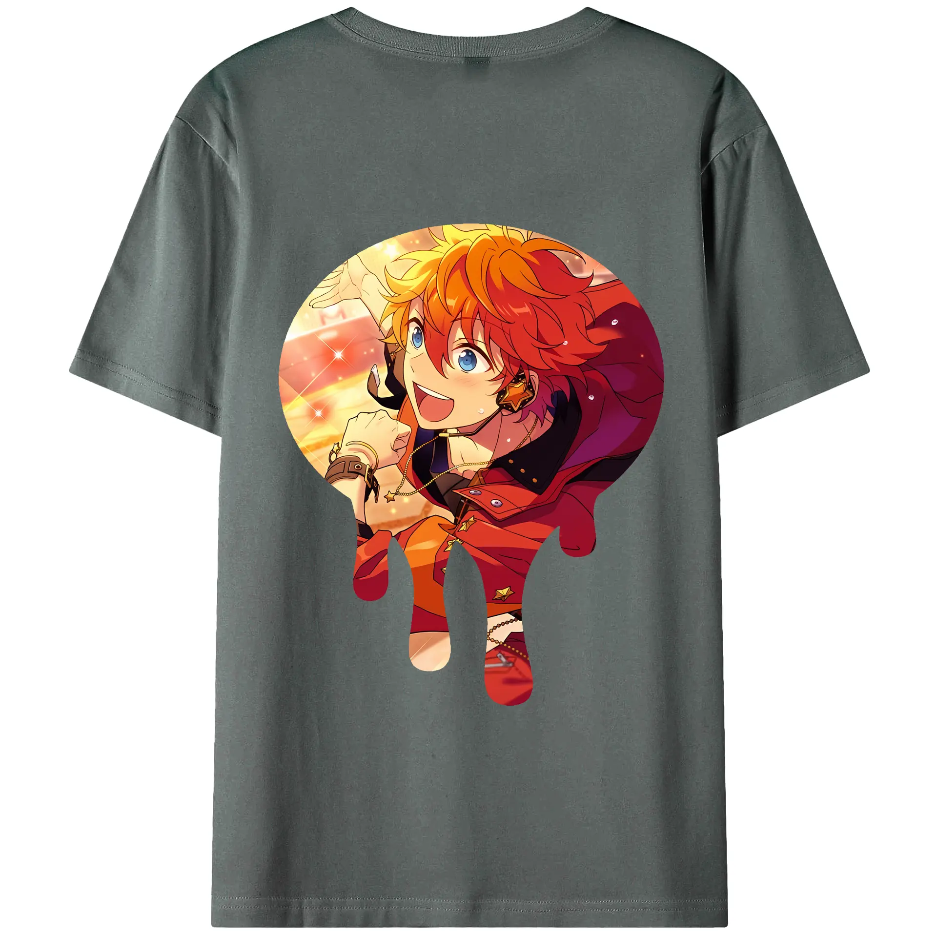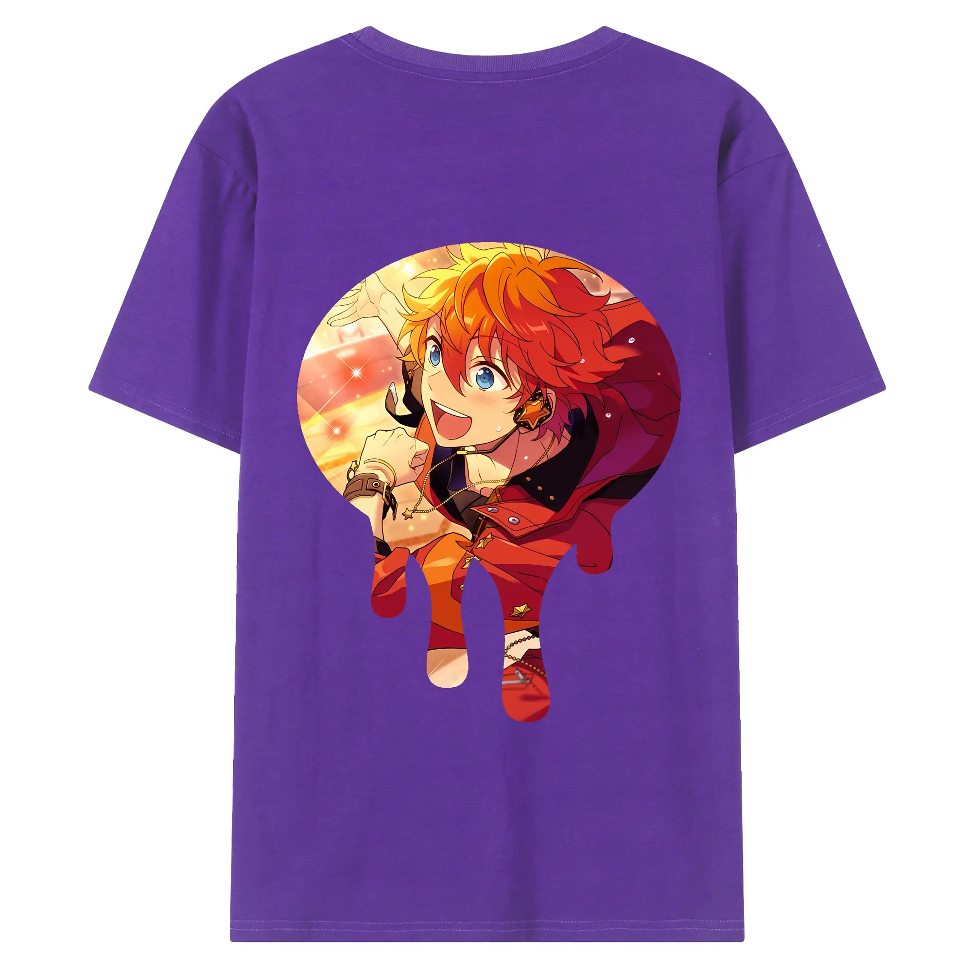 あんさん ぶる グッズ Trickstar 明星スバル - 綿100% ヴィンテージ風 半袖Tシャツ ・ 背面プリント ・ 柔らか肌触り ・ 通気性 快適 ・ スポーツ カジュアル 外出用