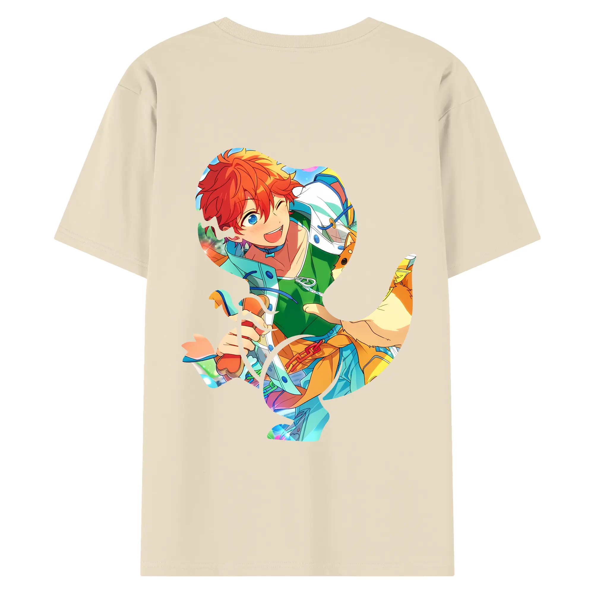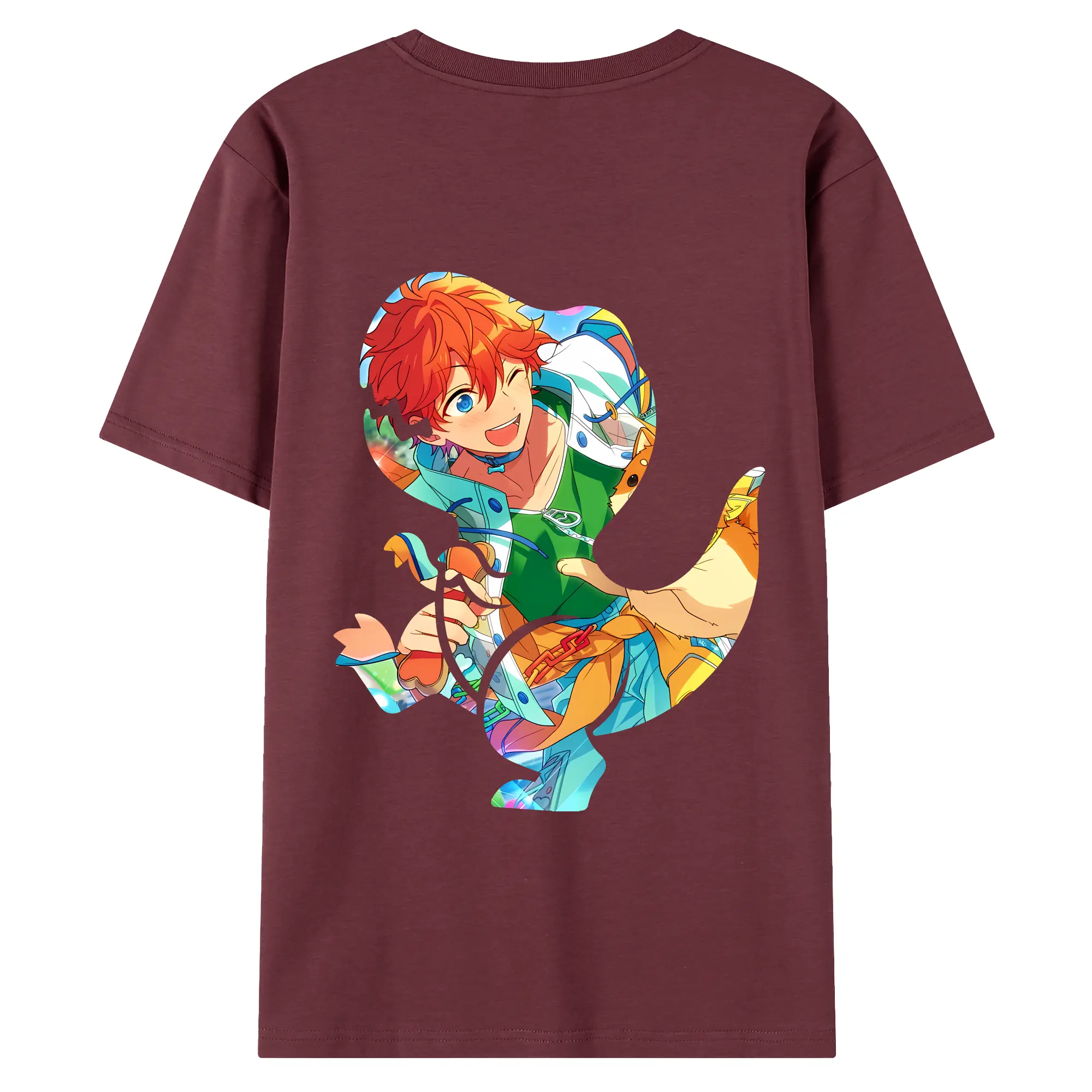 あんさん ぶる グッズ Trickstar 明星スバル - 綿100% ヴィンテージ風 半袖Tシャツ ・ 背面プリント ・ 柔らか肌触り ・ 通気性 快適 ・ スポーツ カジュアル 外出用