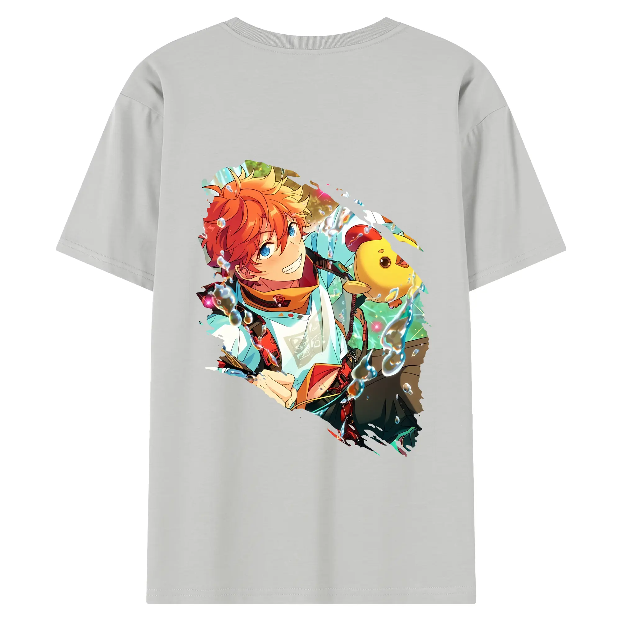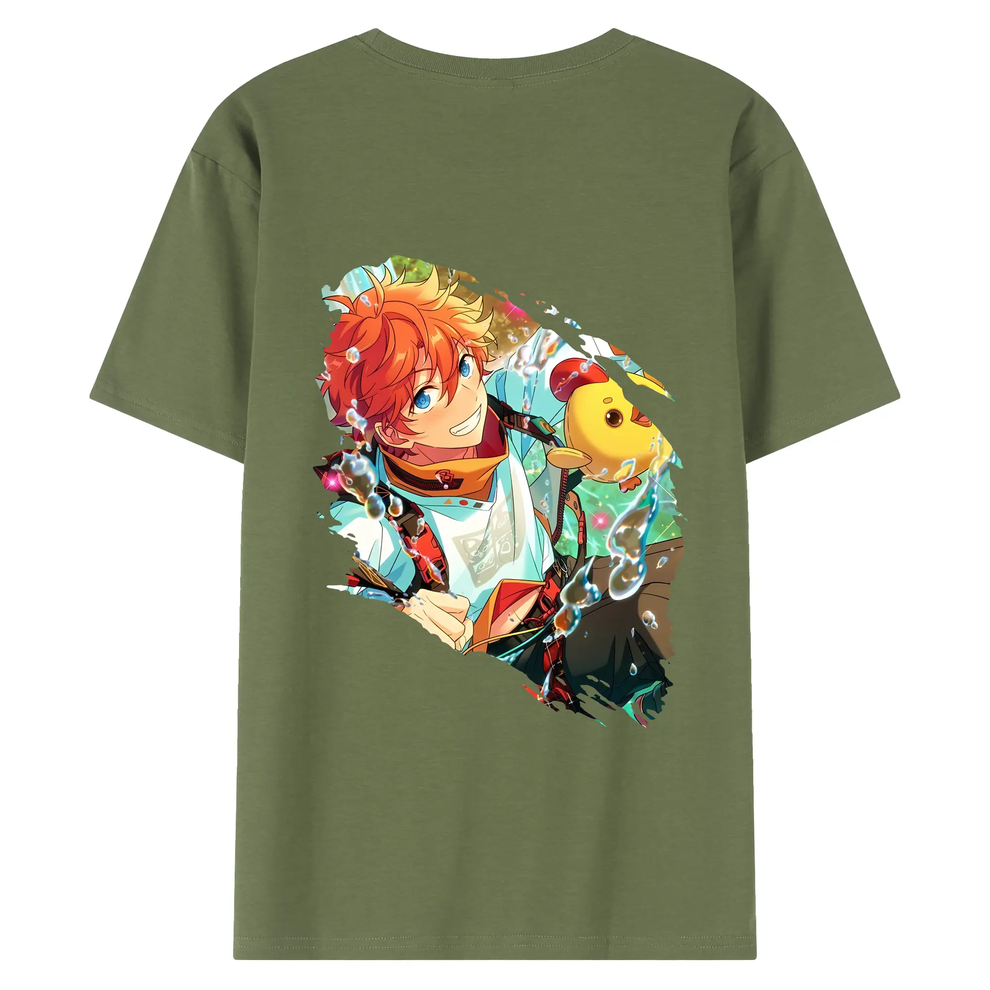 リゼロ グッズ ナツキ・スバル - 綿100% 半袖Tシャツ ・ バックプリント ・ 快適 通気性 ・ 日常使い 散歩 スポーツ用