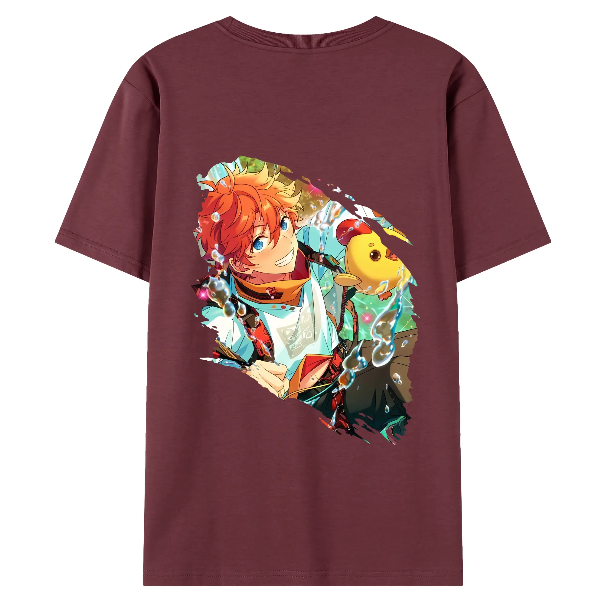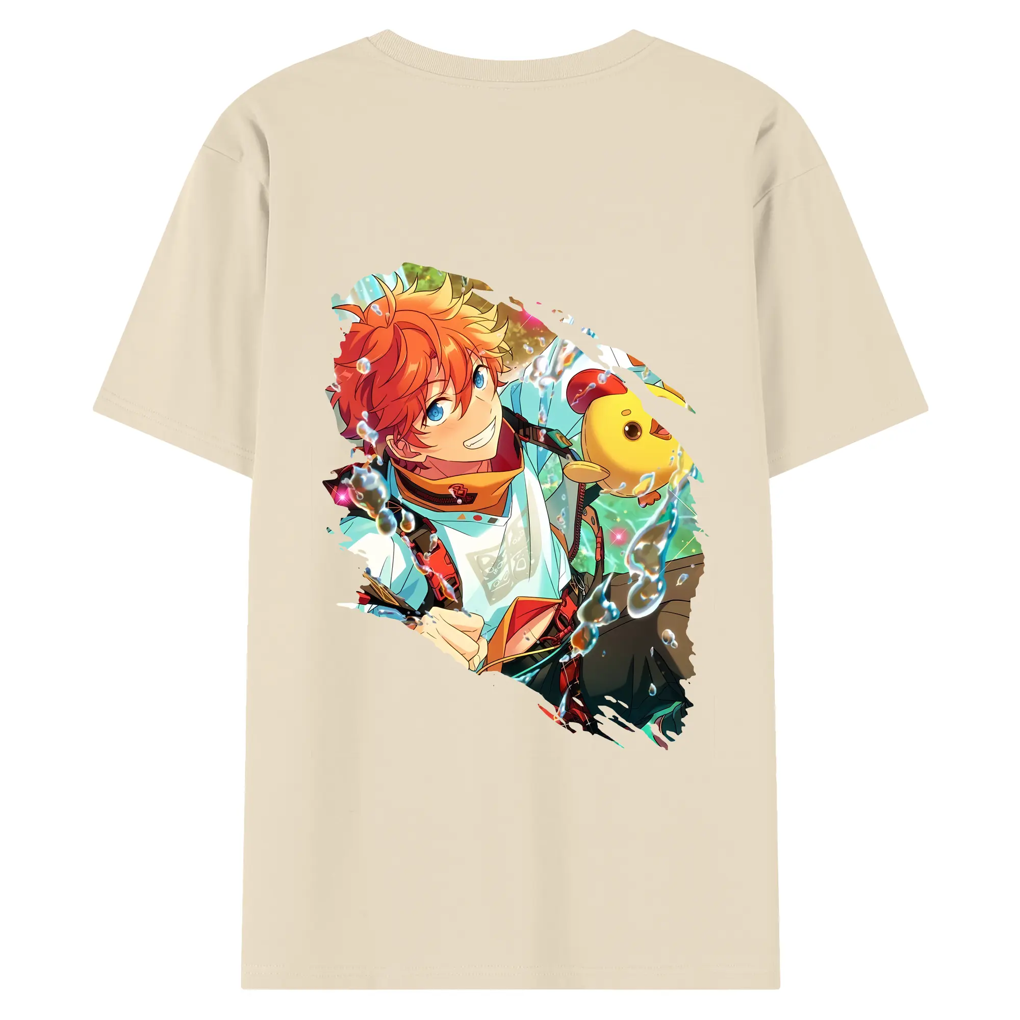 あんさん ぶる グッズ Trickstar 明星スバル - 綿100% ヴィンテージ風 半袖Tシャツ ・ 背面プリント ・ 柔らか肌触り ・ 通気性 快適 ・ スポーツ カジュアル 外出用