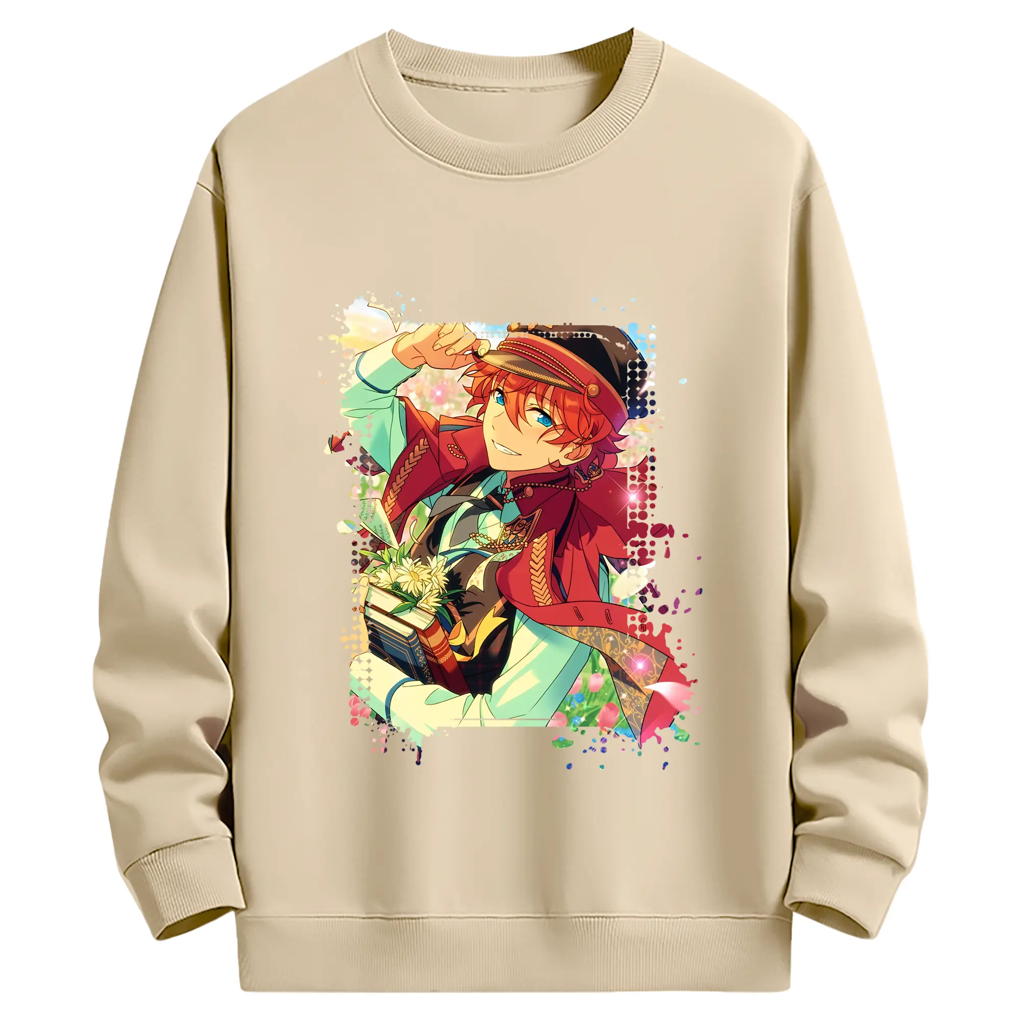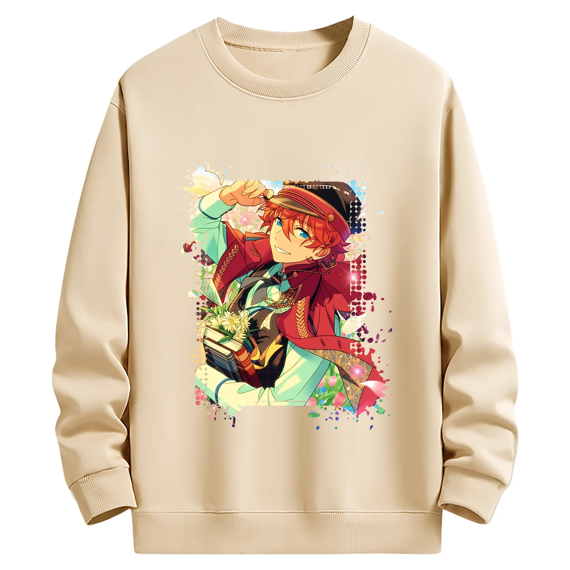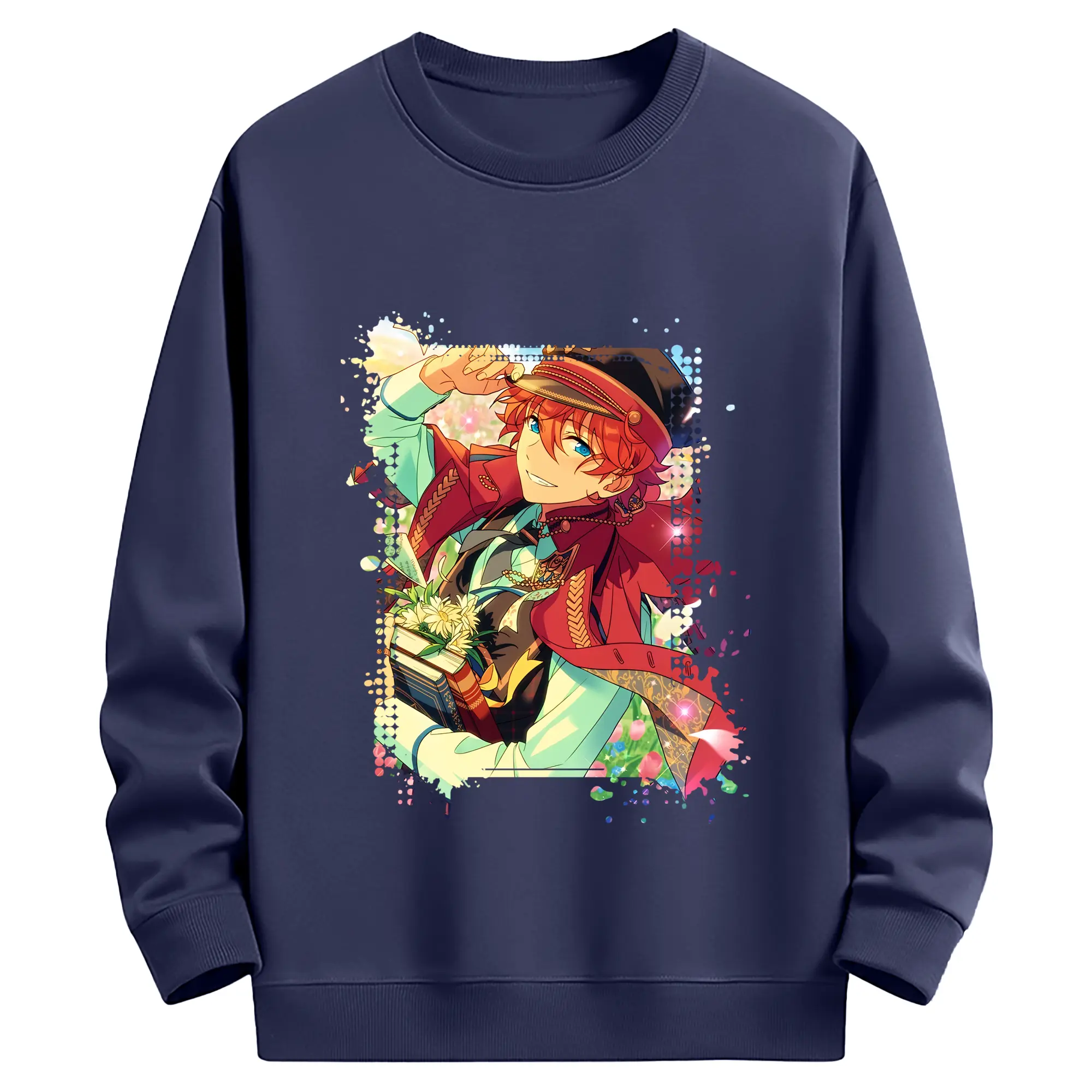 あんさん ぶる グッズ Trickstar 明星スバル - 薄手 クルーネック スウェット 裏毛260g · ポリエステル 春秋向け カジュアル 男女兼用 · トレーナー デイリー スポーツ 散歩に最適