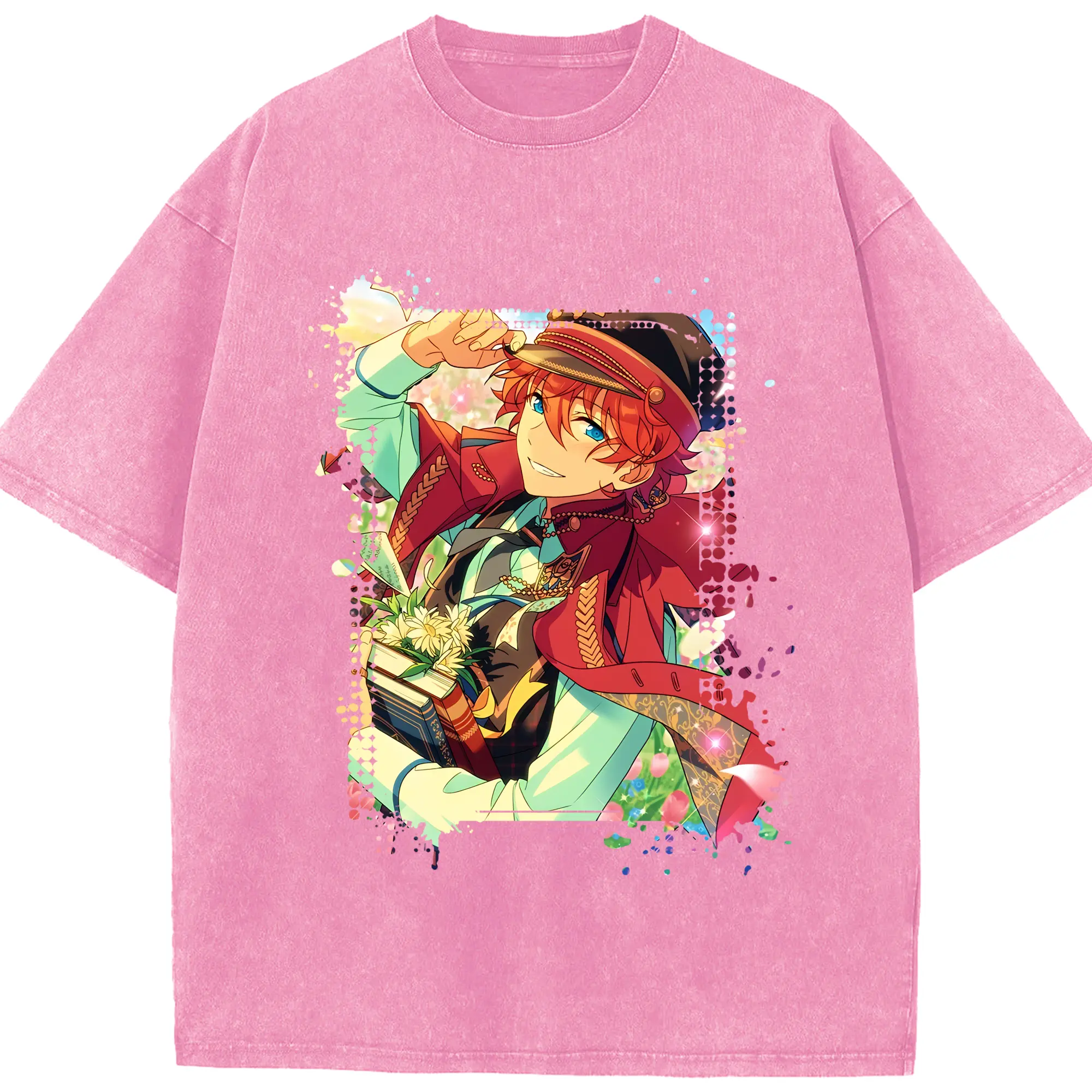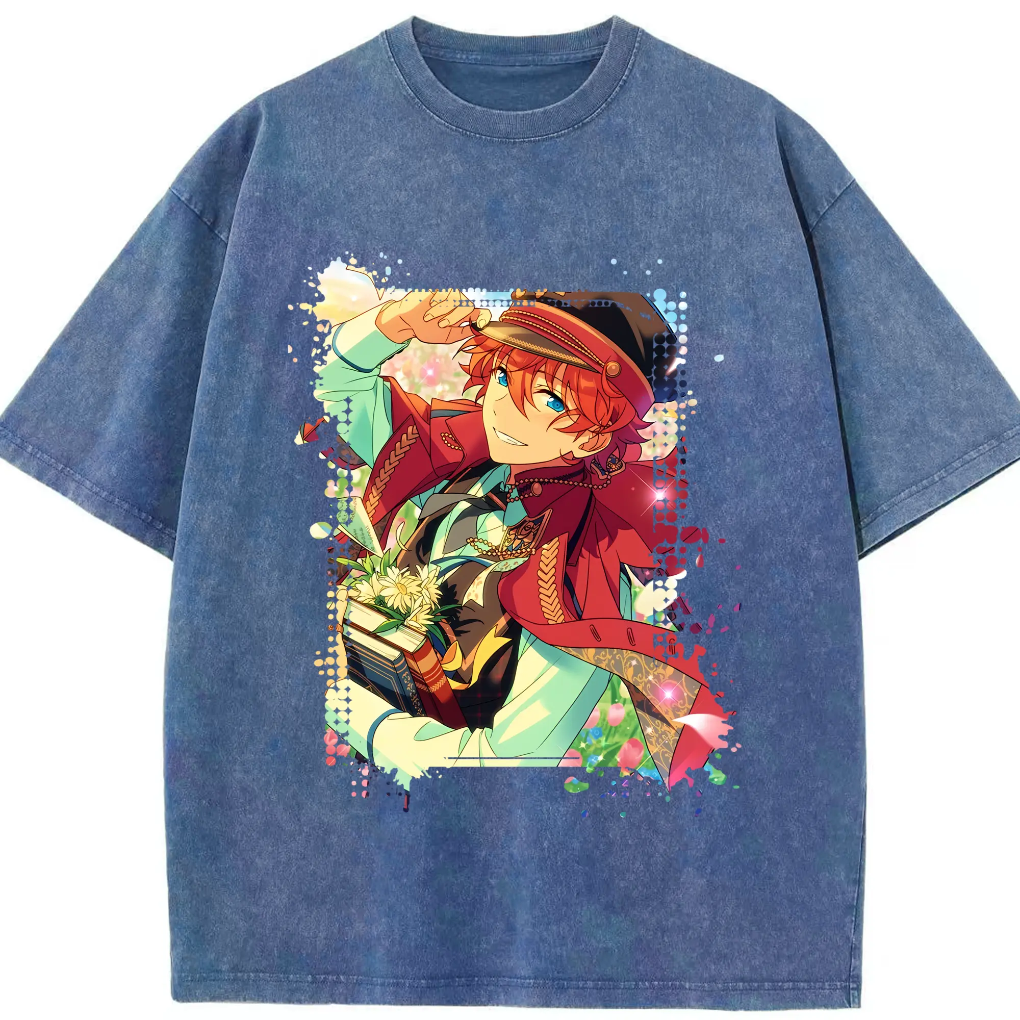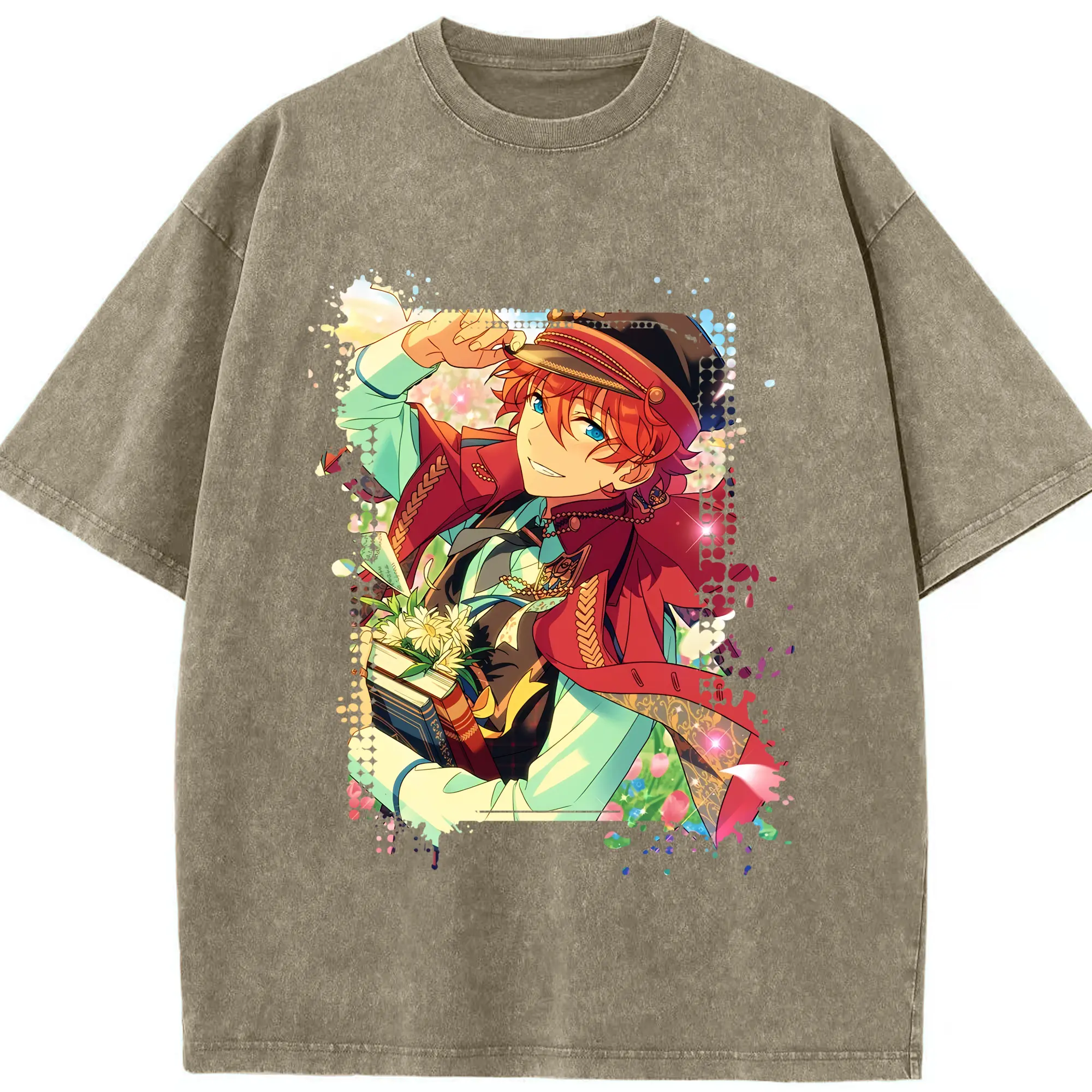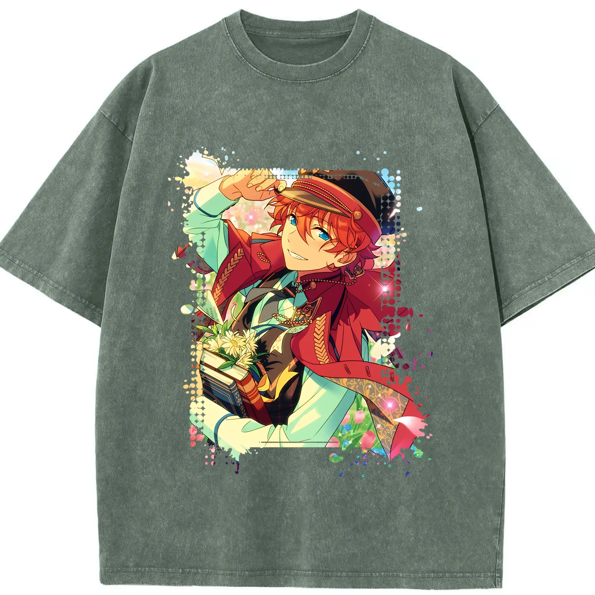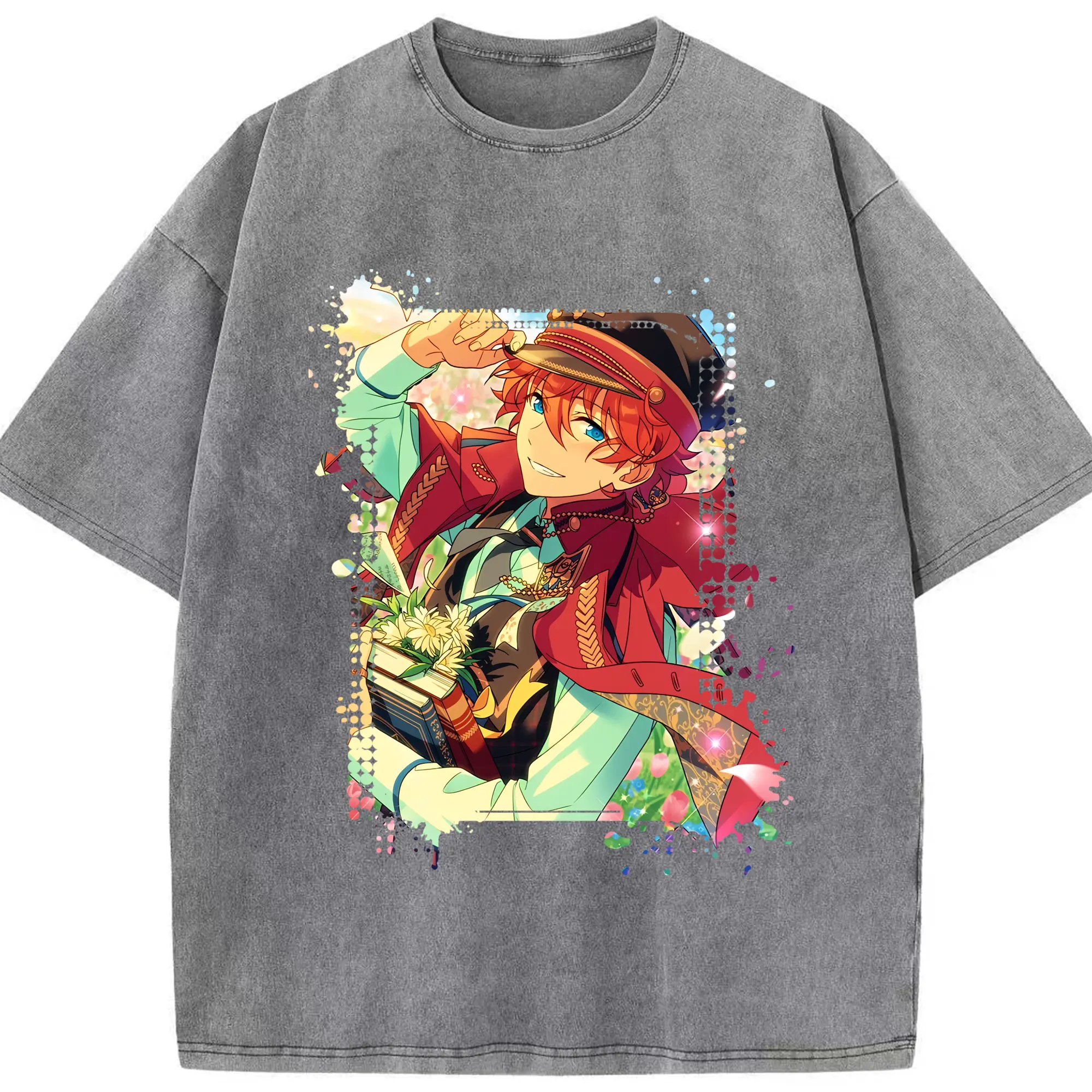 あんさん ぶる グッズ Trickstar 明星スバル - 綿100% ヴィンテージ風 半袖Tシャツ ・ 背面プリント ・ 柔らか肌触り ・ 通気性 快適 ・ スポーツ カジュアル 外出用