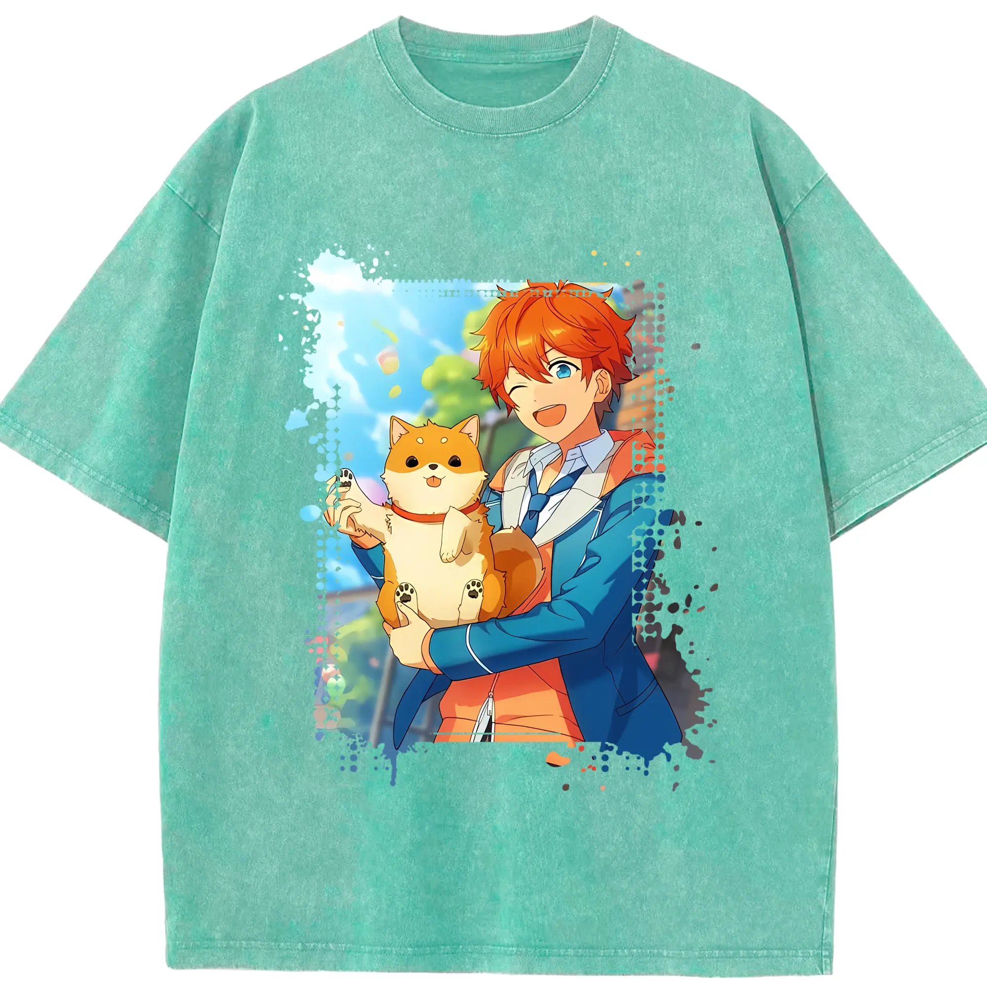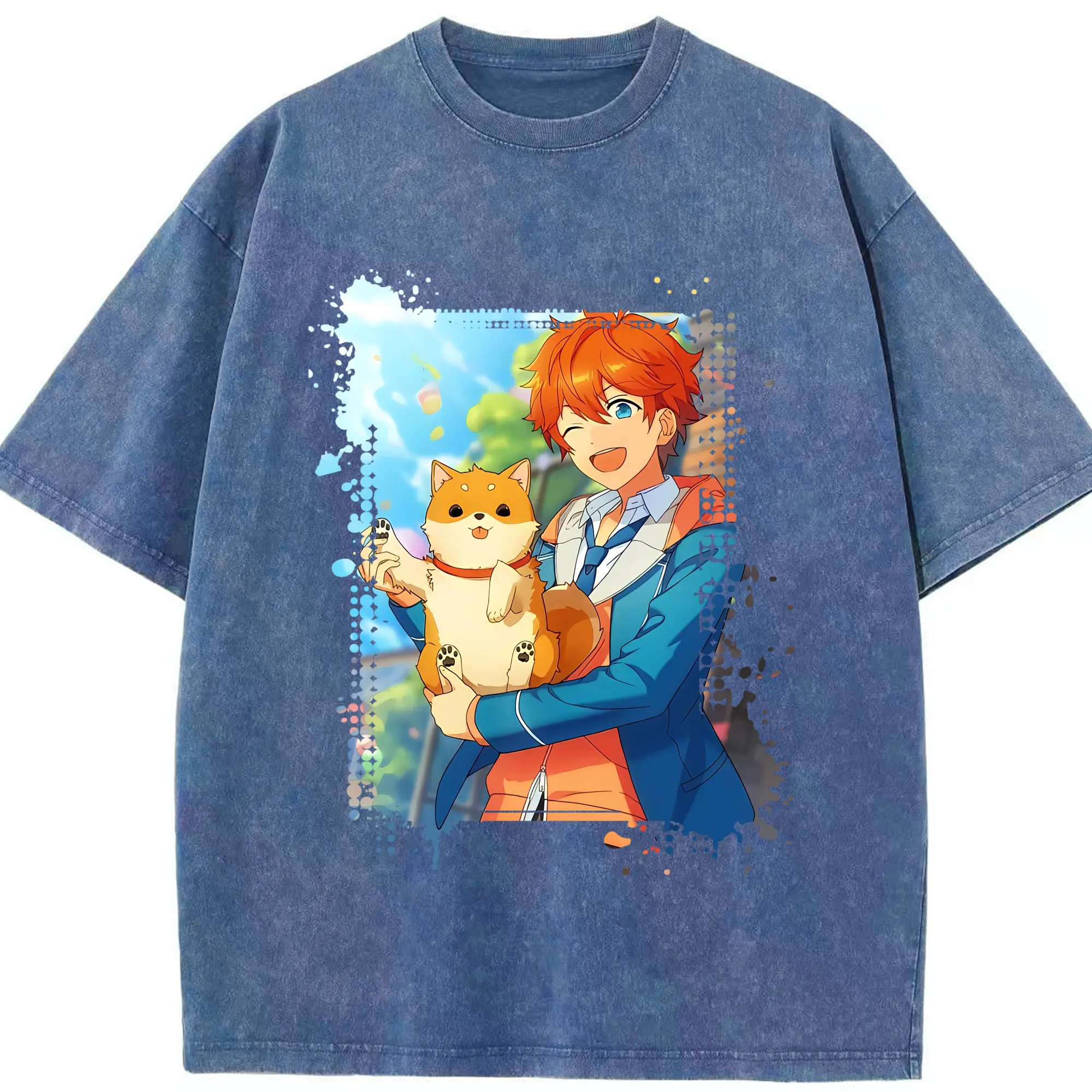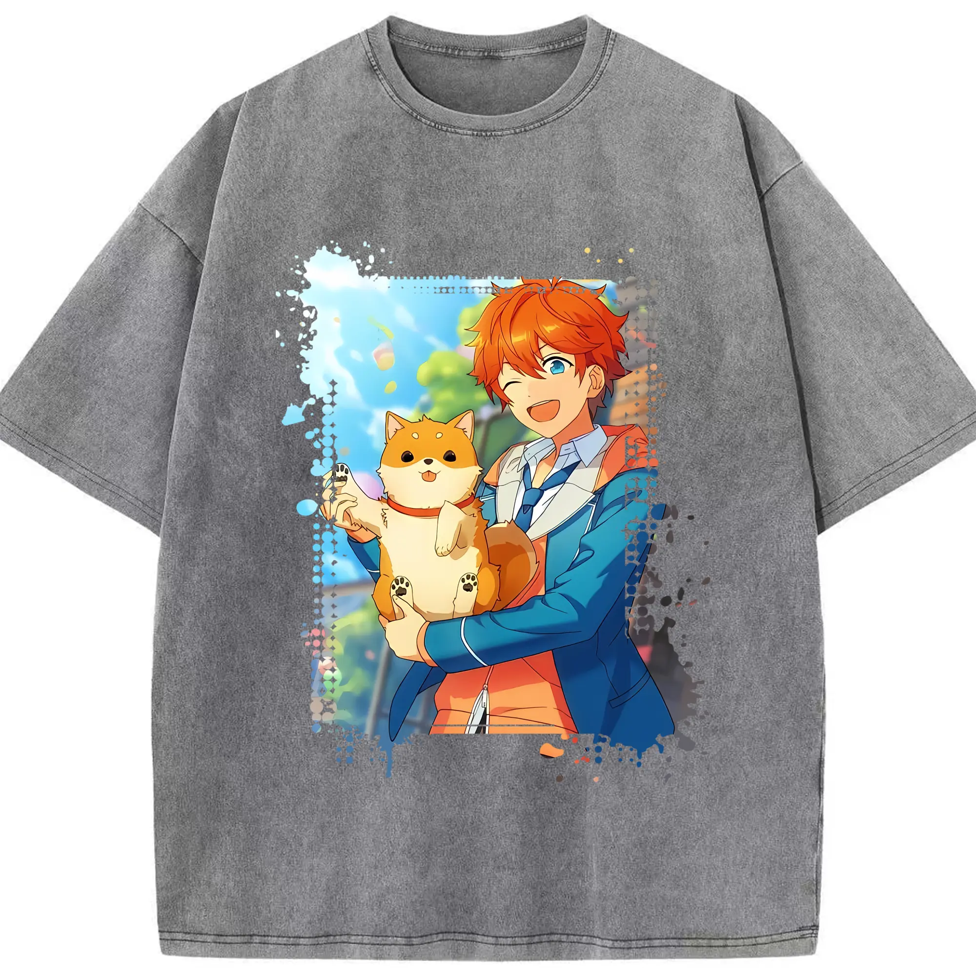 あんさん ぶる グッズ Trickstar 明星スバル - 綿100% ヴィンテージ風 半袖Tシャツ ・ 背面プリント ・ 柔らか肌触り ・ 通気性 快適 ・ スポーツ カジュアル 外出用