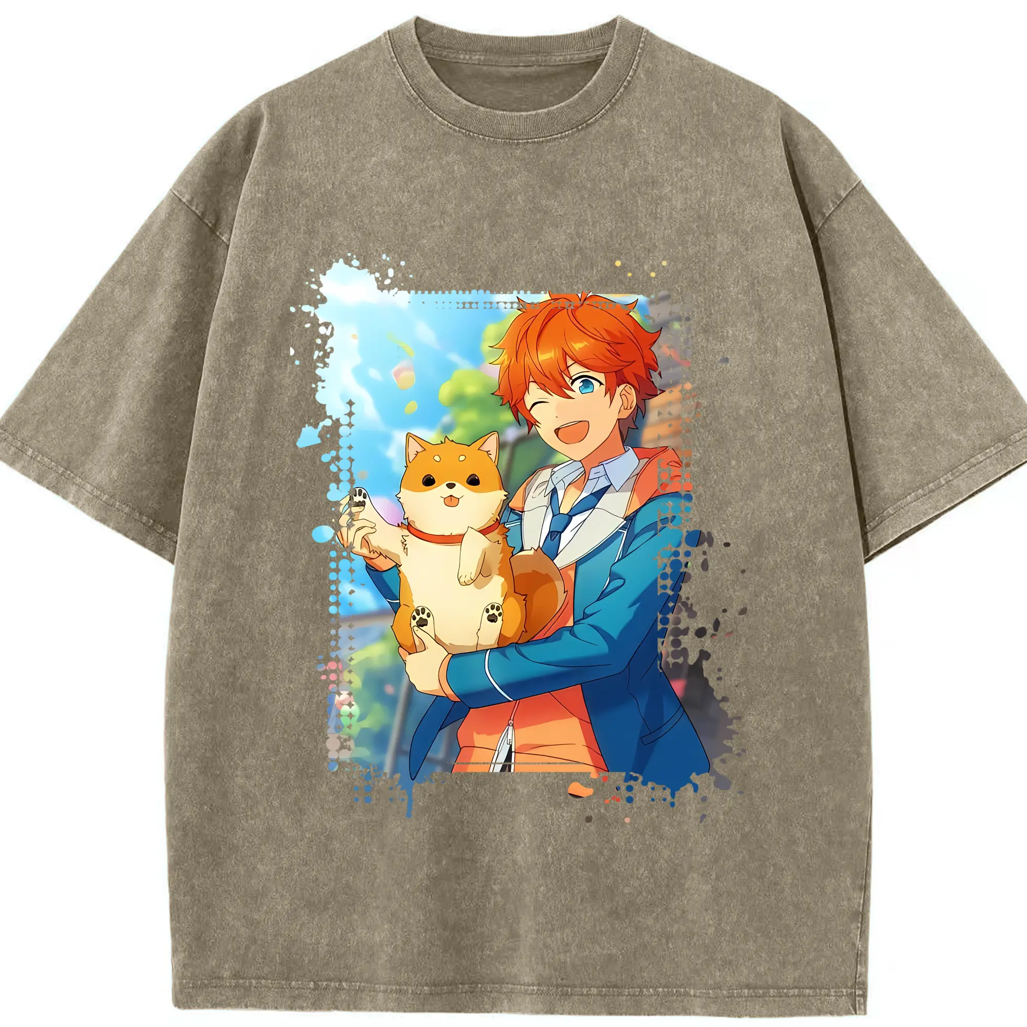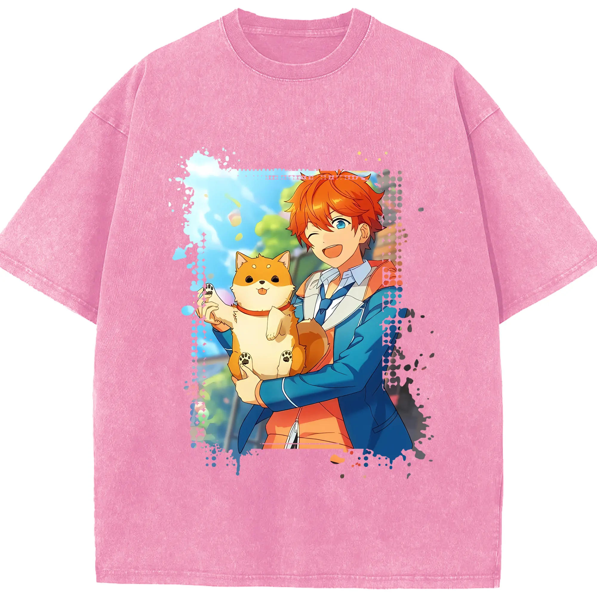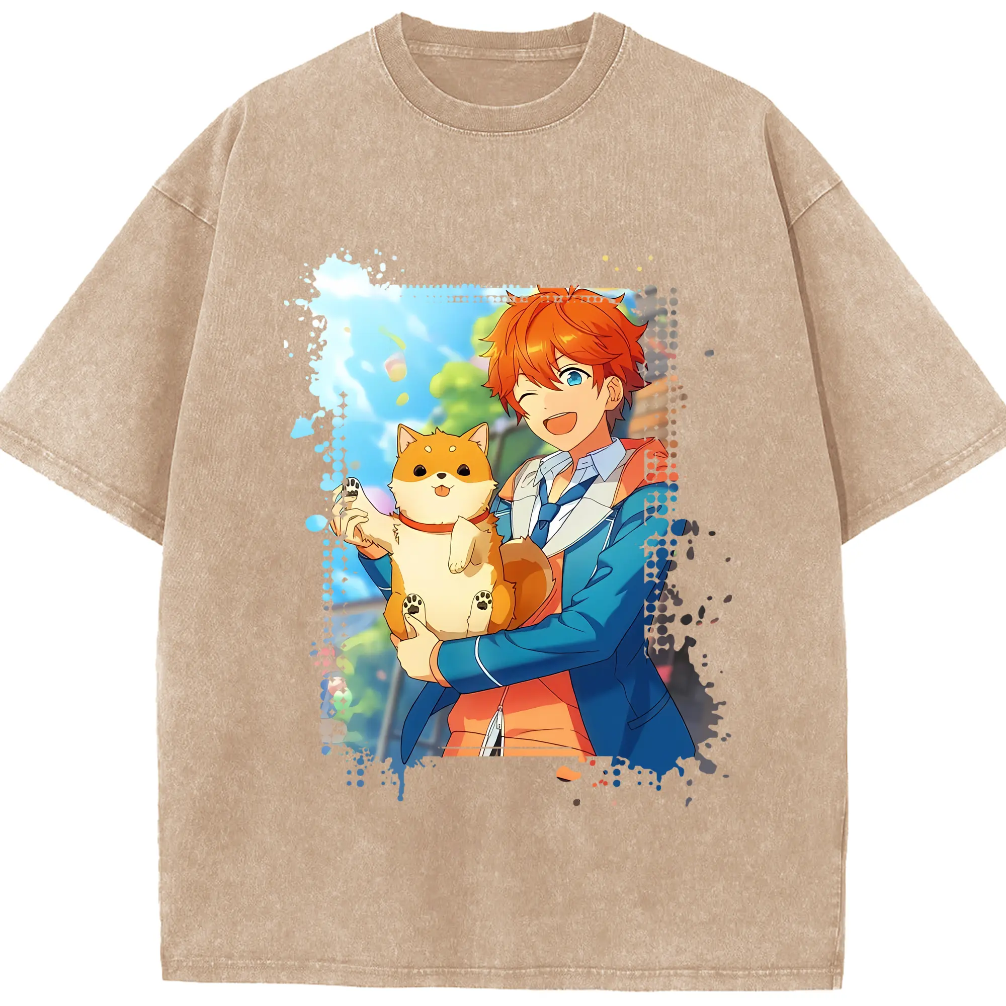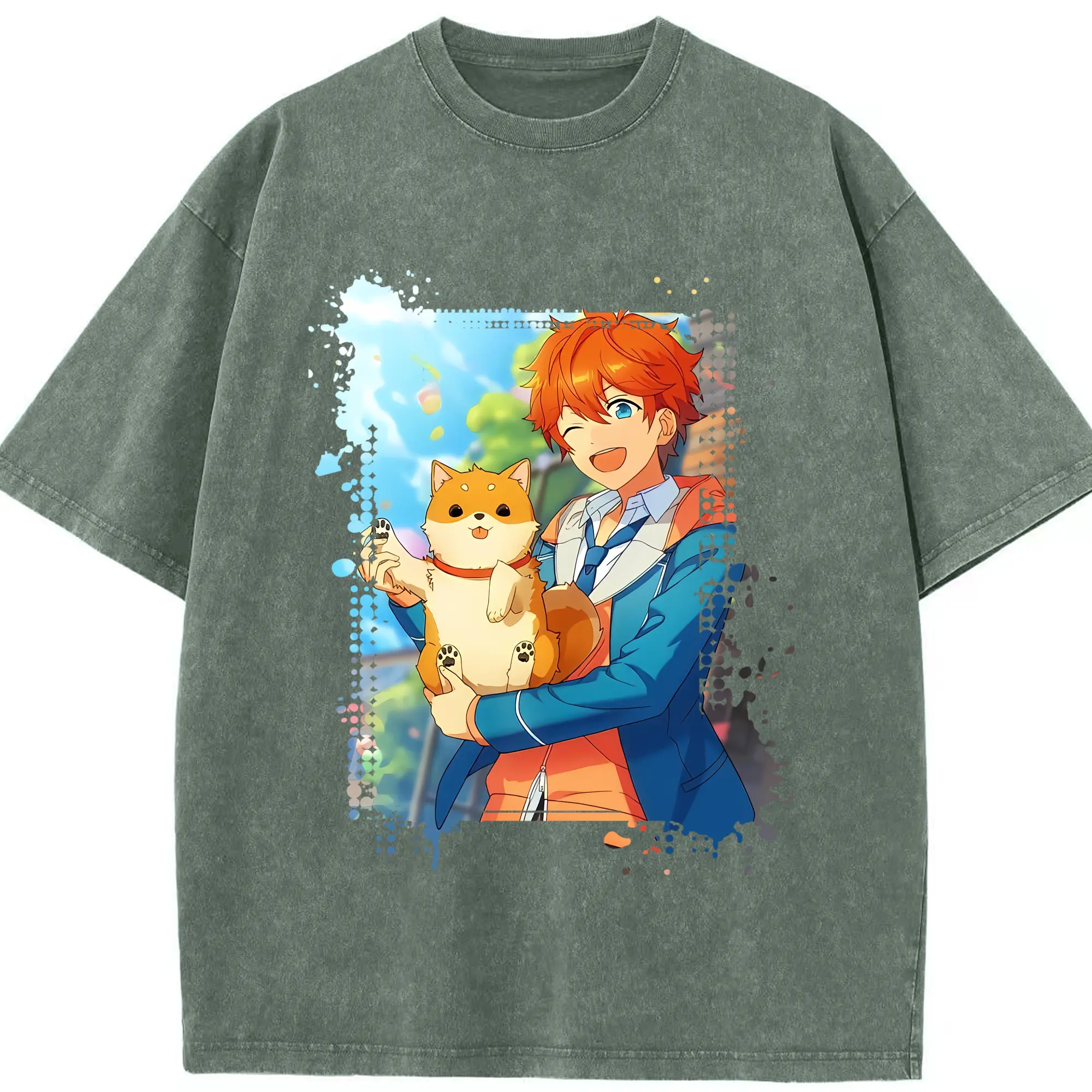 あんさん ぶる グッズ Trickstar 明星スバル - 綿100% ヴィンテージ風 半袖Tシャツ ・ 背面プリント ・ 柔らか肌触り ・ 通気性 快適 ・ スポーツ カジュアル 外出用