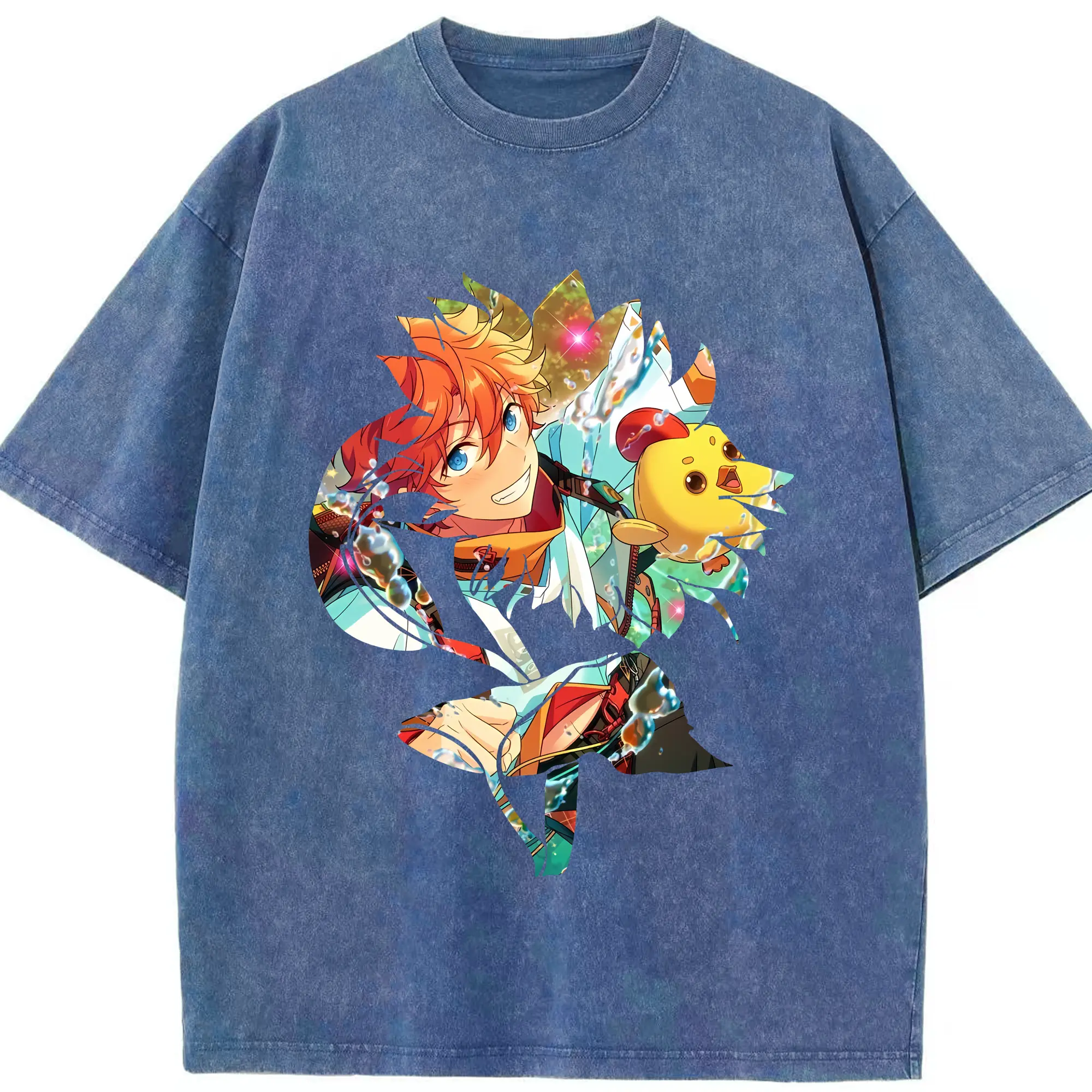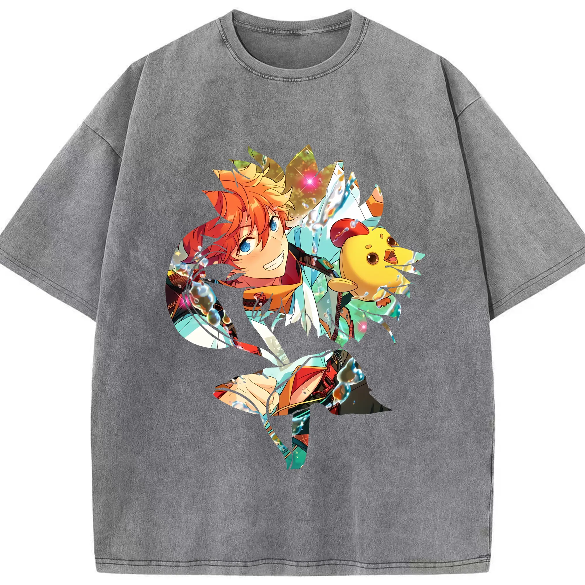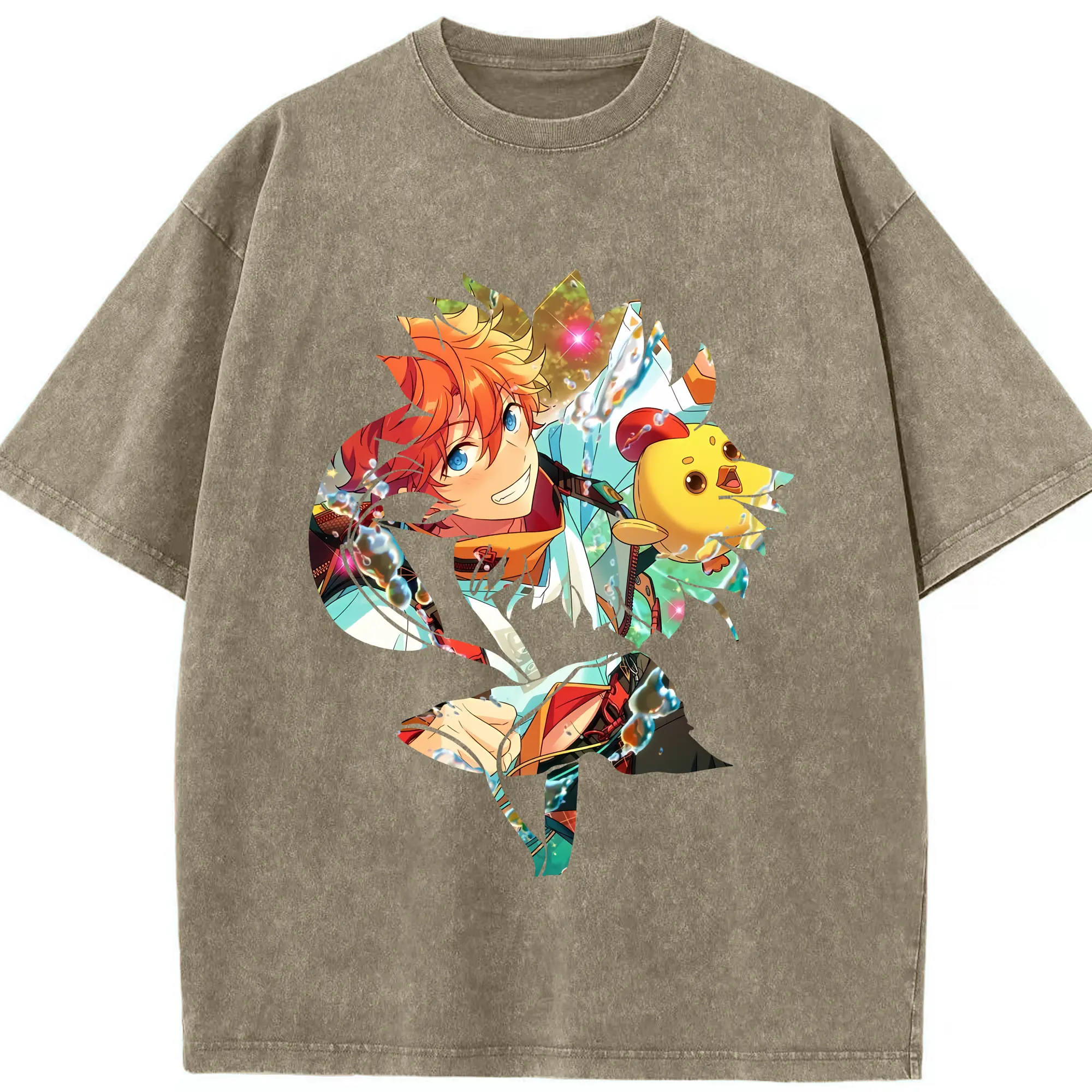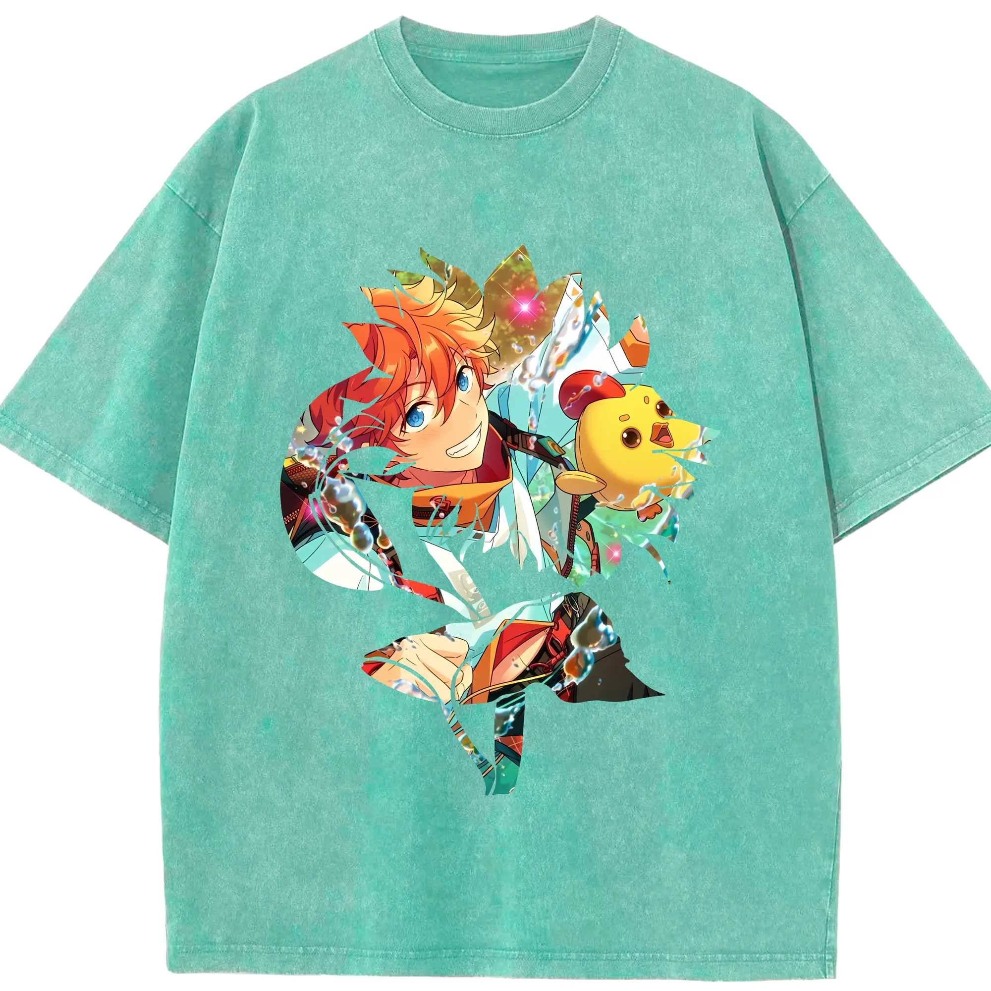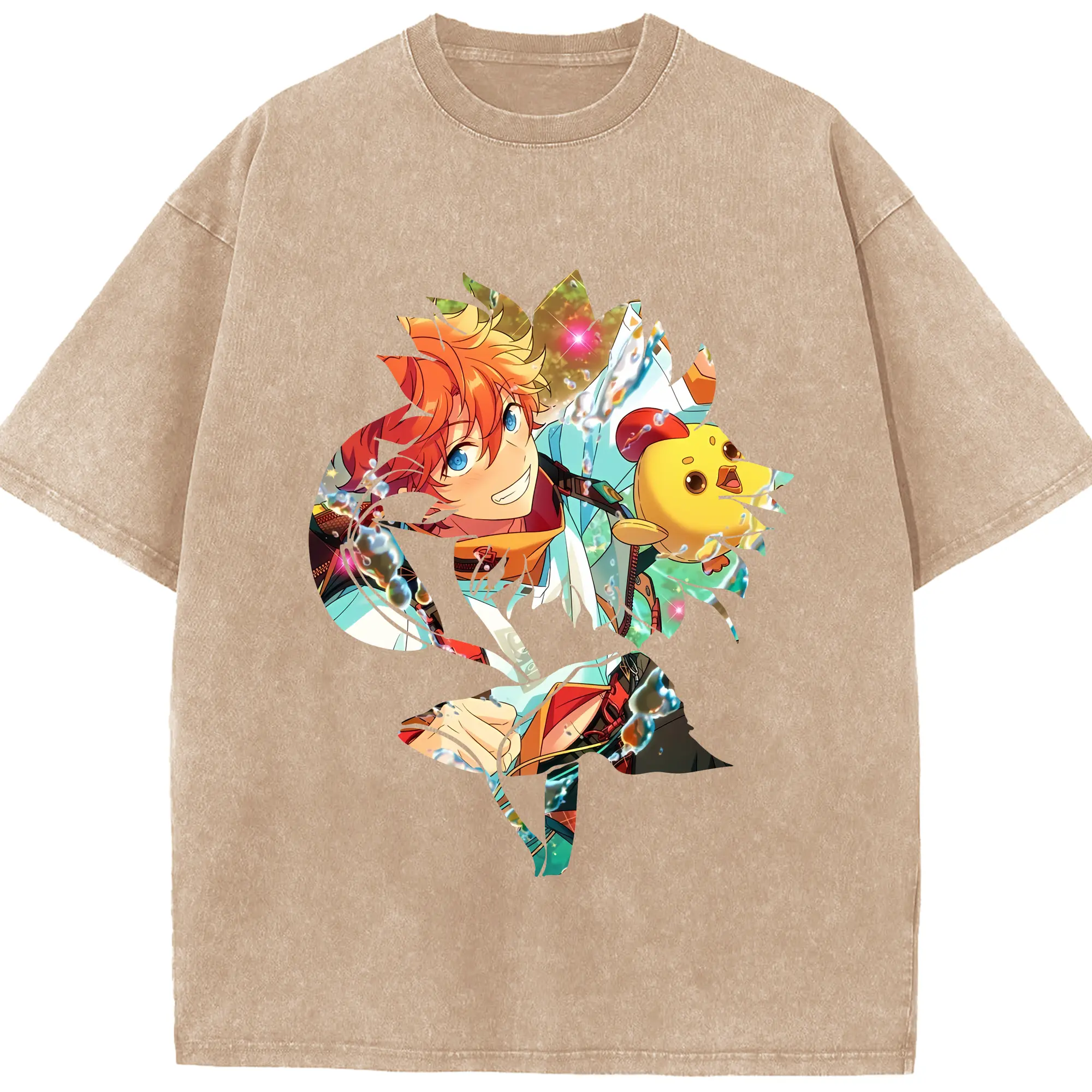 鳴潮 グッズ ショアキーパー - 綿100% ヴィンテージ風 半袖Tシャツ ・ フロントプリント ・ 柔らか肌触り ・ 通気性 快適 ・ スポーツ カジュアル 外出用