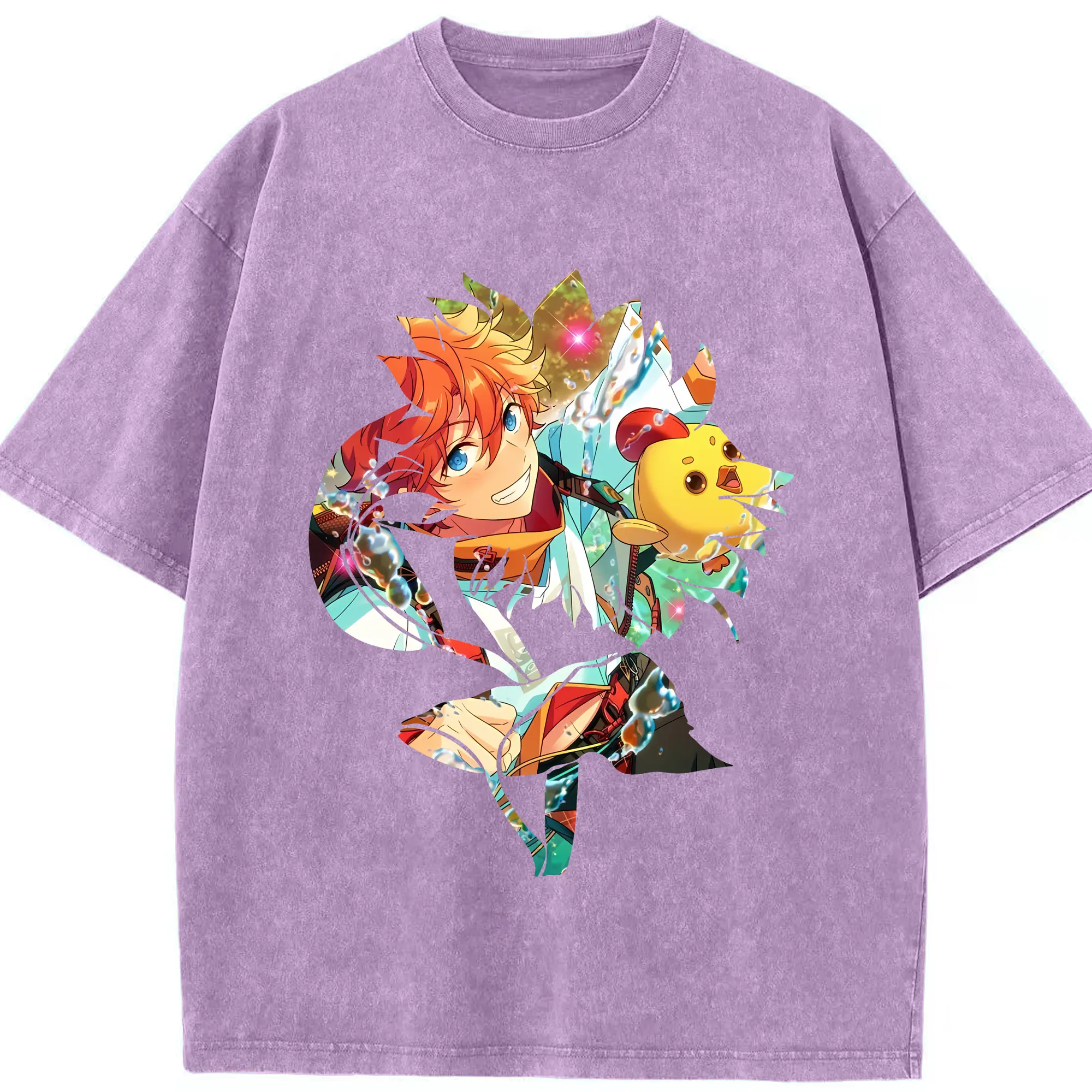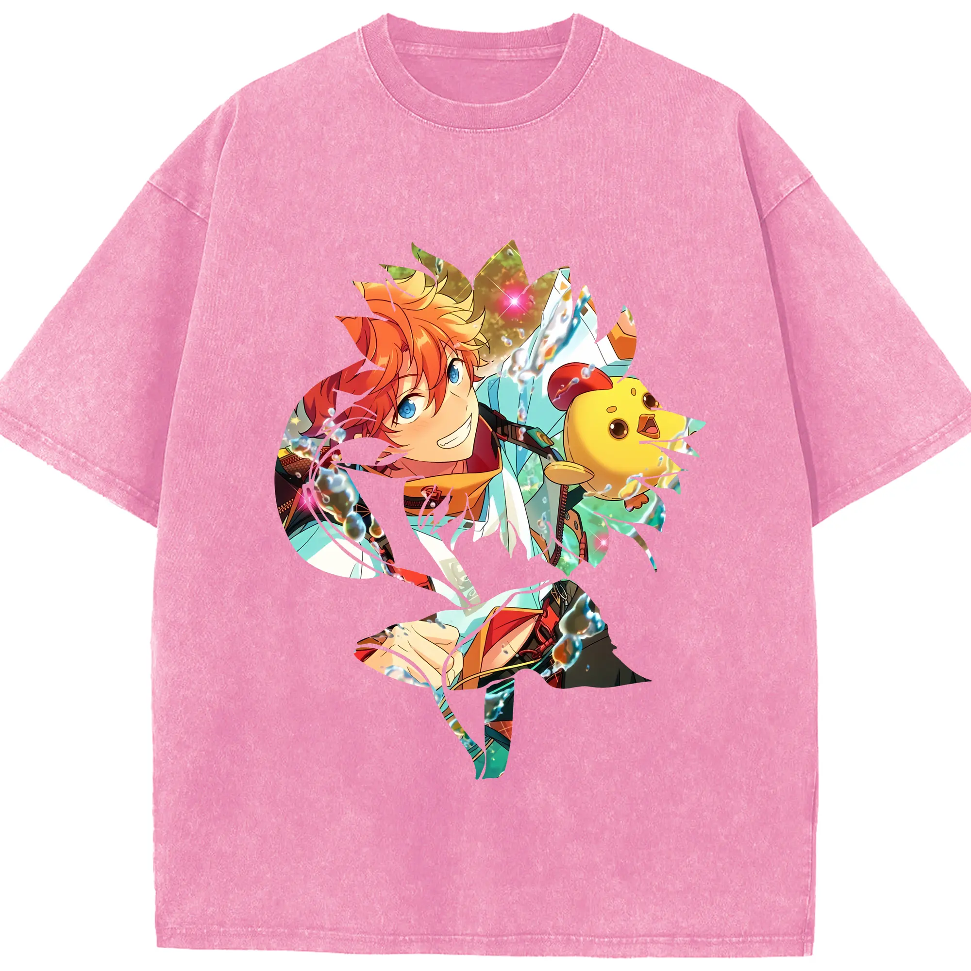 あんさん ぶる グッズ Trickstar 明星スバル - 綿100% ヴィンテージ風 半袖Tシャツ ・ 背面プリント ・ 柔らか肌触り ・ 通気性 快適 ・ スポーツ カジュアル 外出用