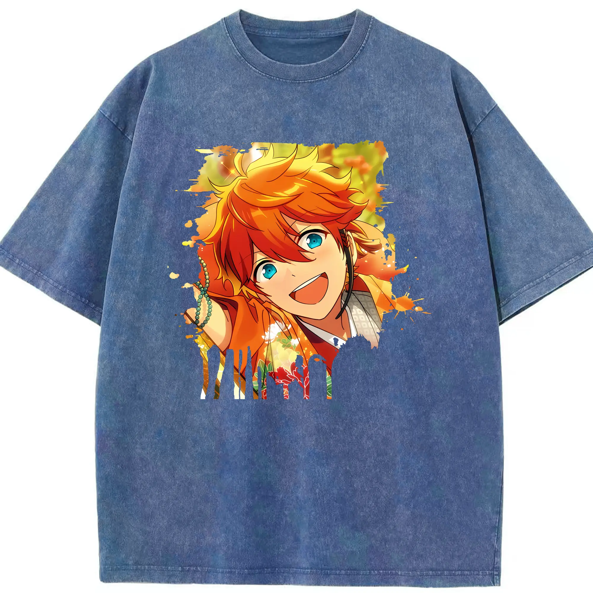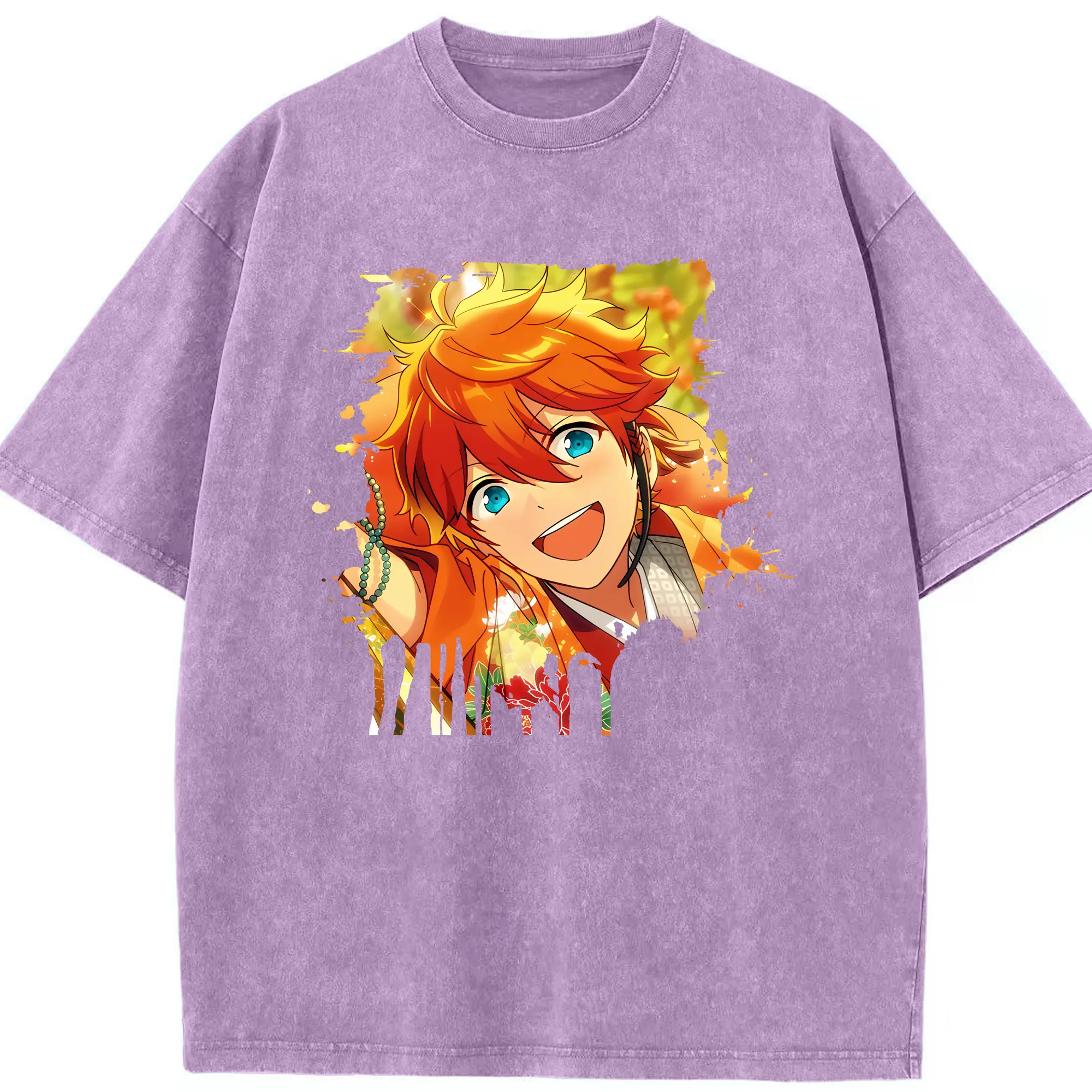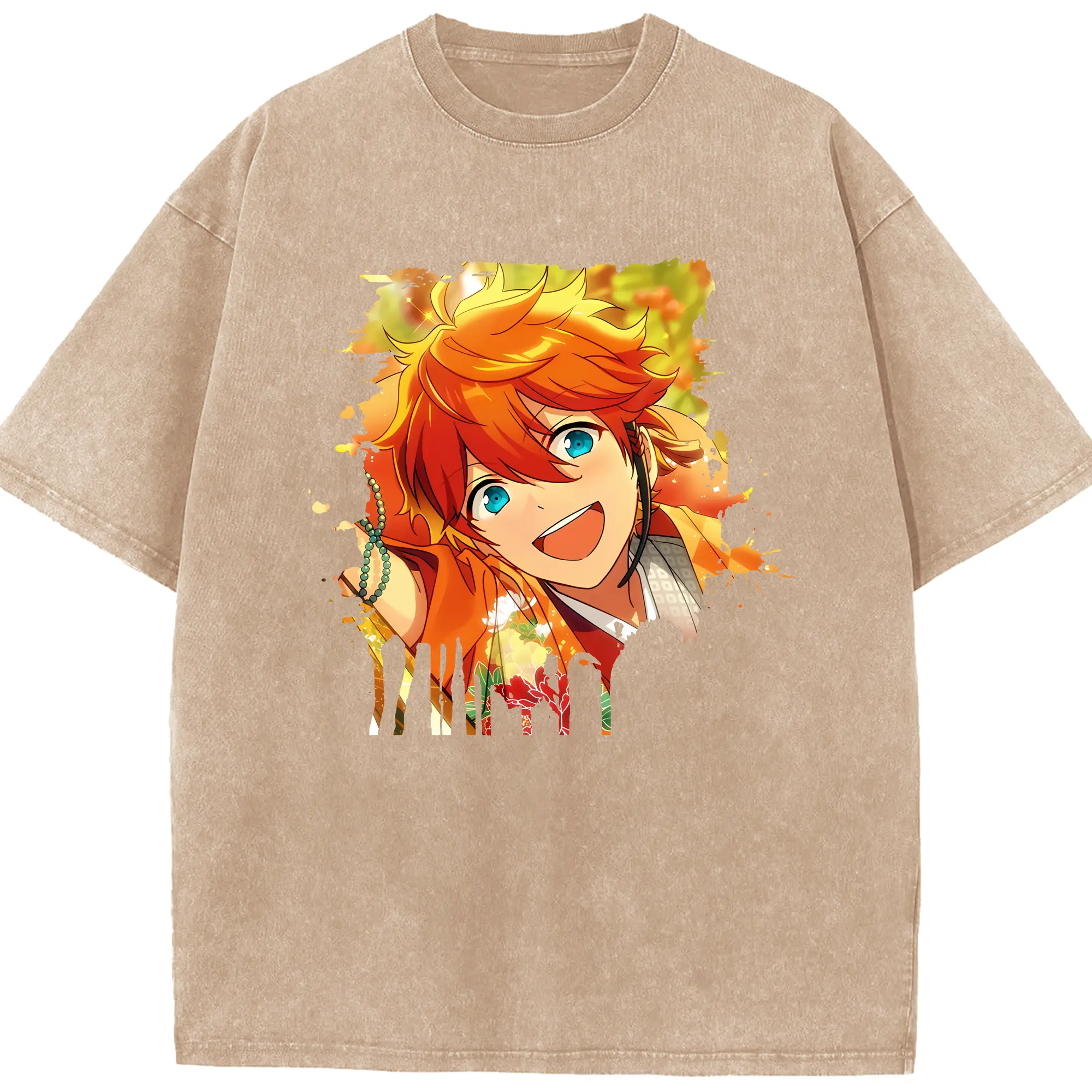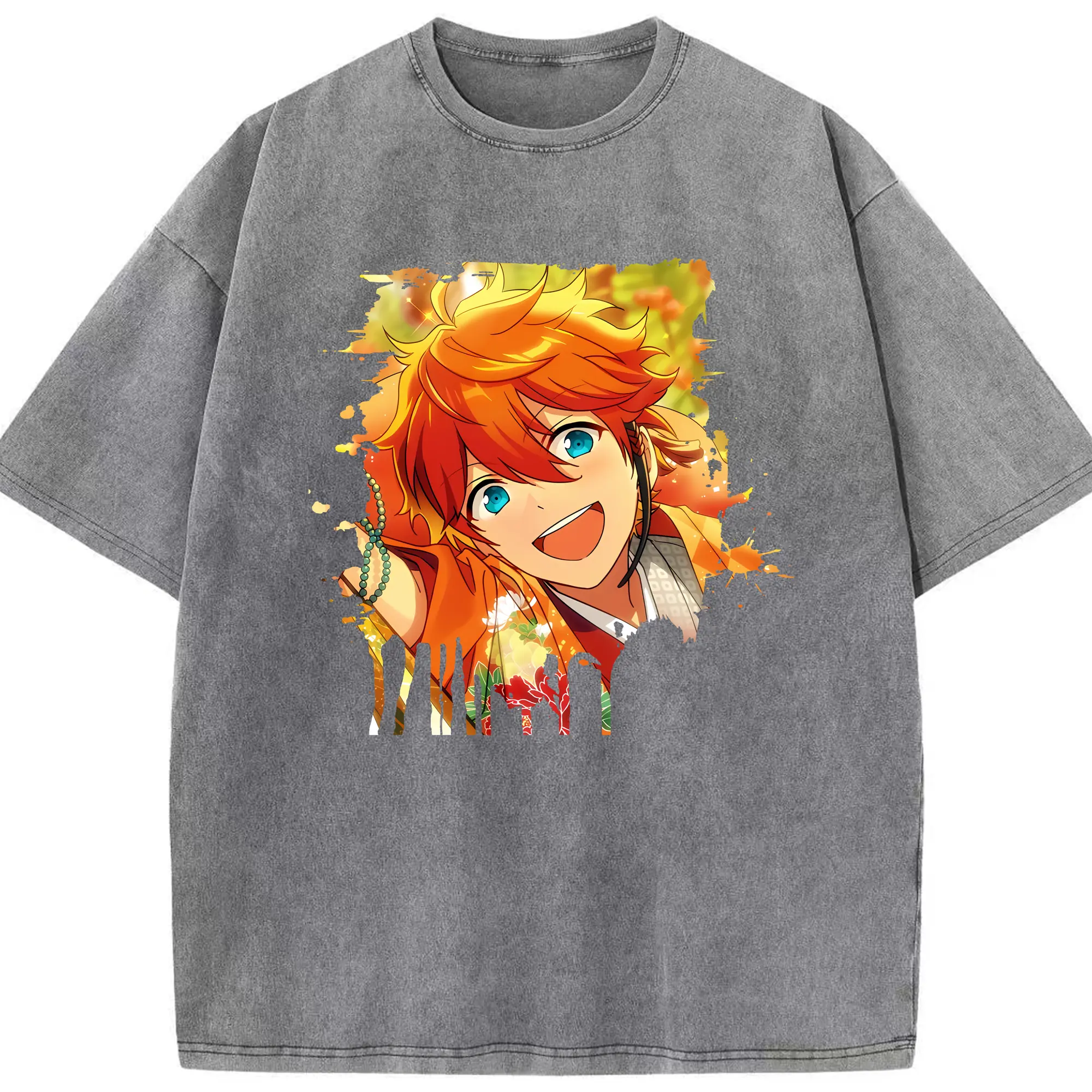 あんさん ぶる グッズ 流星隊 守沢千秋 - 綿100% ヴィンテージ風 半袖Tシャツ ・ フロントプリント ・ 柔らか肌触り ・ 通気性 快適 ・ スポーツ カジュアル 外出用