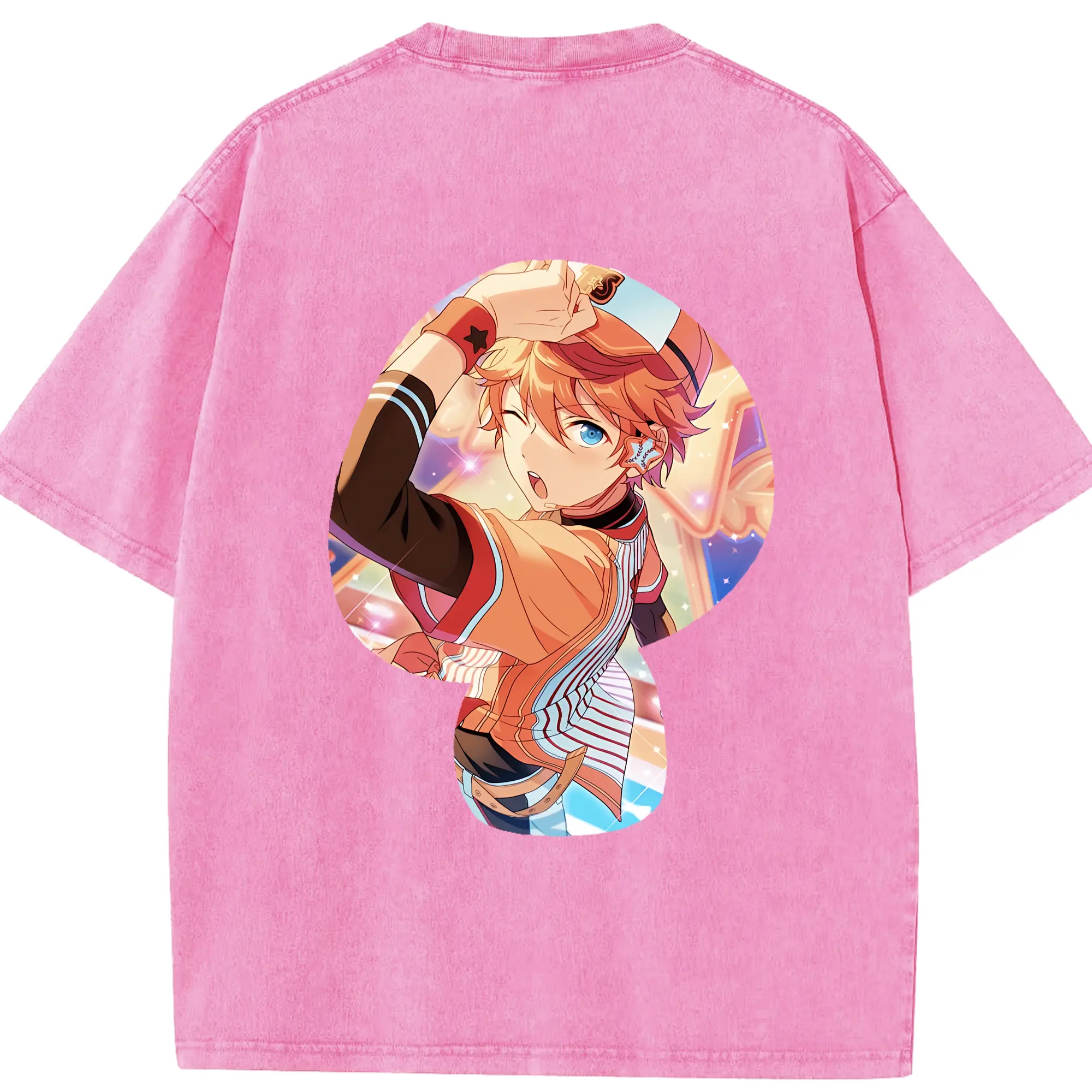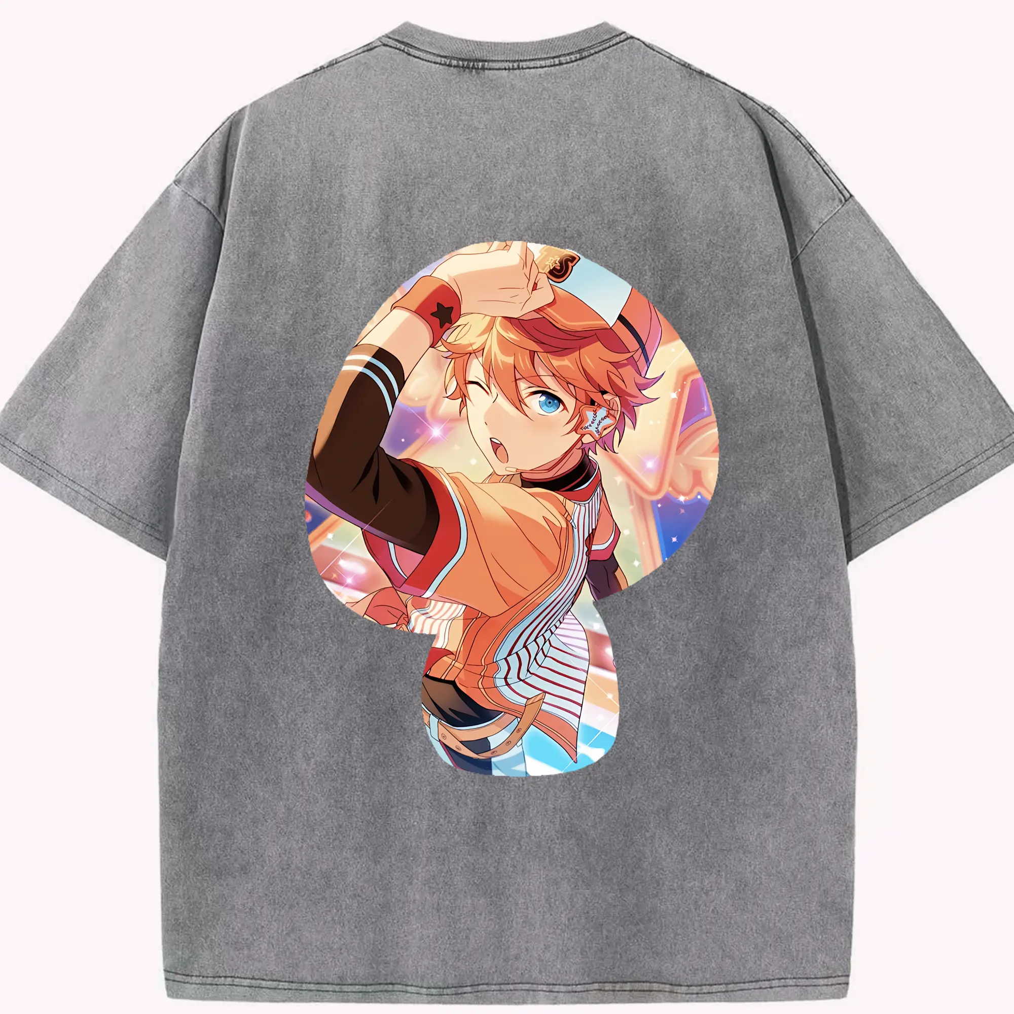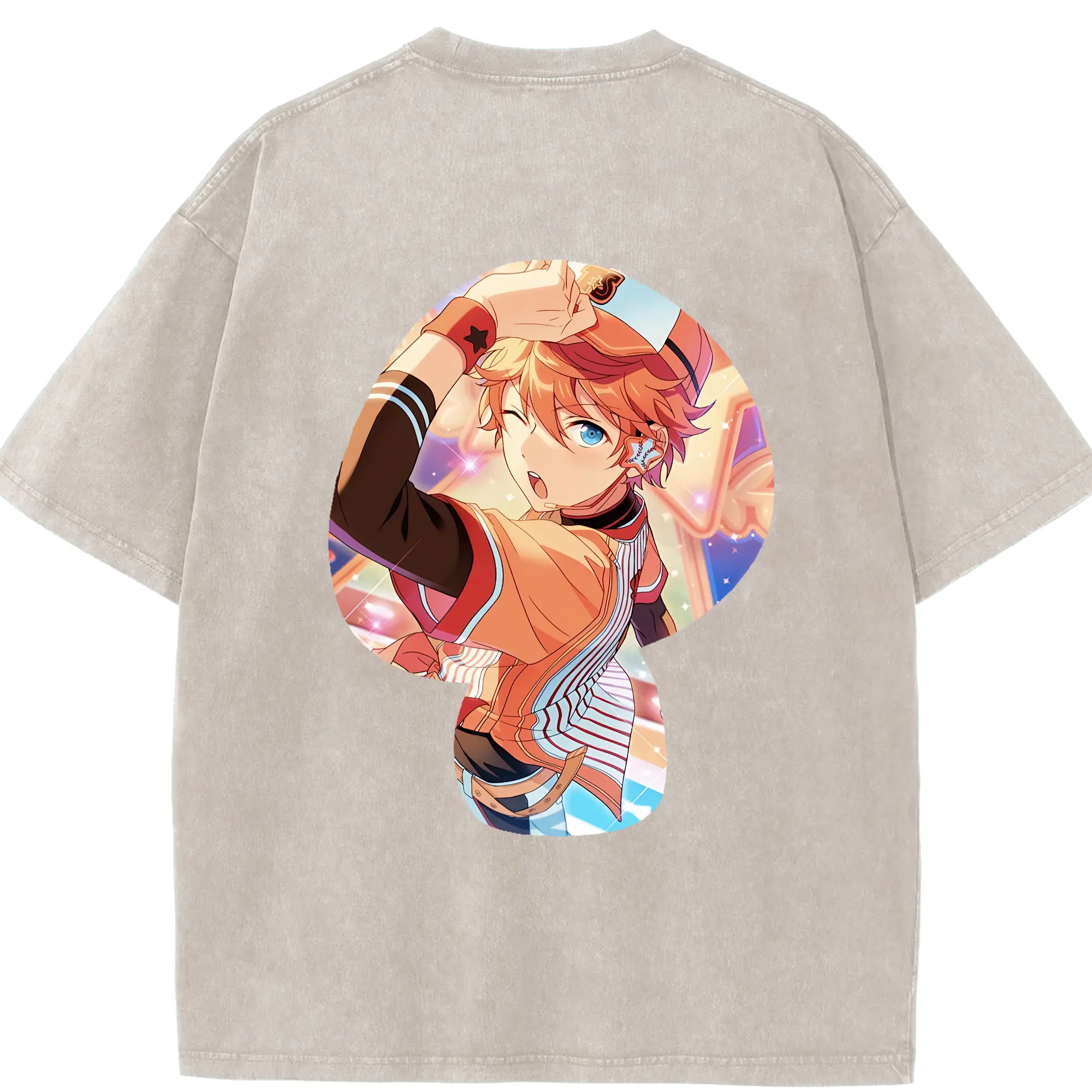 あんさん ぶる グッズ Trickstar 明星スバル - 綿100% ヴィンテージ風 半袖Tシャツ ・ フロントプリント ・ 柔らか肌触り ・ 通気性 快適 ・ スポーツ カジュアル 外出用