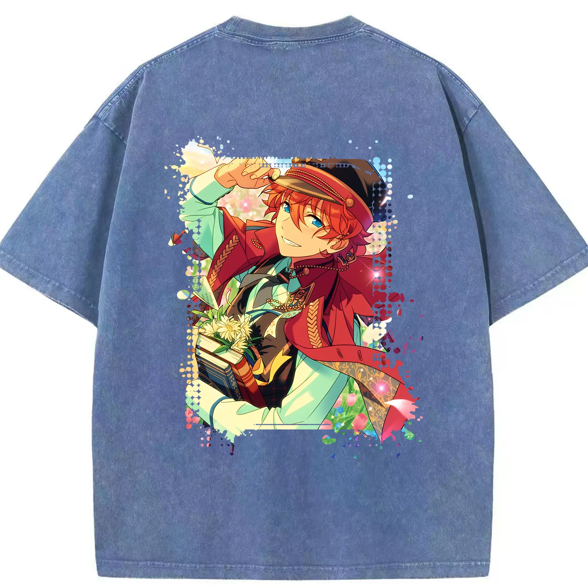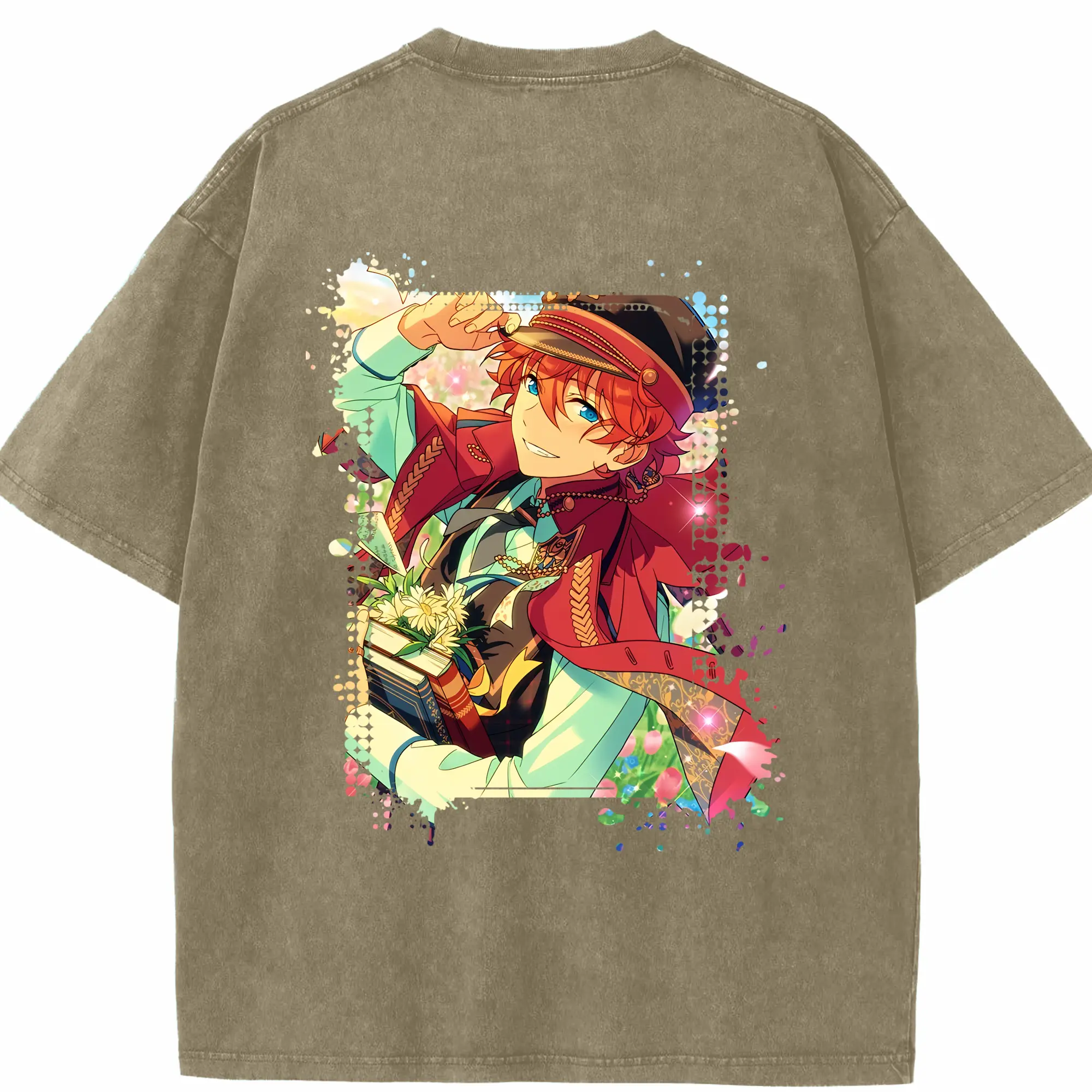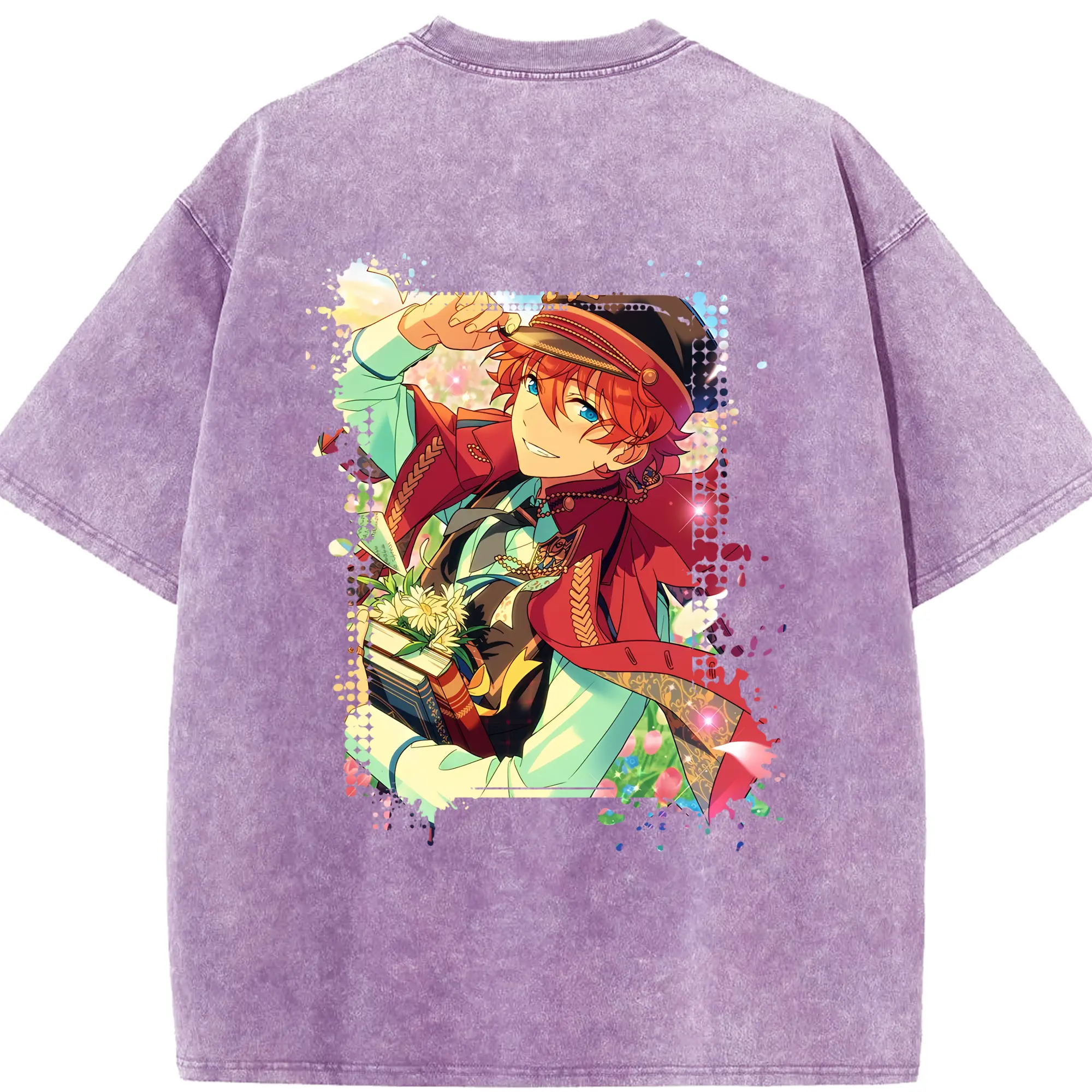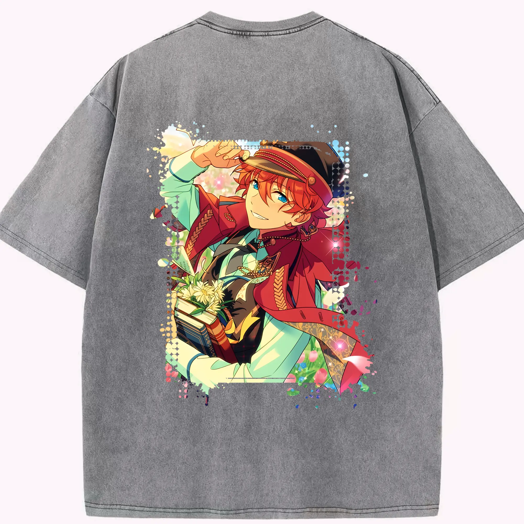 あんさん ぶる グッズ Trickstar 明星スバル - 綿100% ヴィンテージ風 半袖Tシャツ ・ フロントプリント ・ 柔らか肌触り ・ 通気性 快適 ・ スポーツ カジュアル 外出用