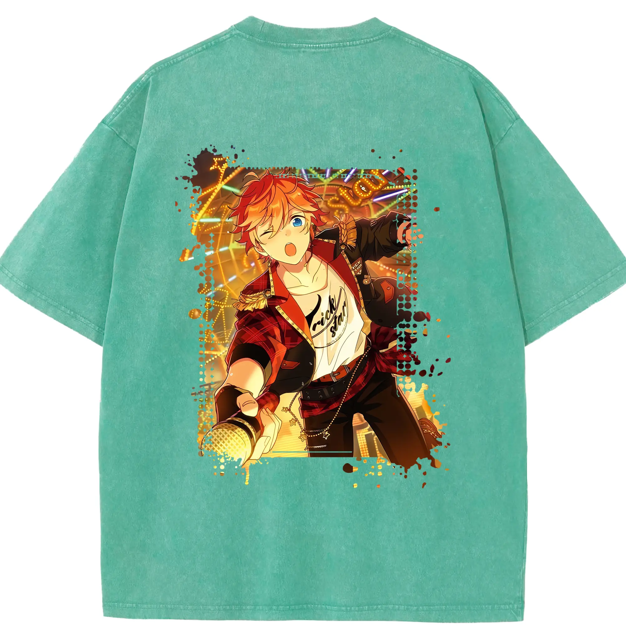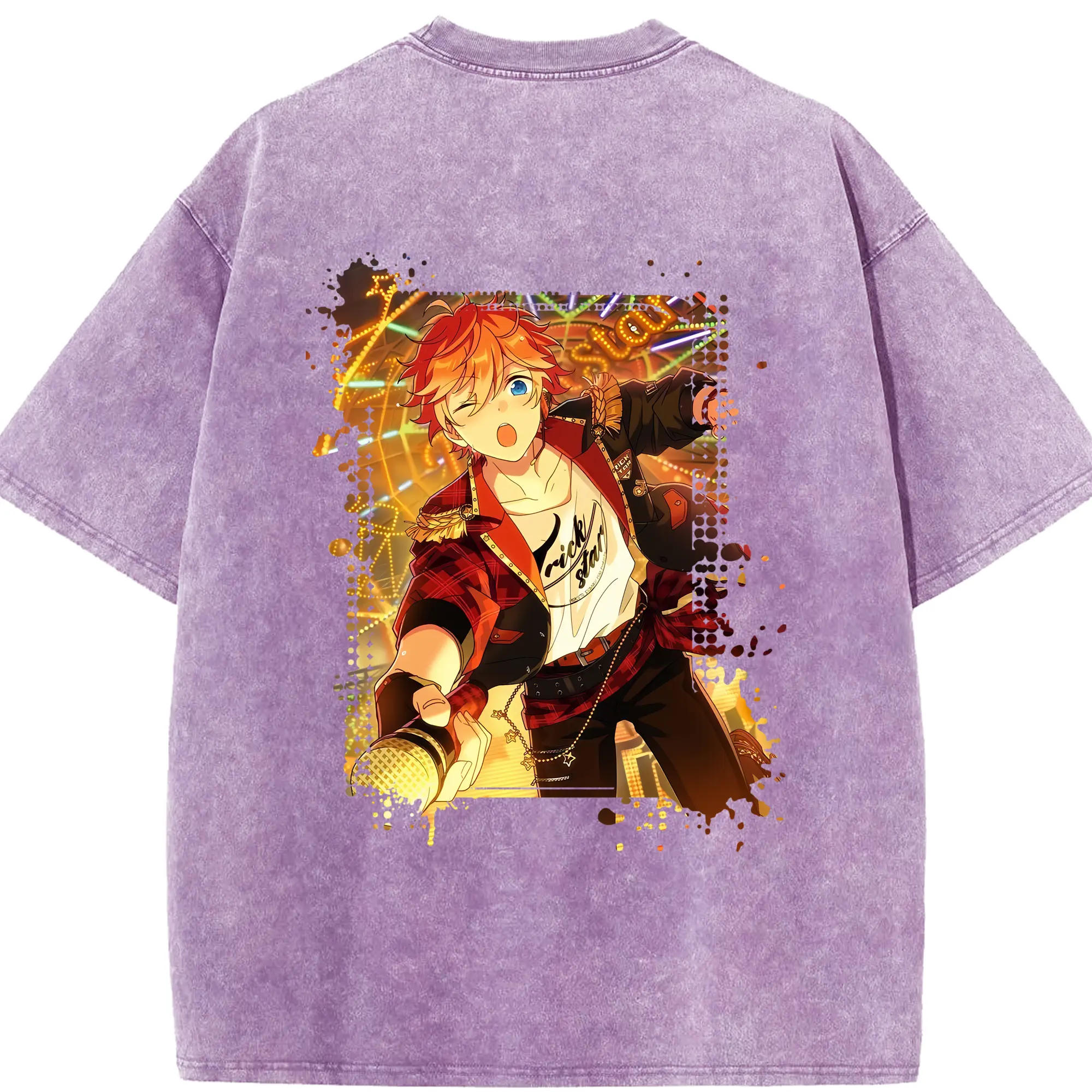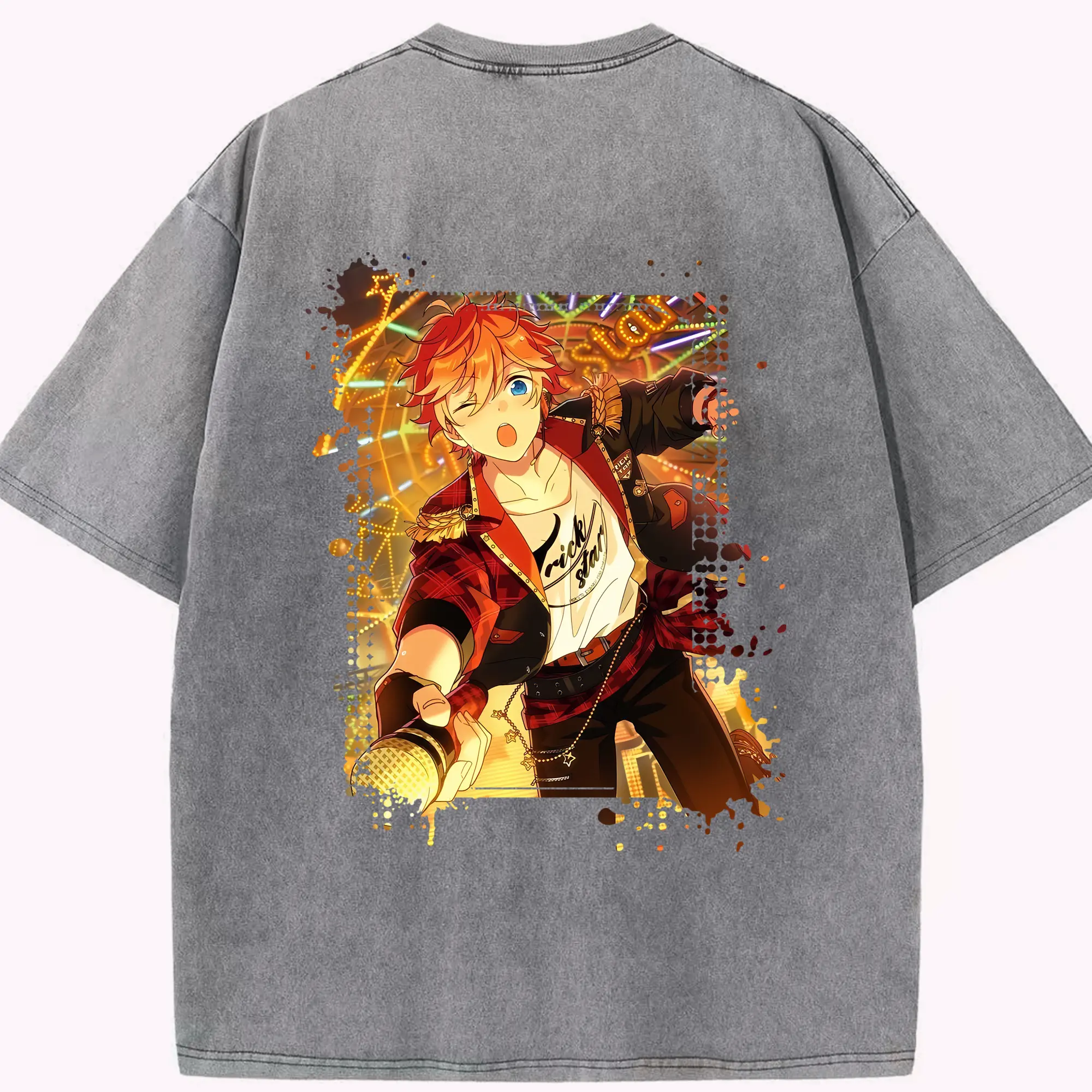 あんさん ぶる グッズ Trickstar 明星スバル - 綿100% ヴィンテージ風 半袖Tシャツ ・ フロントプリント ・ 柔らか肌触り ・ 通気性 快適 ・ スポーツ カジュアル 外出用