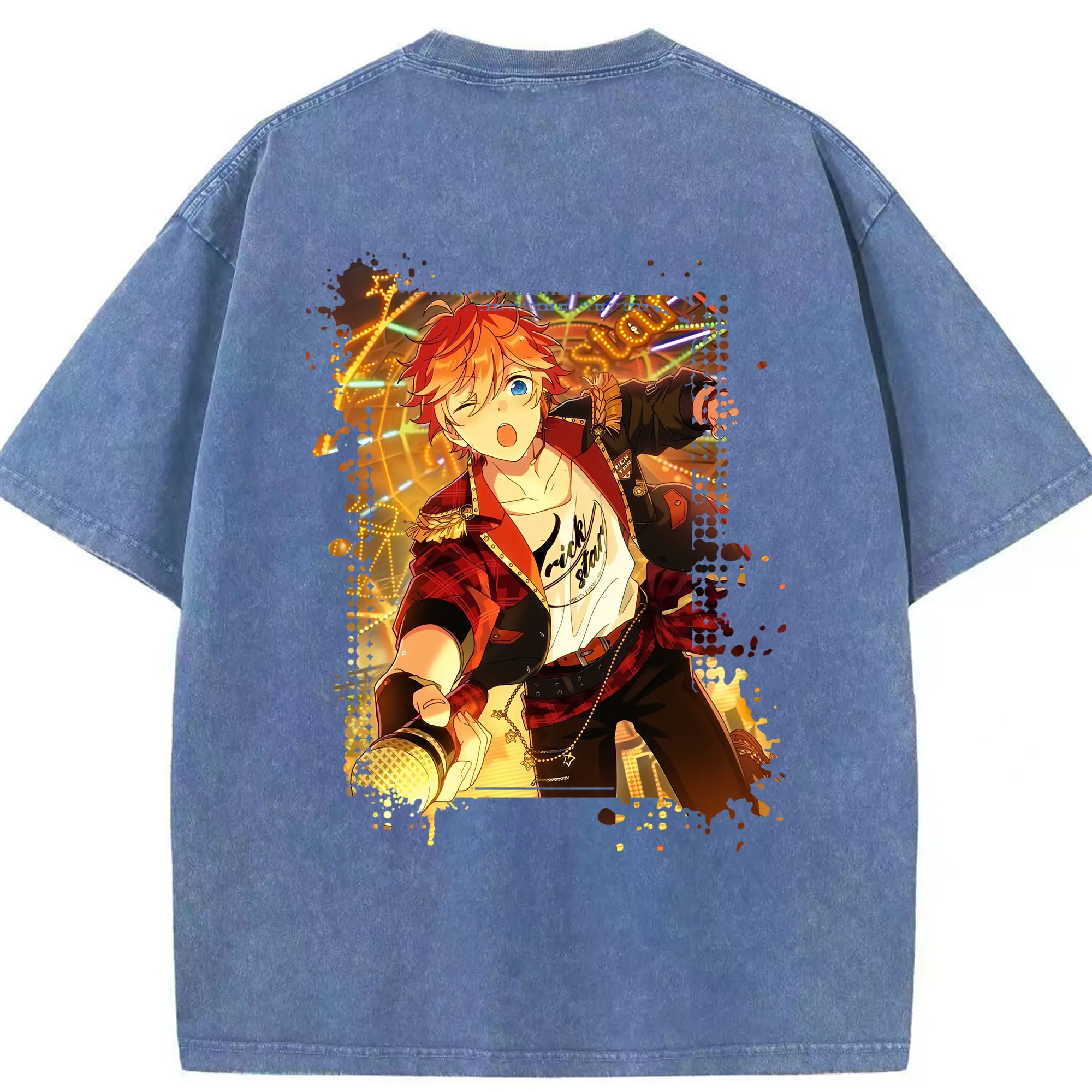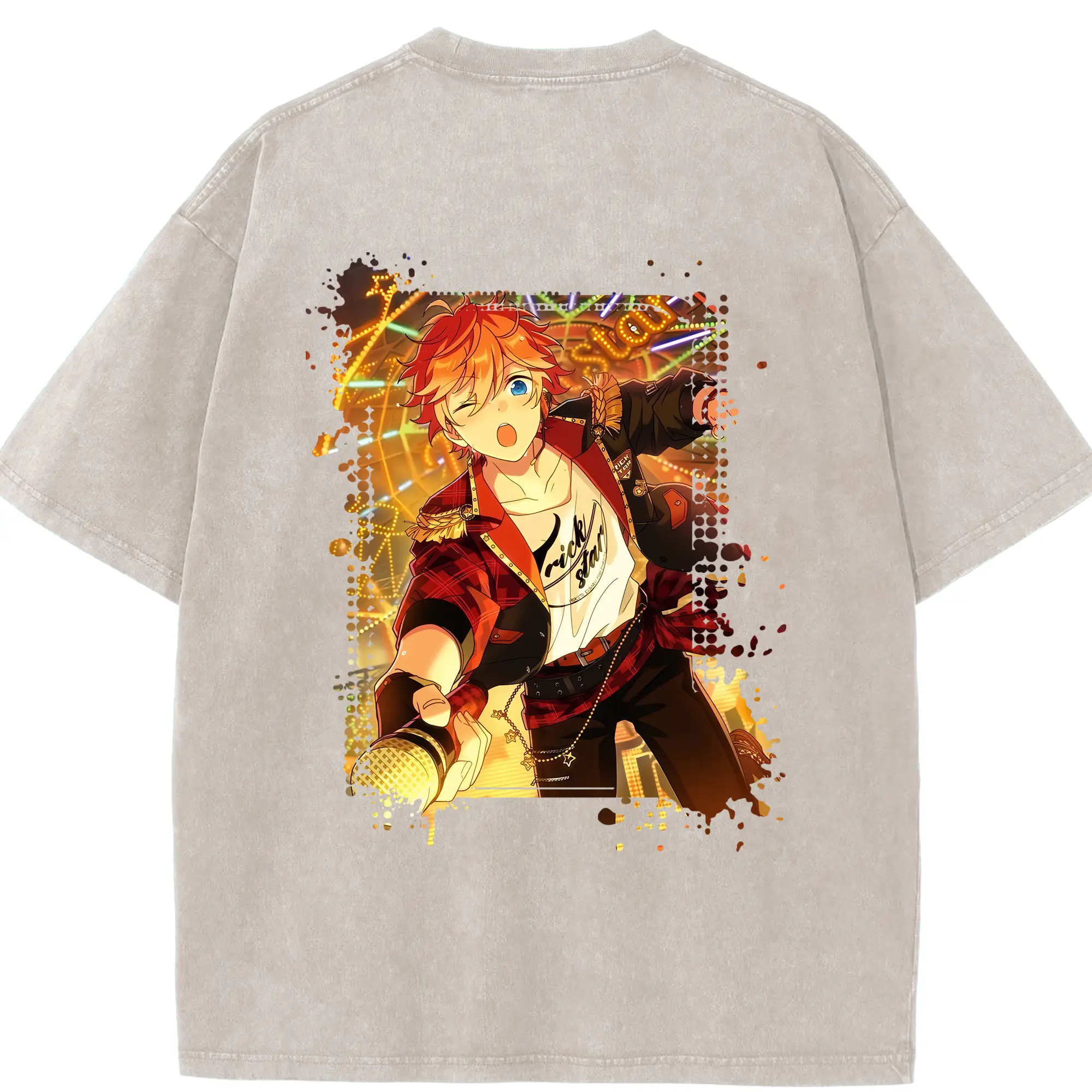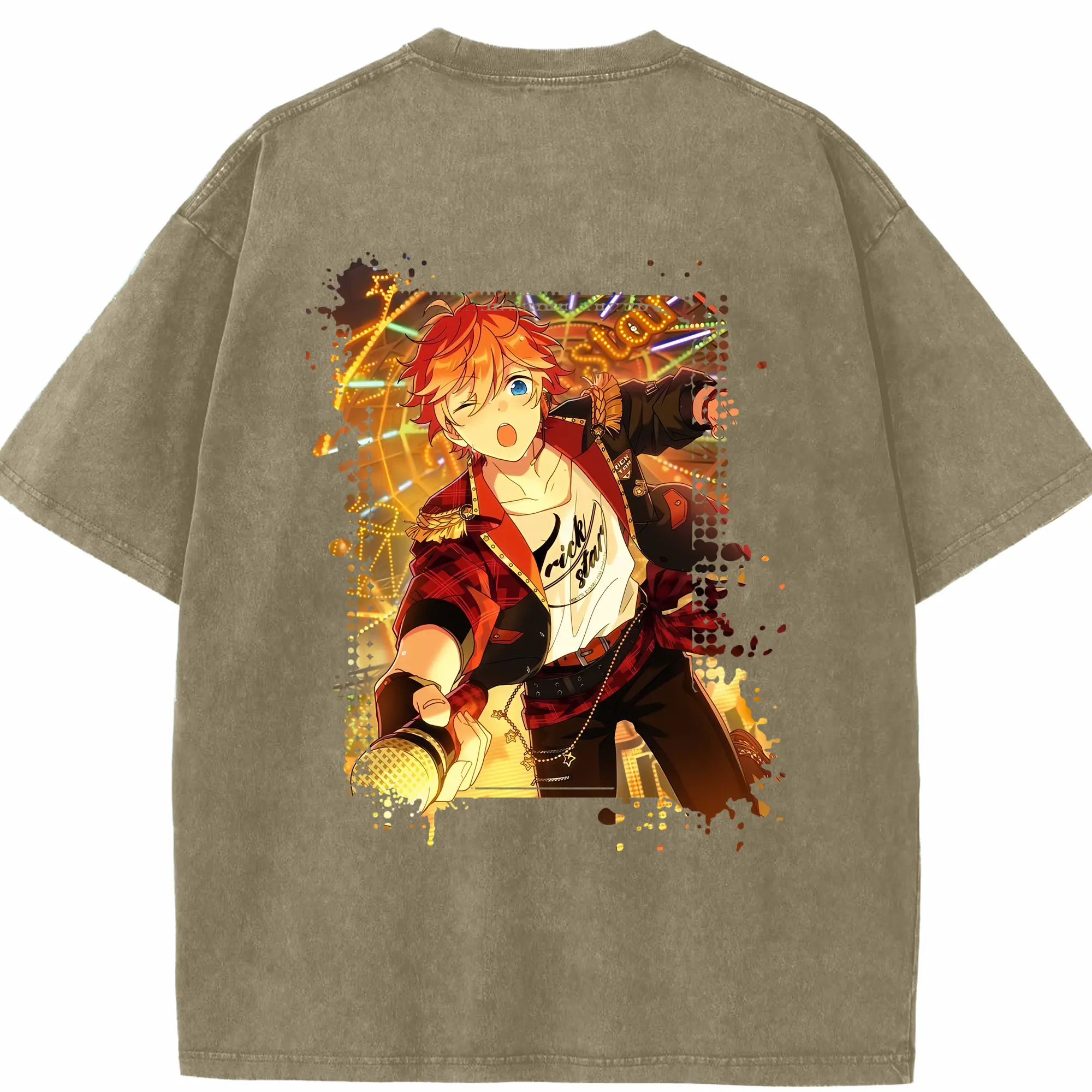 あんさん ぶる グッズ Trickstar 明星スバル - 綿100% ヴィンテージ風 半袖Tシャツ ・ フロントプリント ・ 柔らか肌触り ・ 通気性 快適 ・ スポーツ カジュアル 外出用