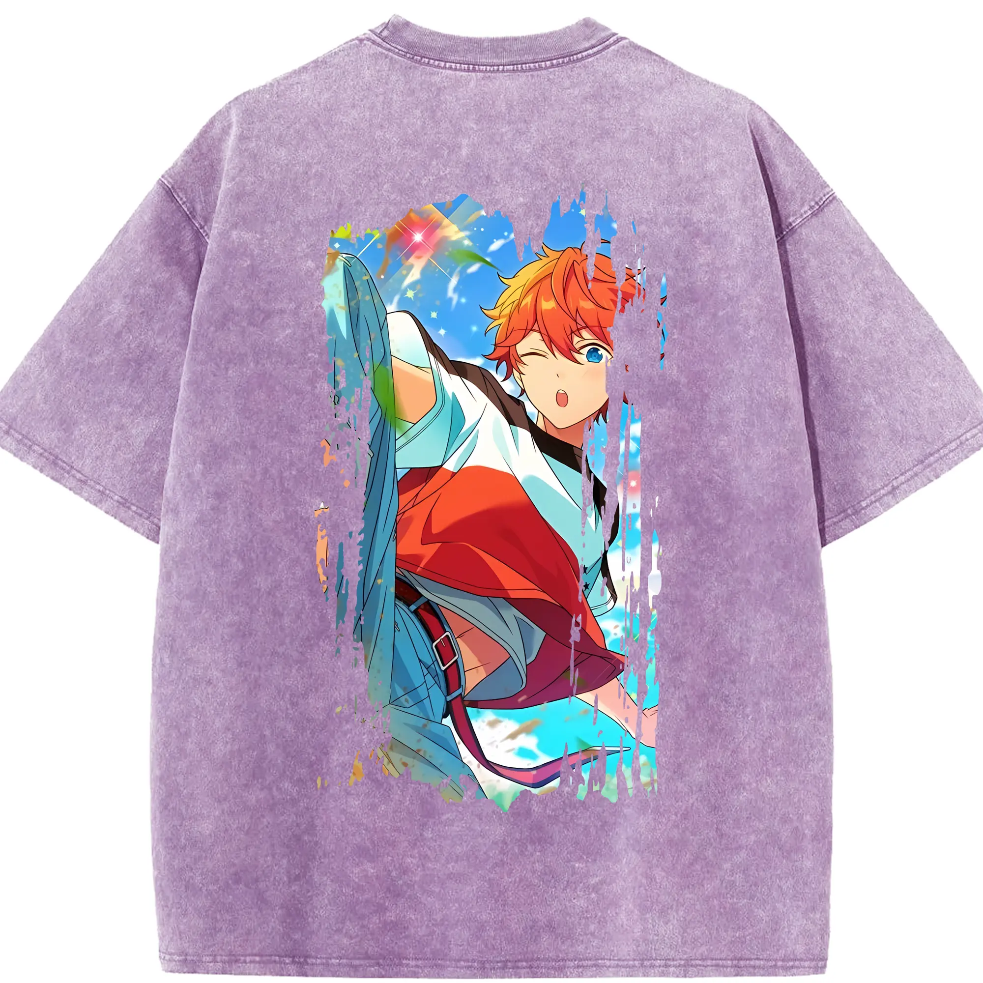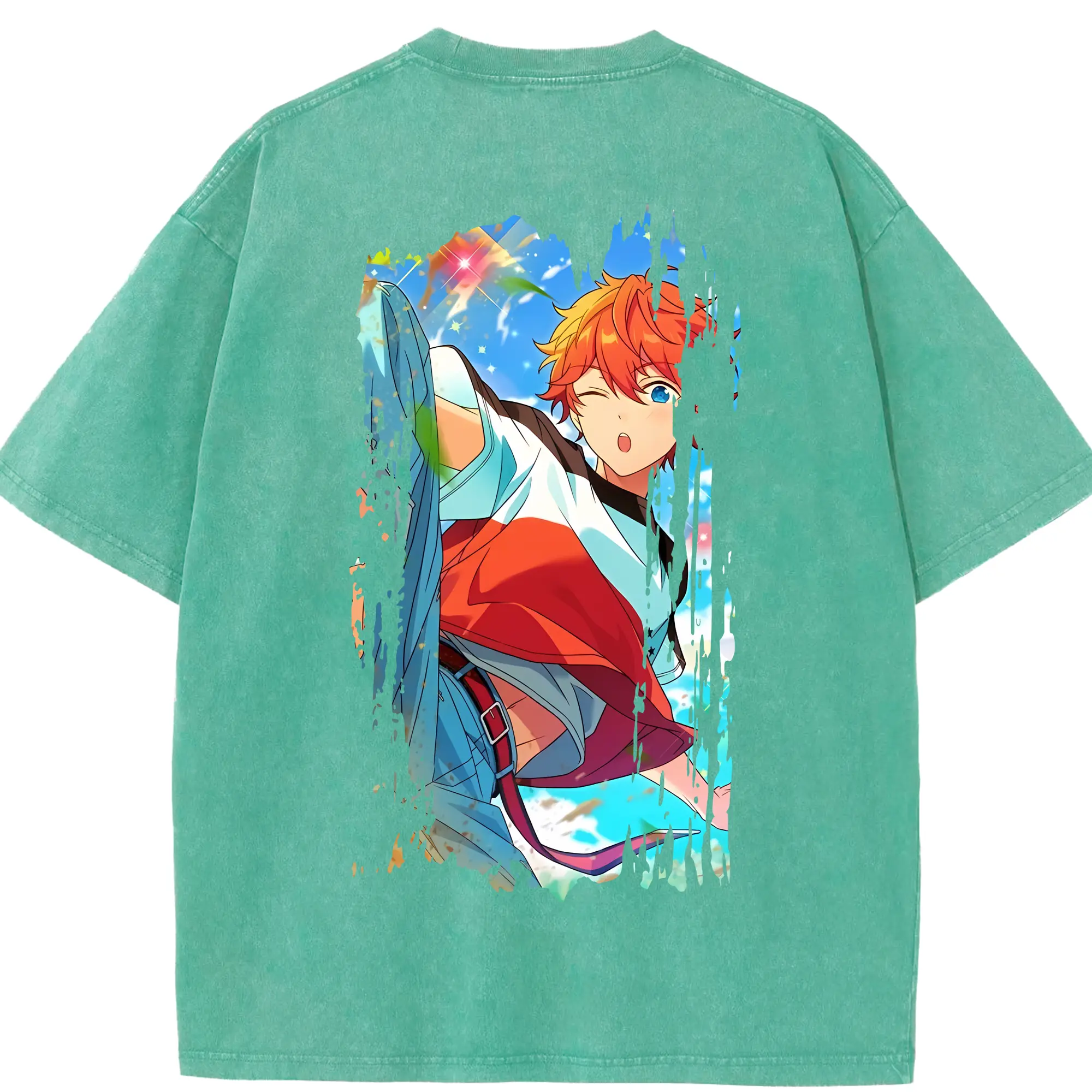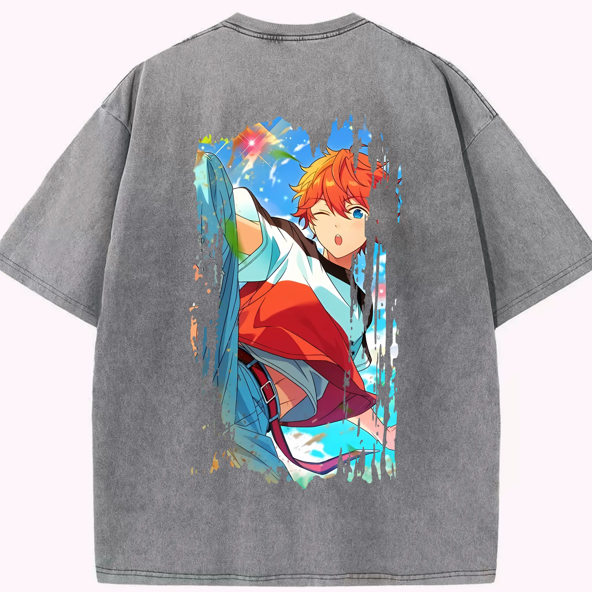 あんさん ぶる グッズ Trickstar 明星スバル - 綿100% ヴィンテージ風 半袖Tシャツ ・ フロントプリント ・ 柔らか肌触り ・ 通気性 快適 ・ スポーツ カジュアル 外出用