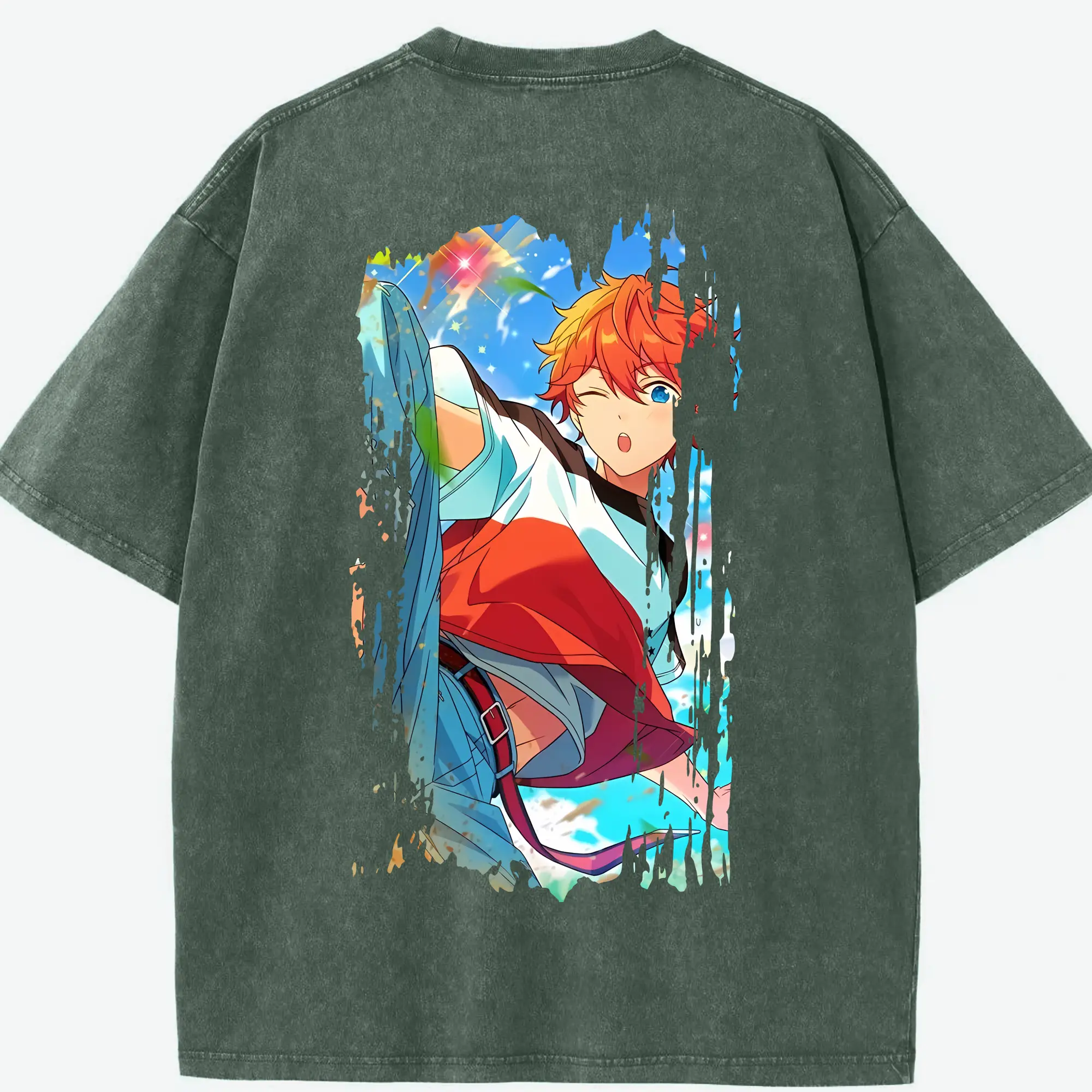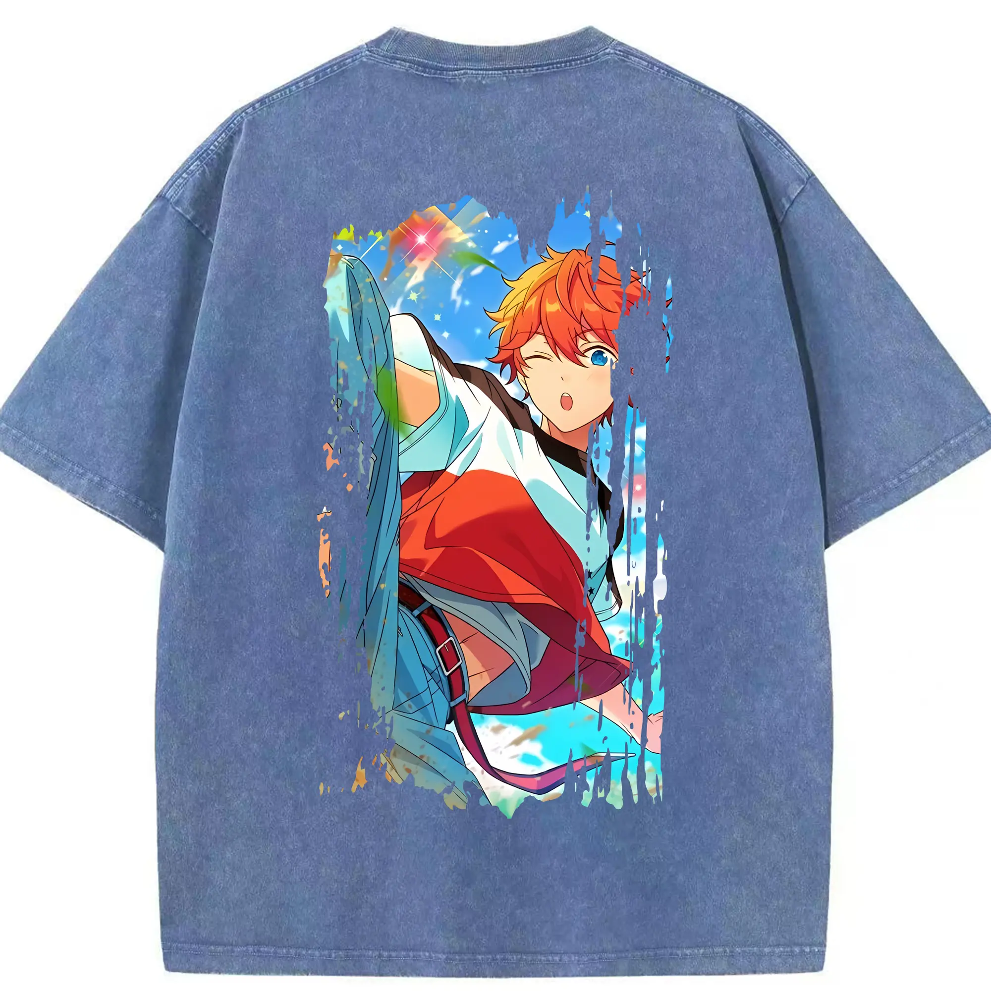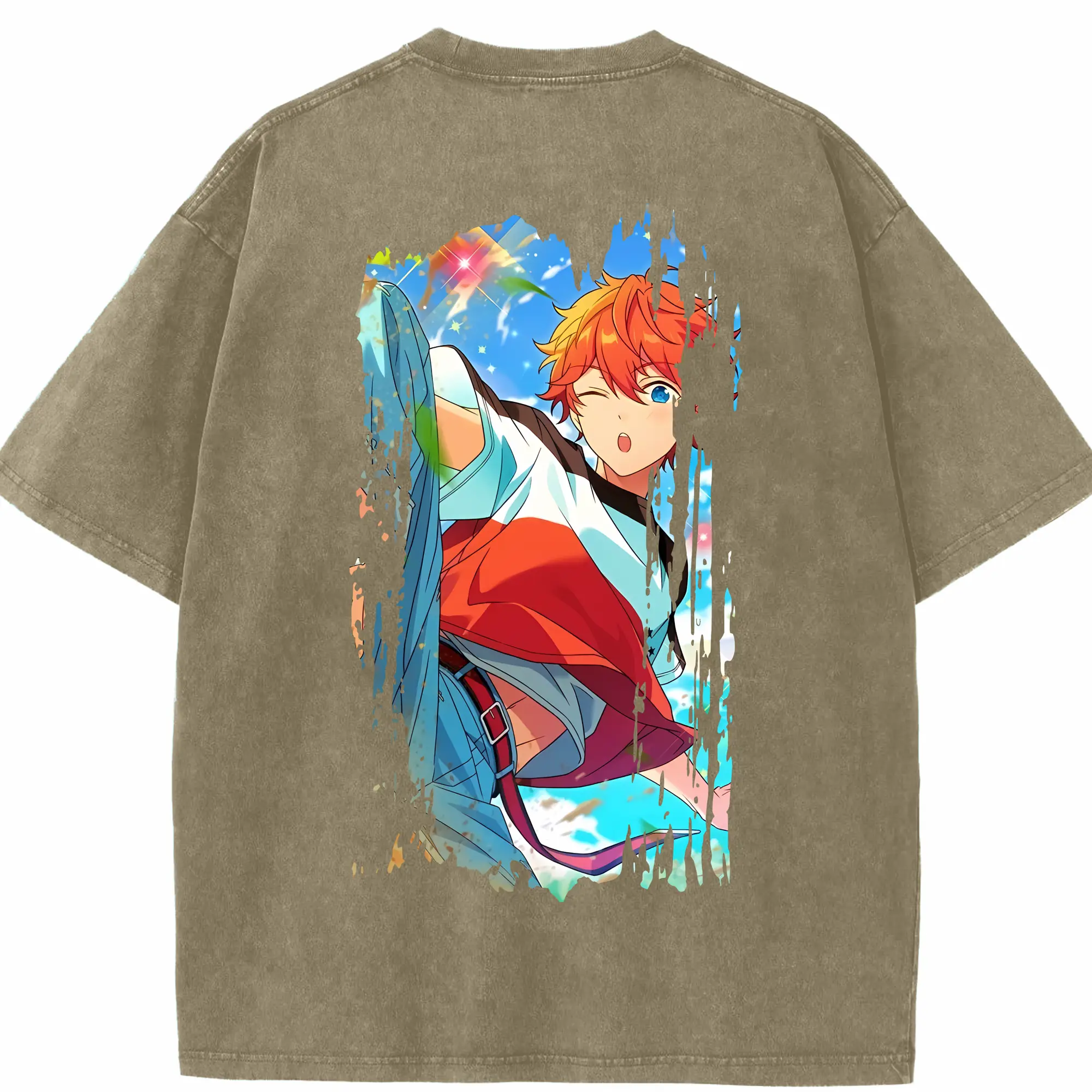 あんさん ぶる グッズ Trickstar 明星スバル - 綿100% ヴィンテージ風 半袖Tシャツ ・ フロントプリント ・ 柔らか肌触り ・ 通気性 快適 ・ スポーツ カジュアル 外出用