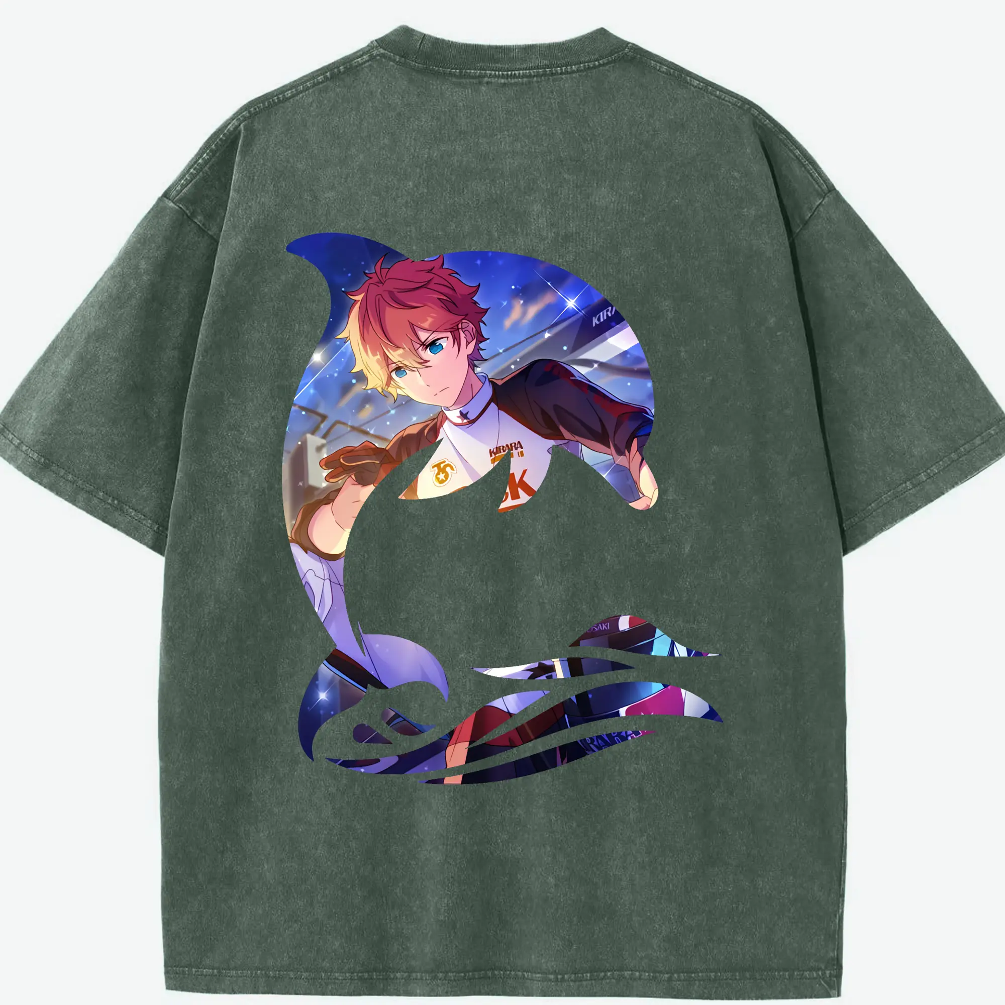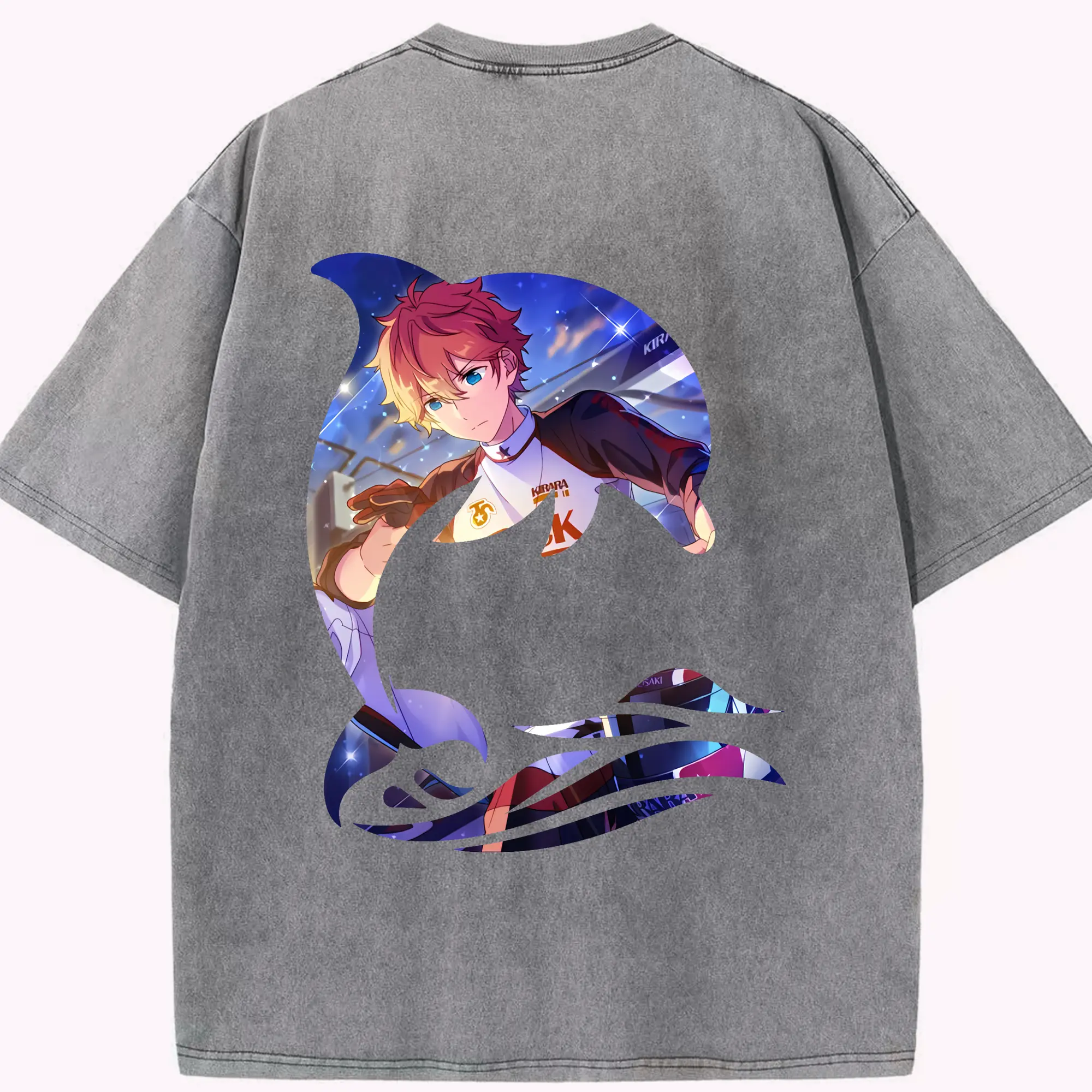 あんさん ぶる グッズ Trickstar 明星スバル - 綿100% ヴィンテージ風 半袖Tシャツ ・ フロントプリント ・ 柔らか肌触り ・ 通気性 快適 ・ スポーツ カジュアル 外出用