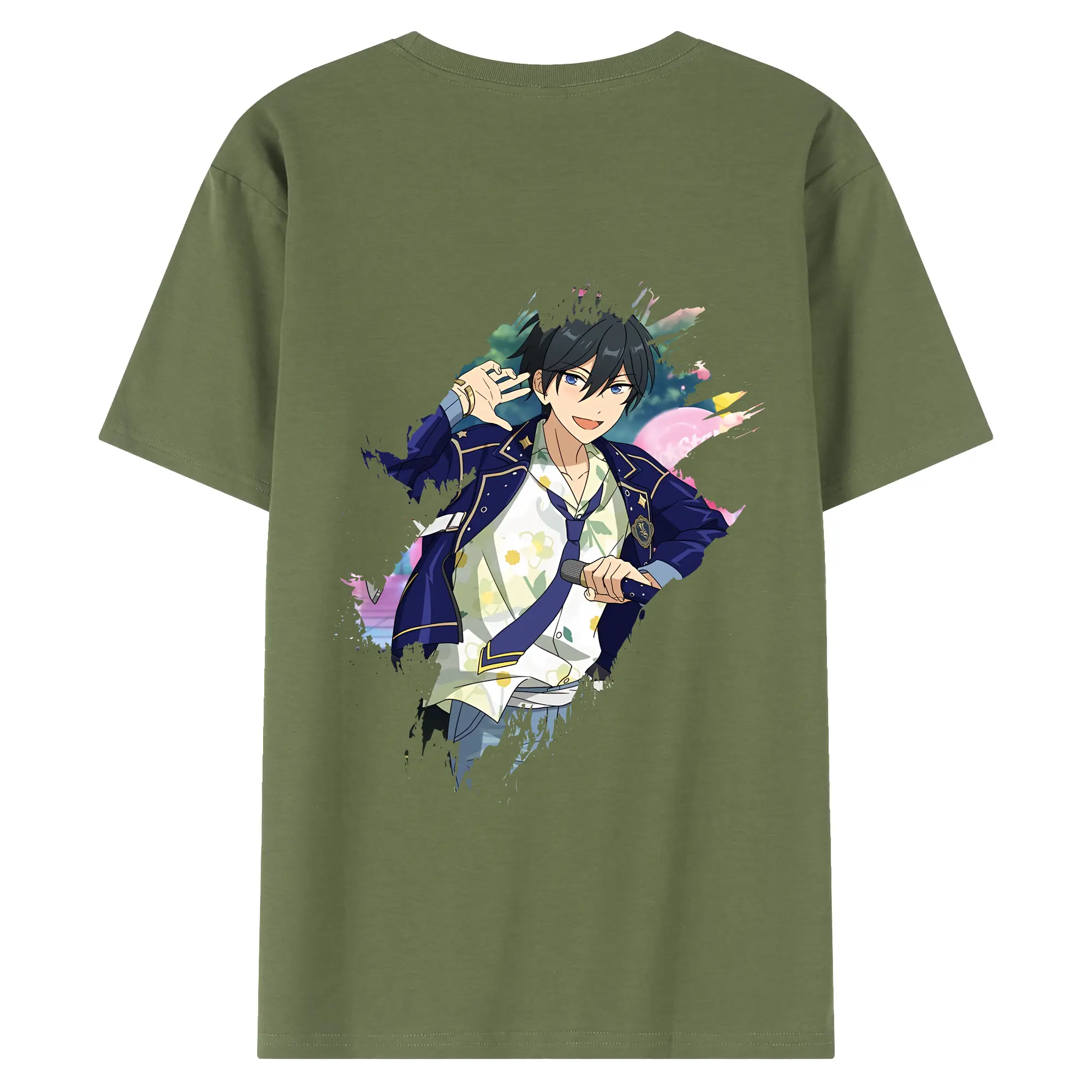 あんさん ぶる グッズ Trickstar 氷鷹北斗 - 綿100% ヴィンテージ風 半袖Tシャツ ・ 背面プリント ・ 柔らか肌触り ・ 通気性 快適 ・ スポーツ カジュアル 外出用
