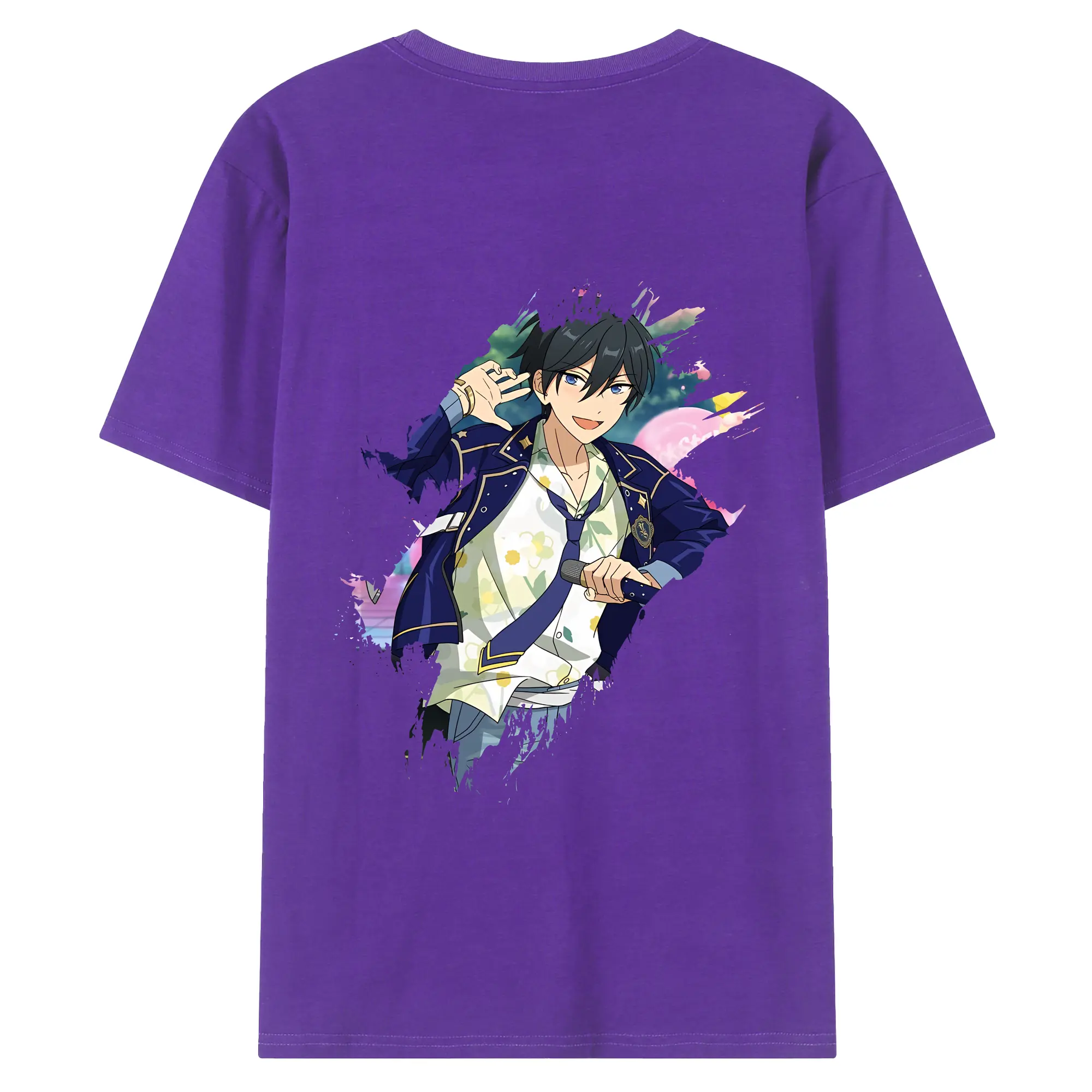 アイカツ グッズ 紫吹 蘭 - 綿100% 半袖Tシャツ ・ バックプリント ・ 快適 通気性 ・ 日常使い 散歩 スポーツ用