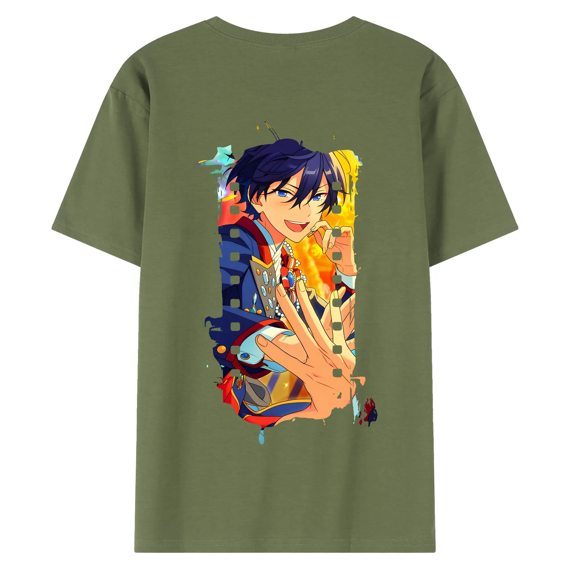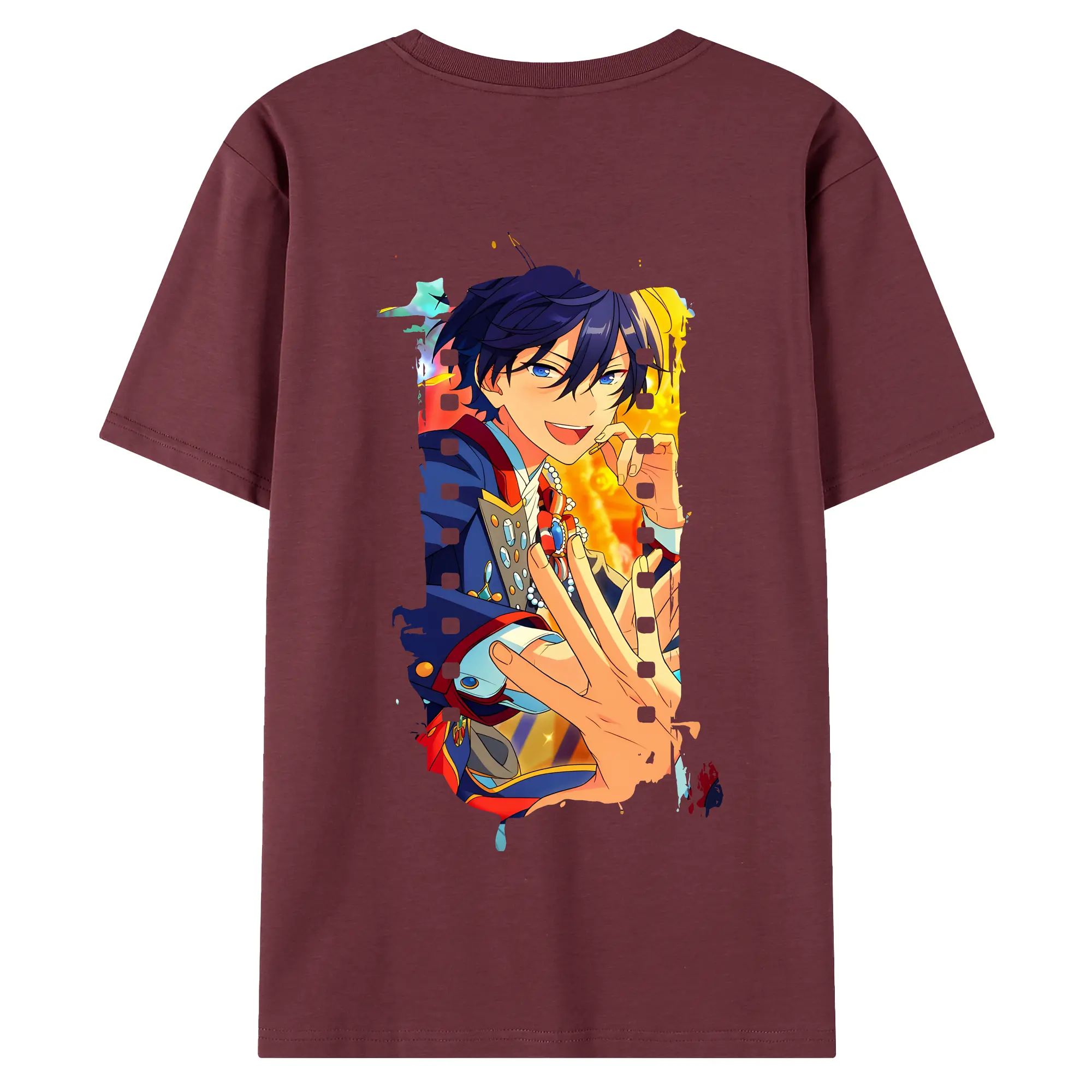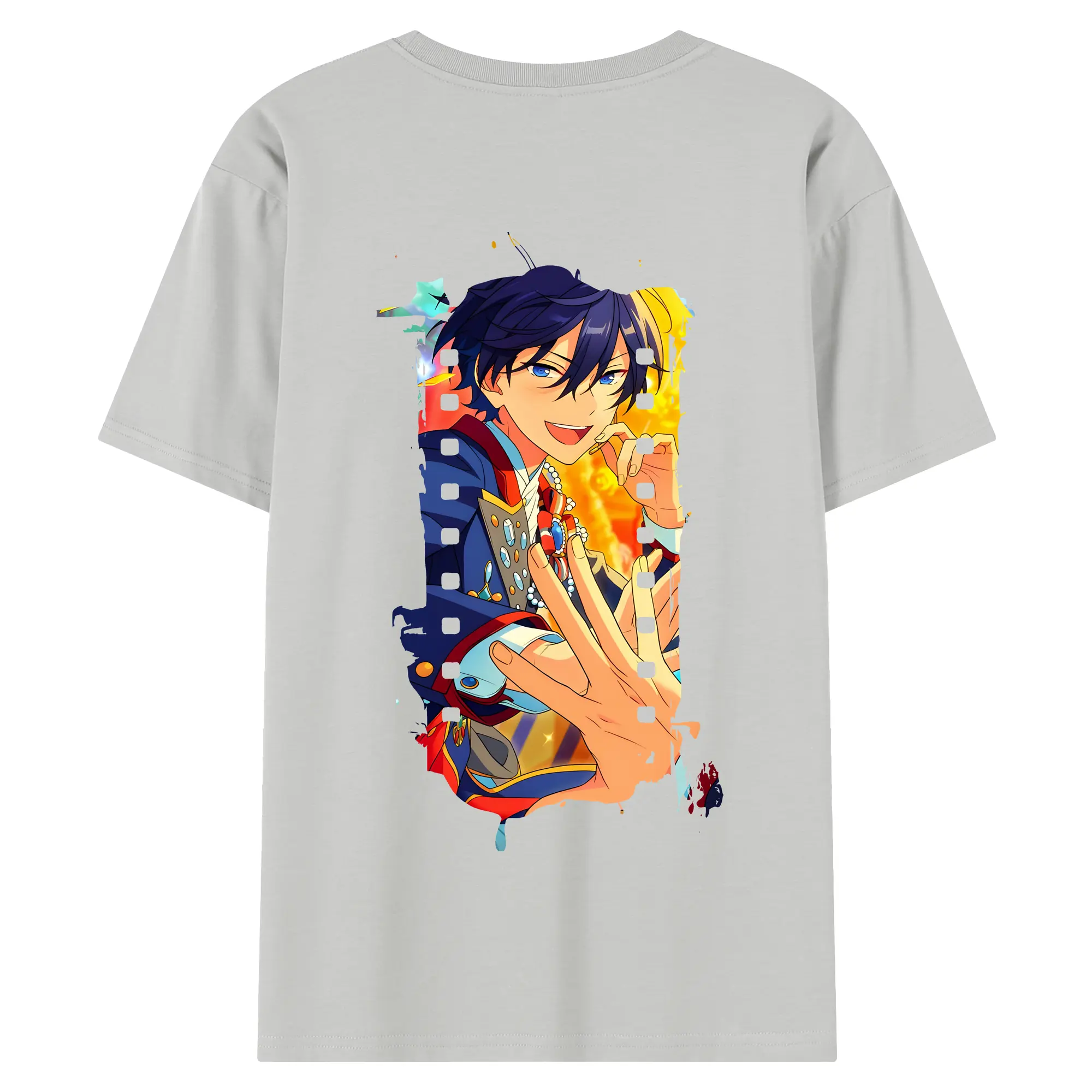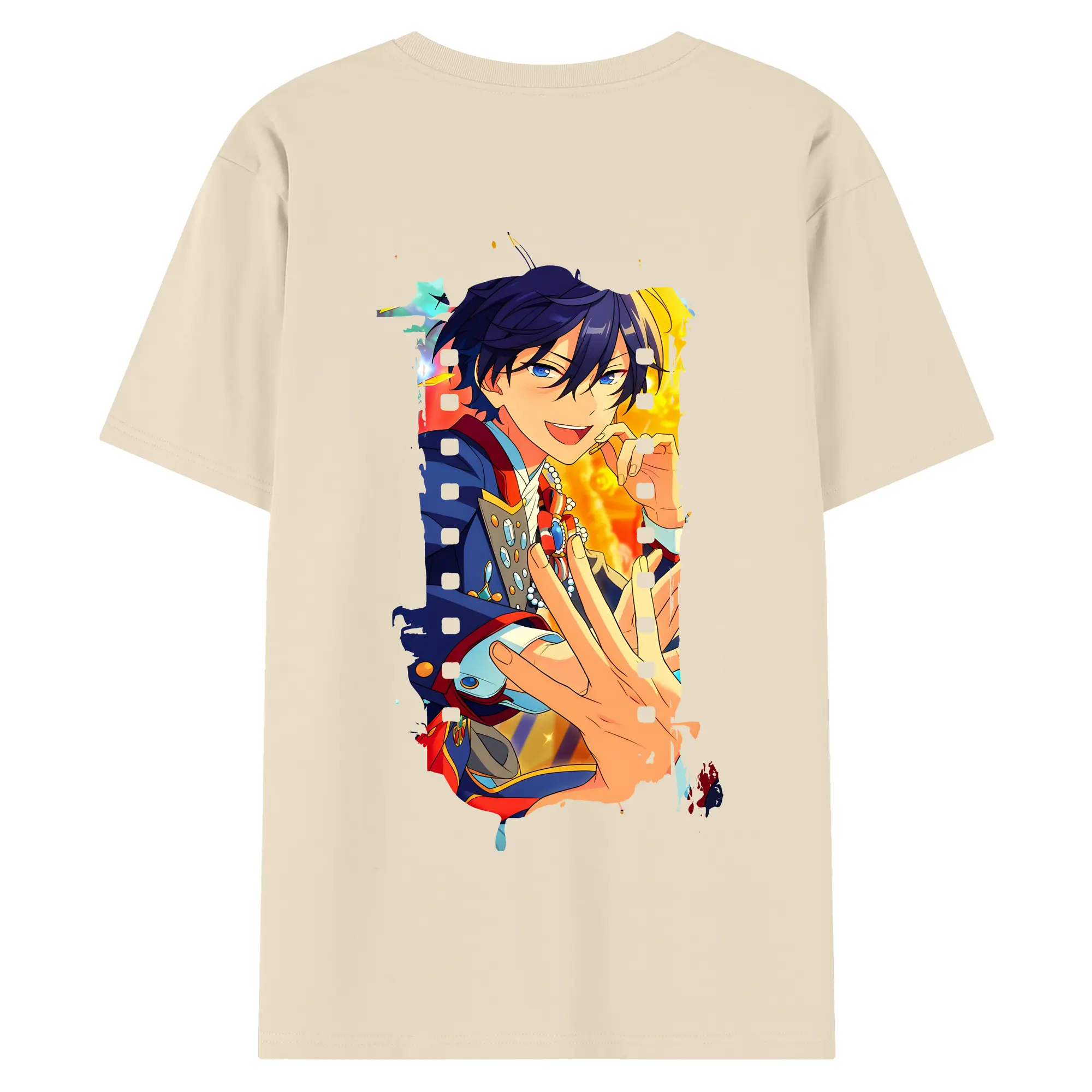あんさん ぶる グッズ Trickstar 氷鷹北斗 - 綿100% ヴィンテージ風 半袖Tシャツ ・ 背面プリント ・ 柔らか肌触り ・ 通気性 快適 ・ スポーツ カジュアル 外出用