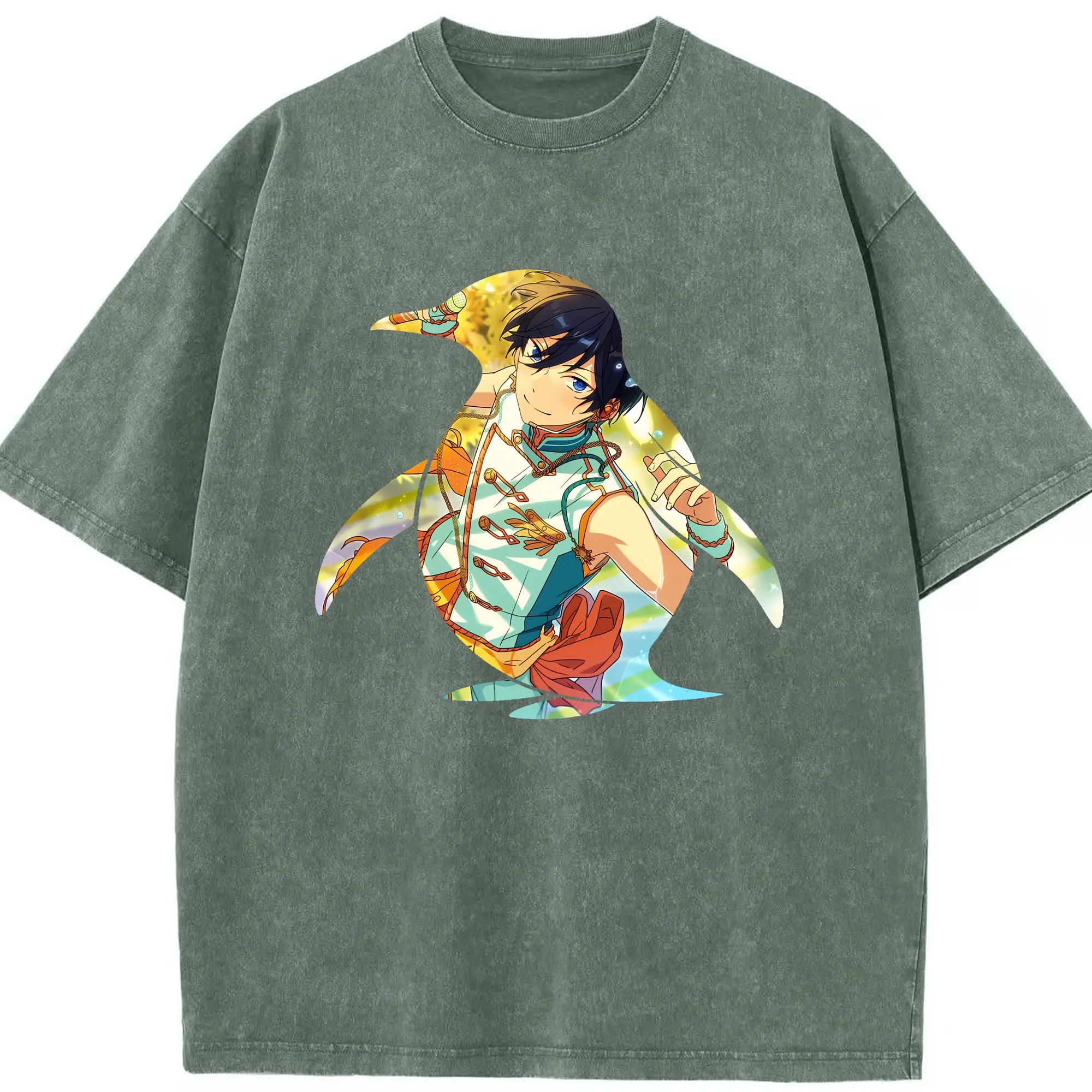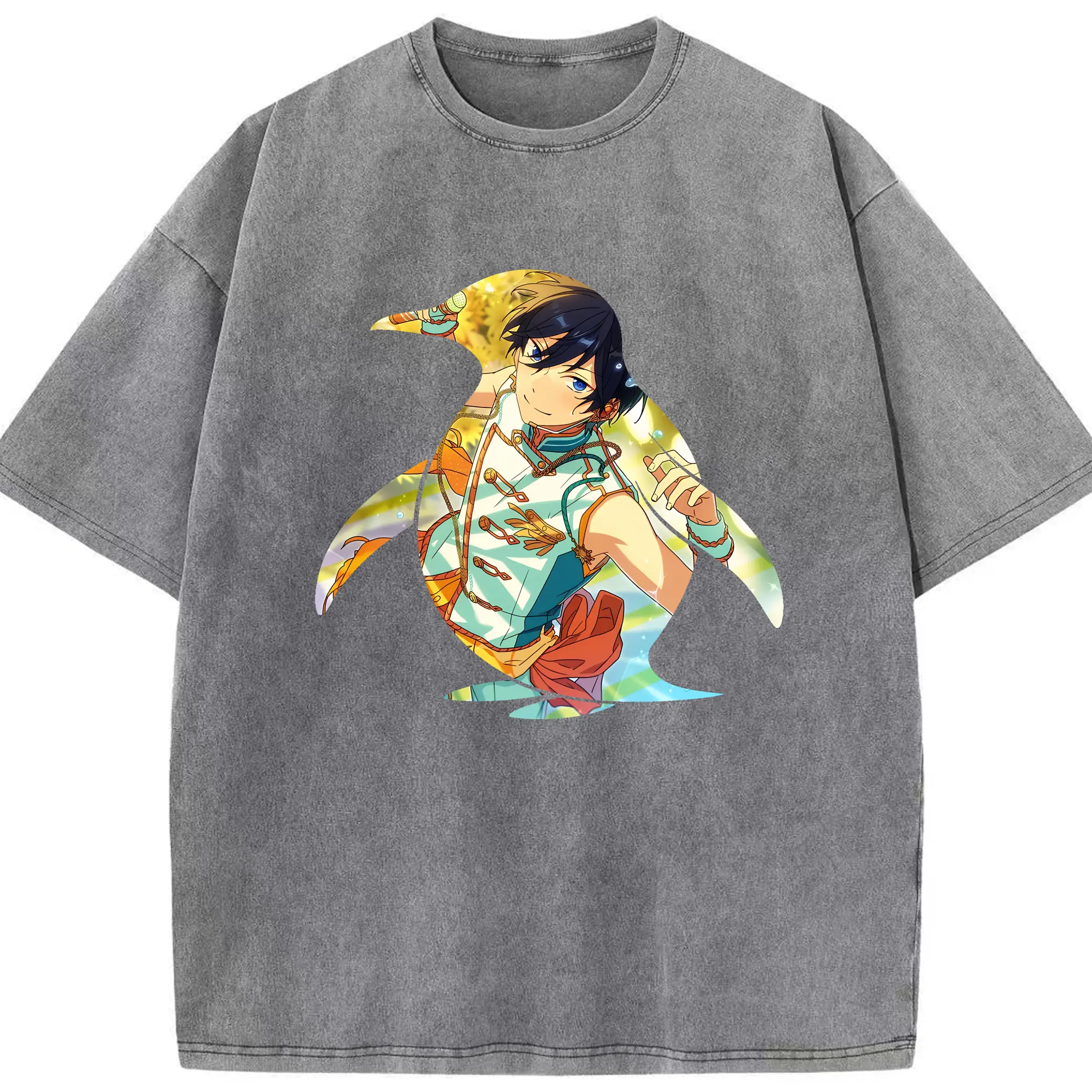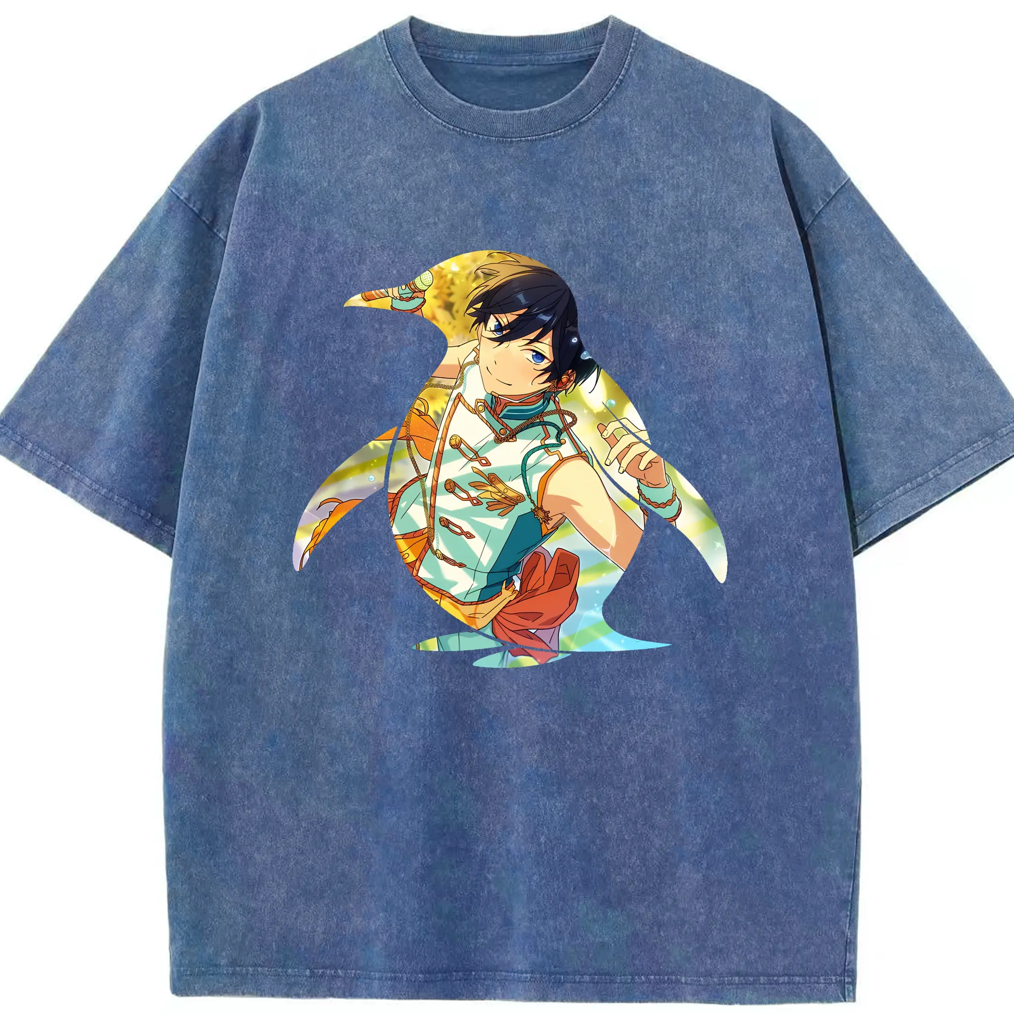 あんさん ぶる グッズ Trickstar 氷鷹北斗 - 綿100% ヴィンテージ風 半袖Tシャツ ・ 背面プリント ・ 柔らか肌触り ・ 通気性 快適 ・ スポーツ カジュアル 外出用