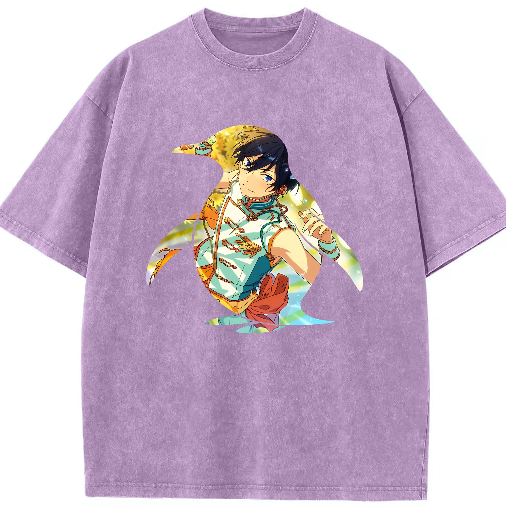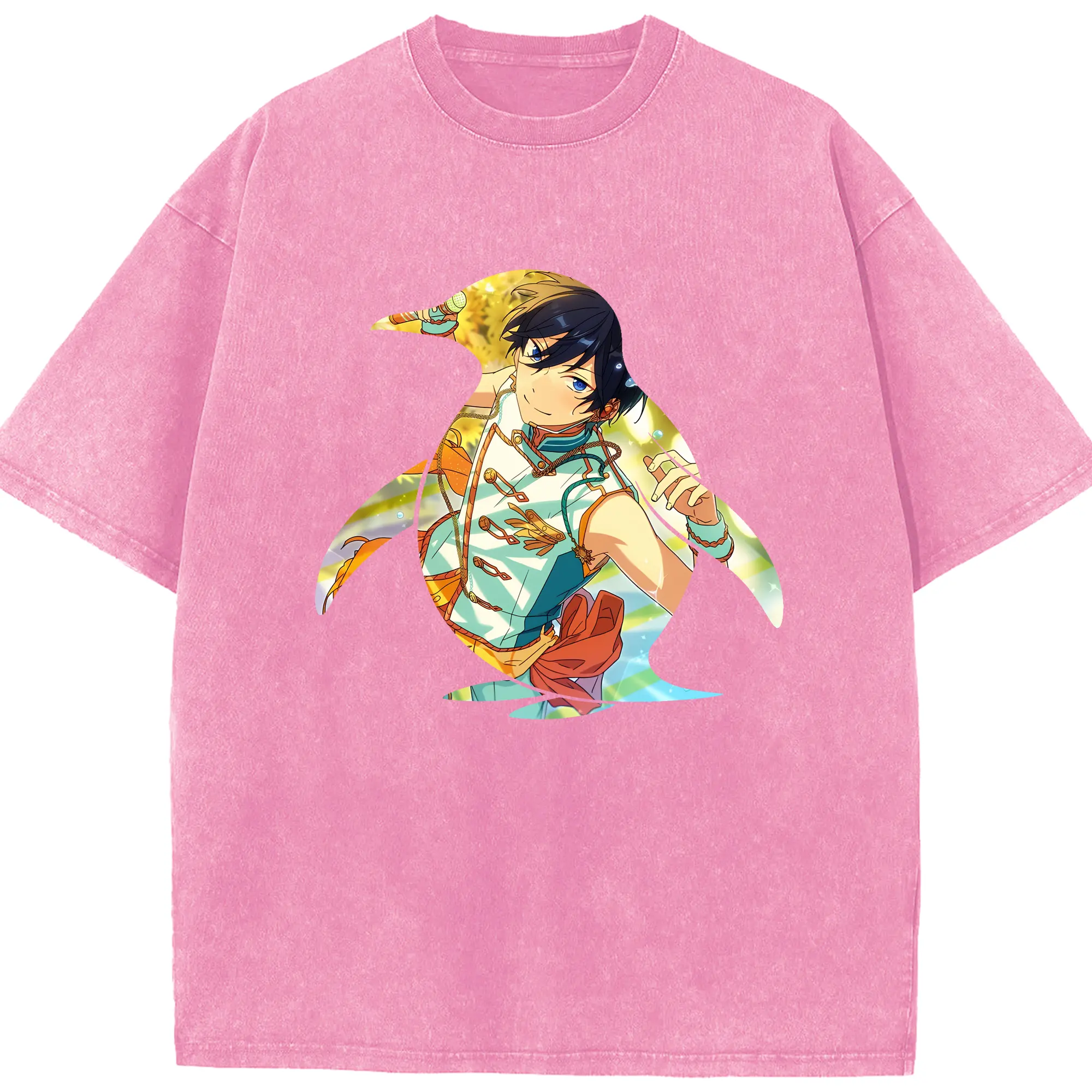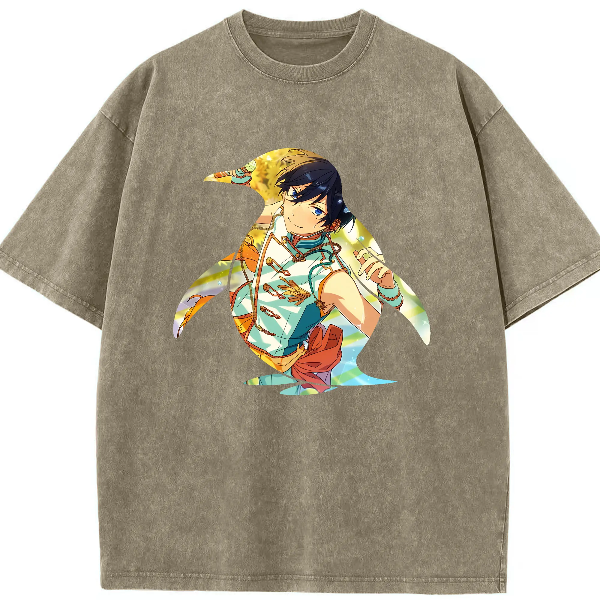あんさん ぶる グッズ Trickstar 氷鷹北斗 - 綿100% ヴィンテージ風 半袖Tシャツ ・ 背面プリント ・ 柔らか肌触り ・ 通気性 快適 ・ スポーツ カジュアル 外出用