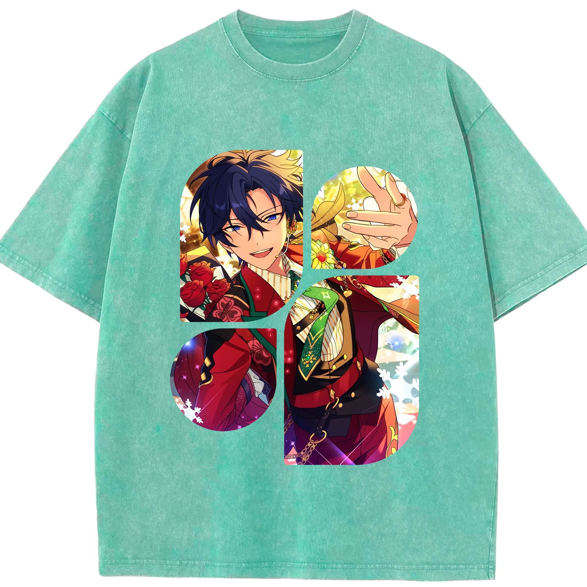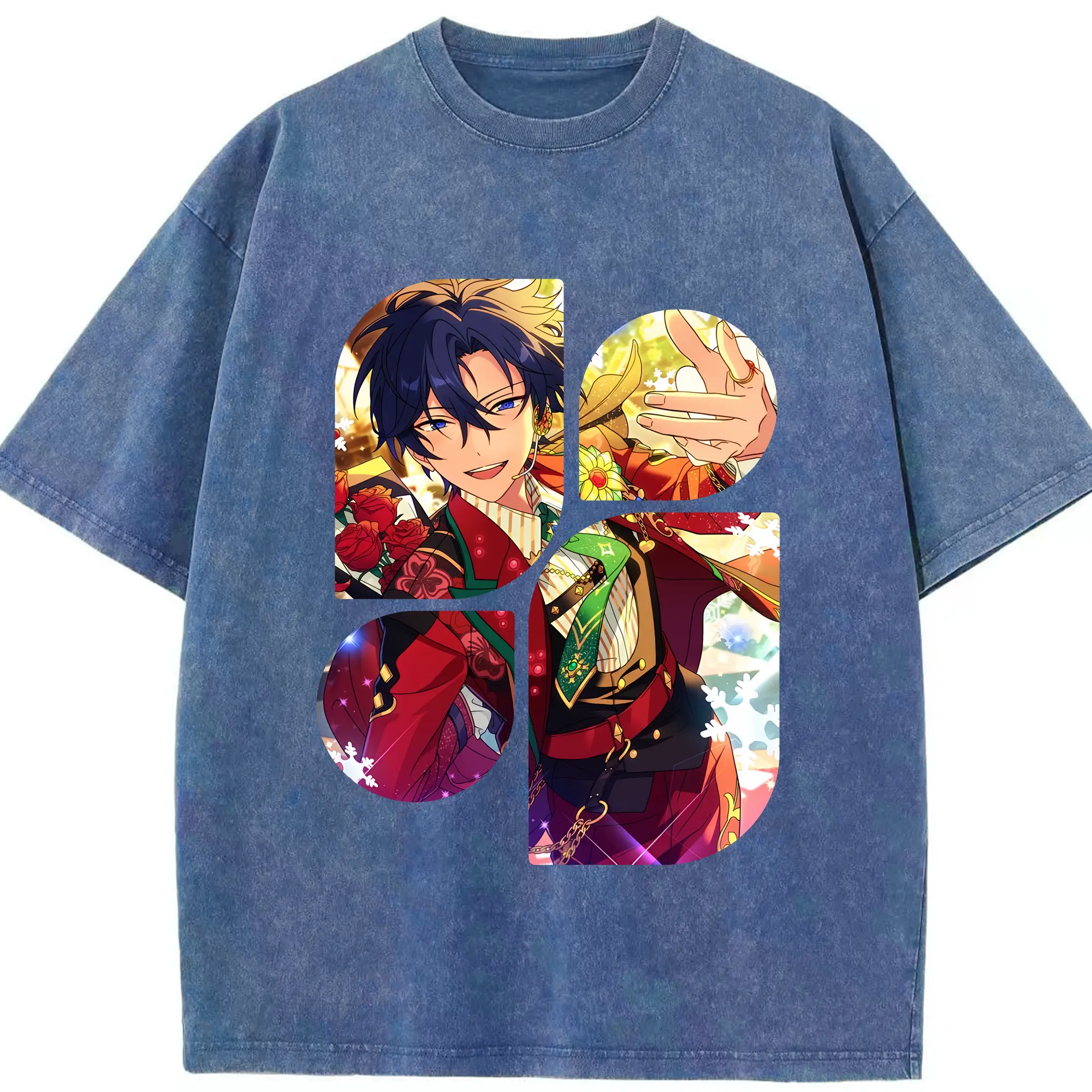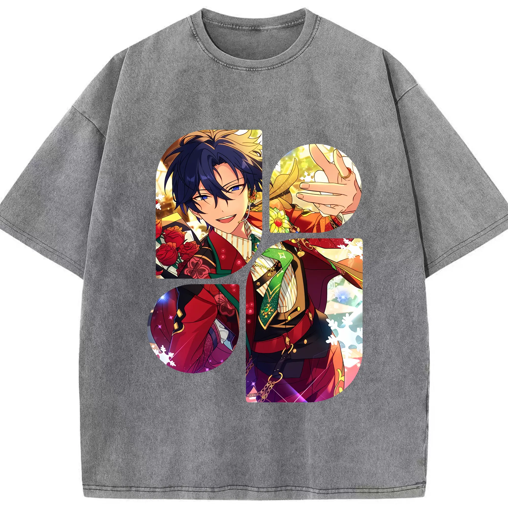 あんさん ぶる グッズ Trickstar 氷鷹北斗 - 綿100% ヴィンテージ風 半袖Tシャツ ・ 背面プリント ・ 柔らか肌触り ・ 通気性 快適 ・ スポーツ カジュアル 外出用