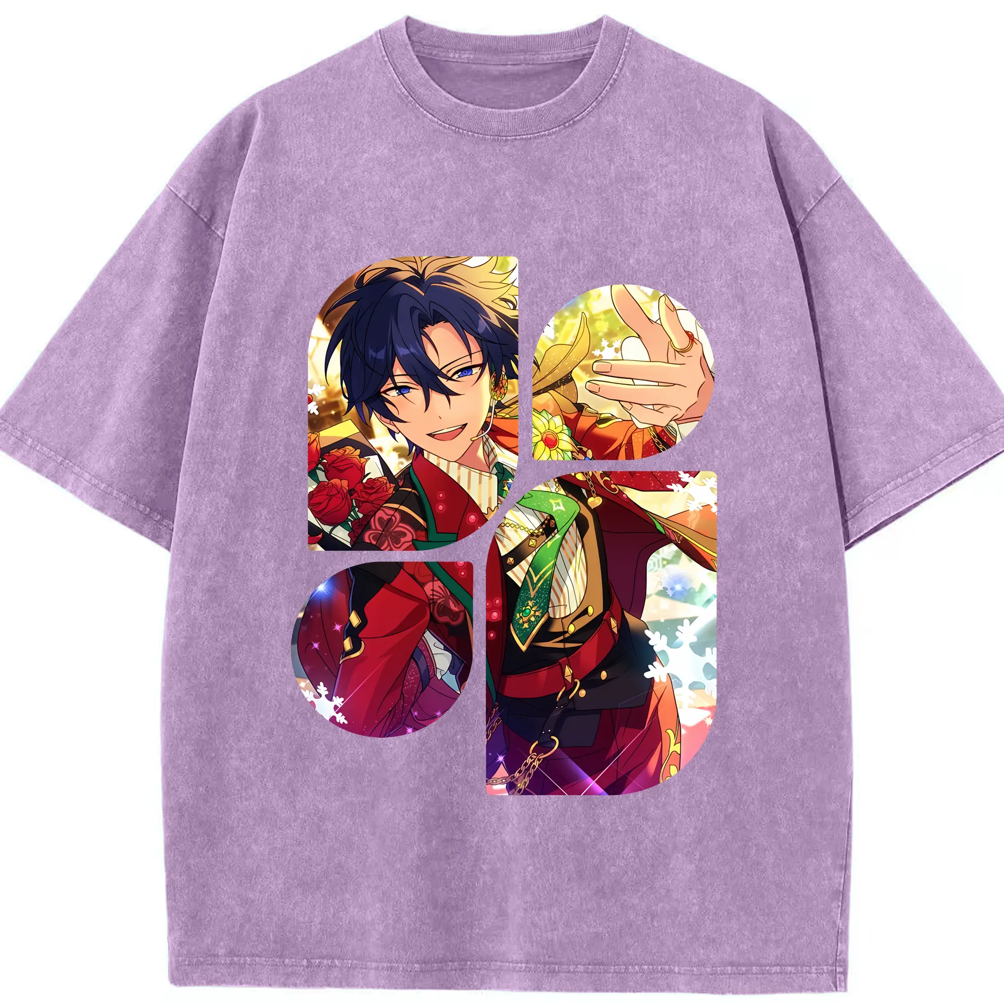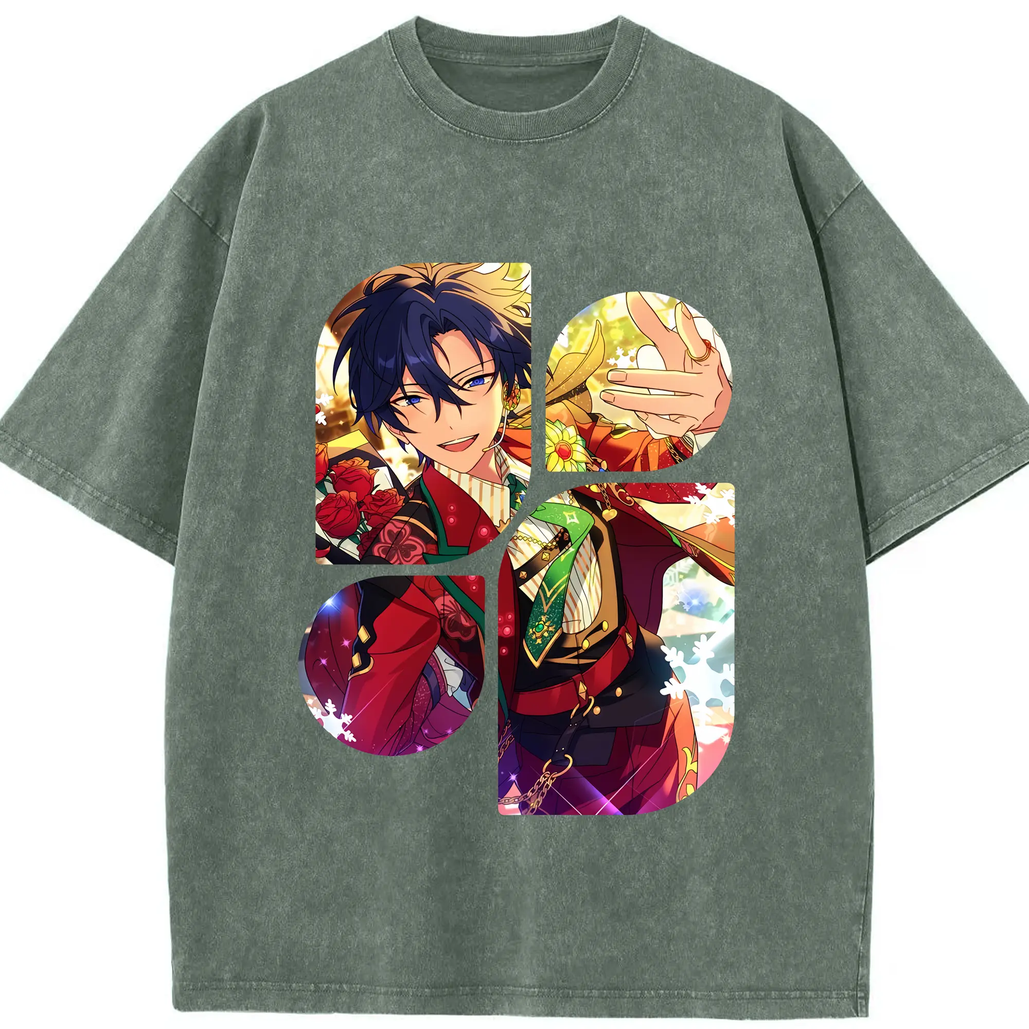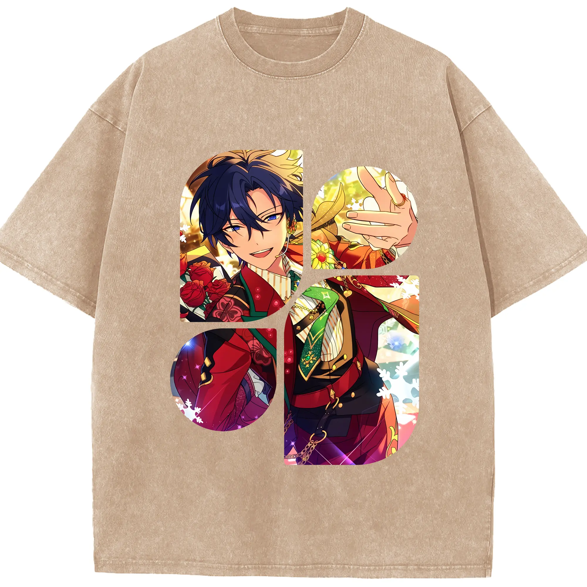 あんさん ぶる グッズ Trickstar 氷鷹北斗 - 綿100% ヴィンテージ風 半袖Tシャツ ・ 背面プリント ・ 柔らか肌触り ・ 通気性 快適 ・ スポーツ カジュアル 外出用